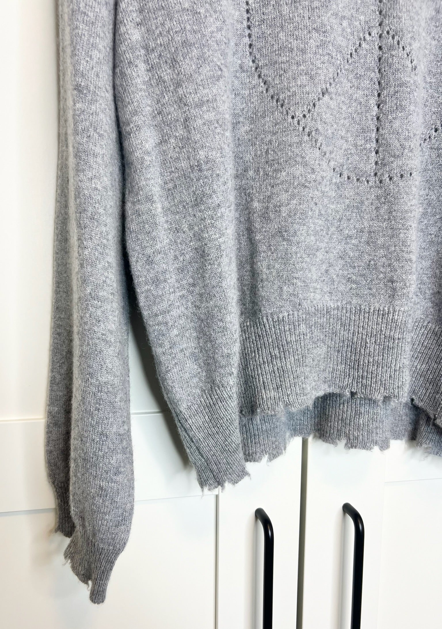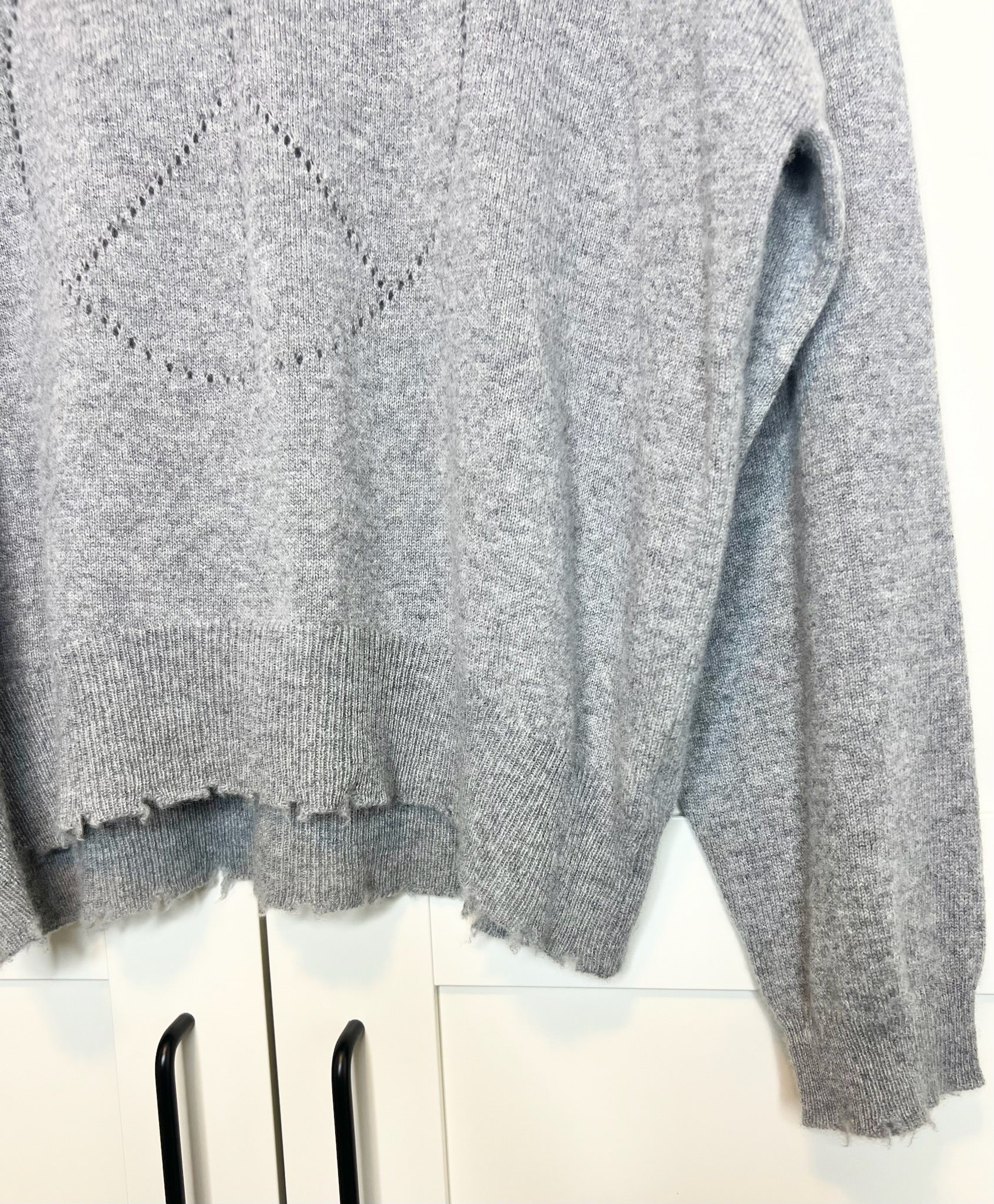 - Distressed ribbed knit hemline