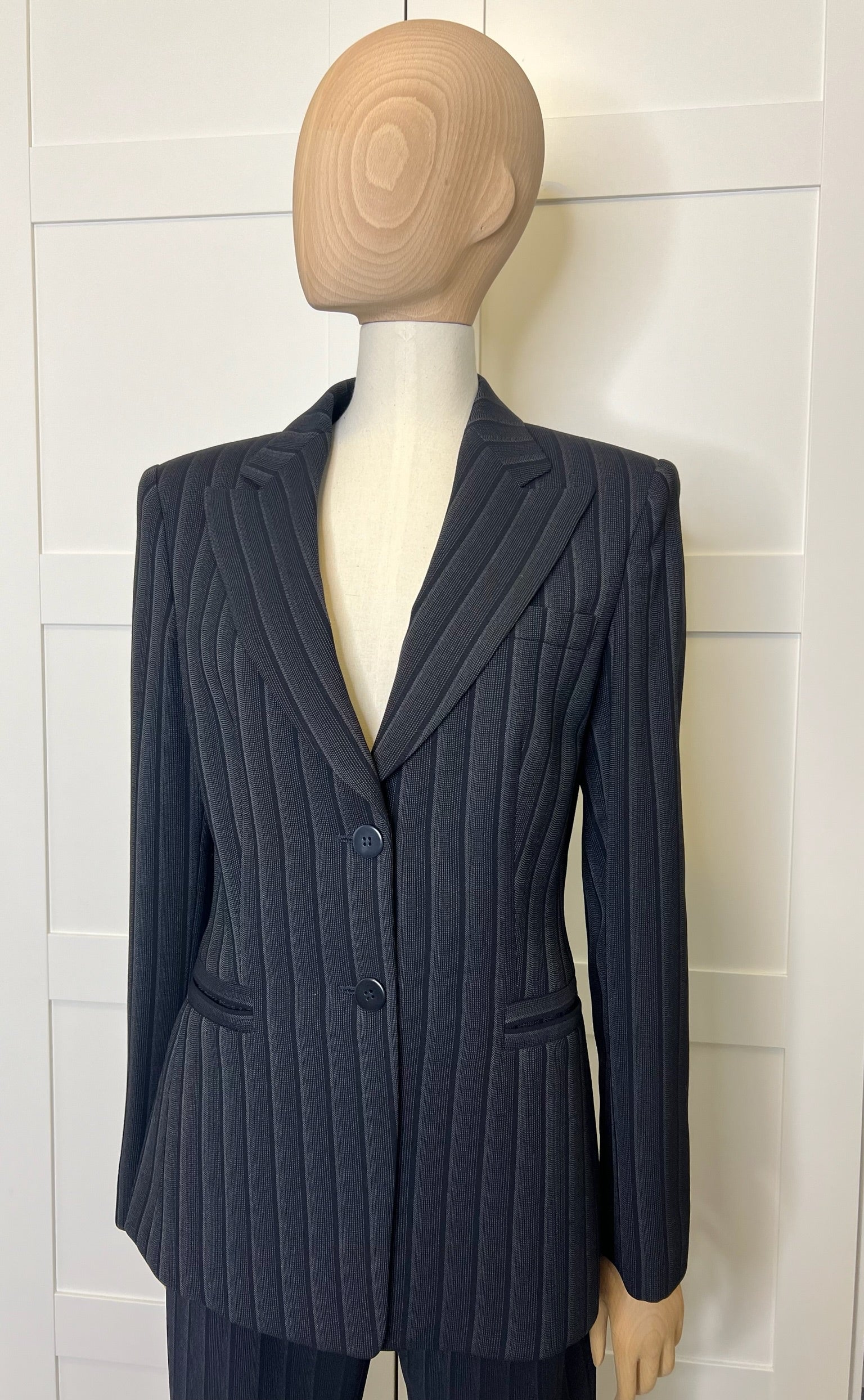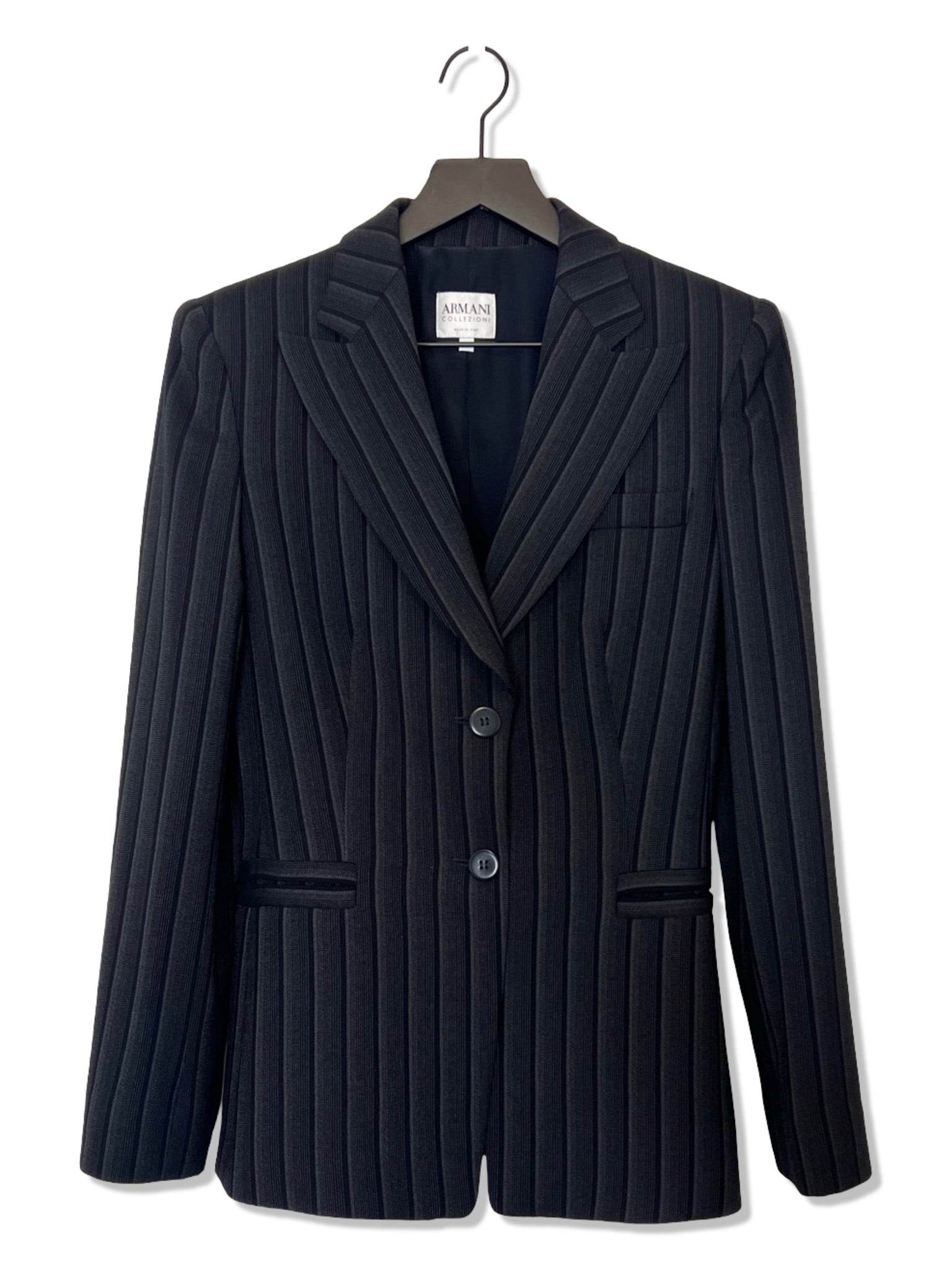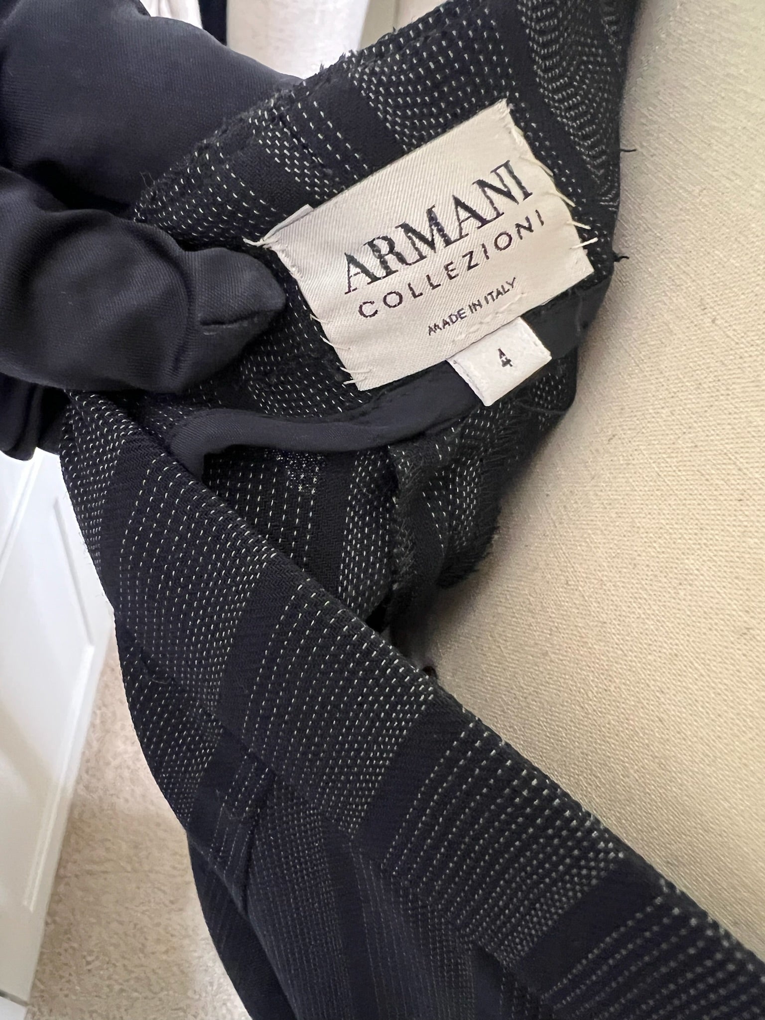 Armani Collezioni Black & Gray Striped Tailored 2-Piece Suit (Jacket and Pants), Size 4