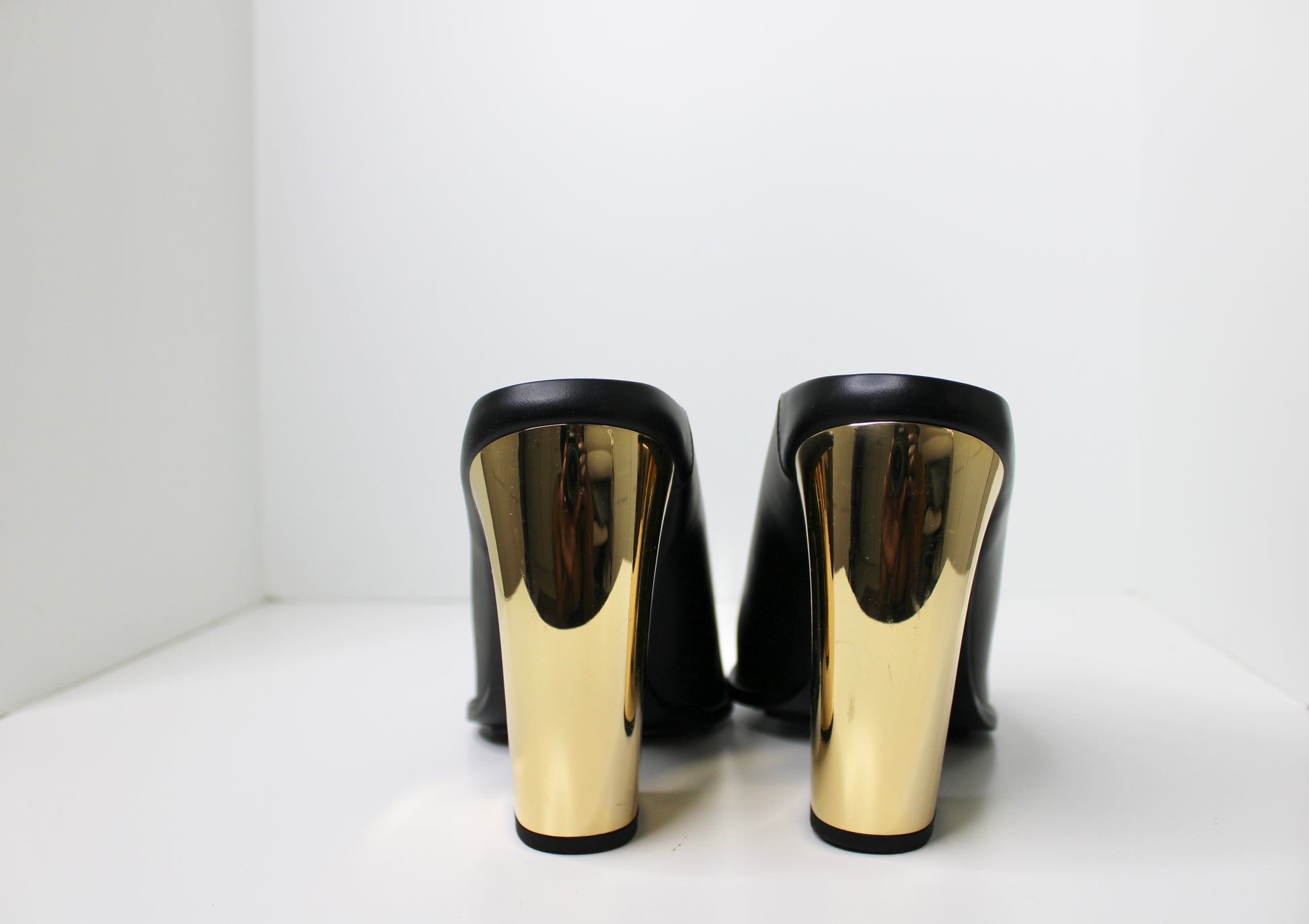 Bottega Veneta Black Tex Pointed-Toe Mules, Size 40