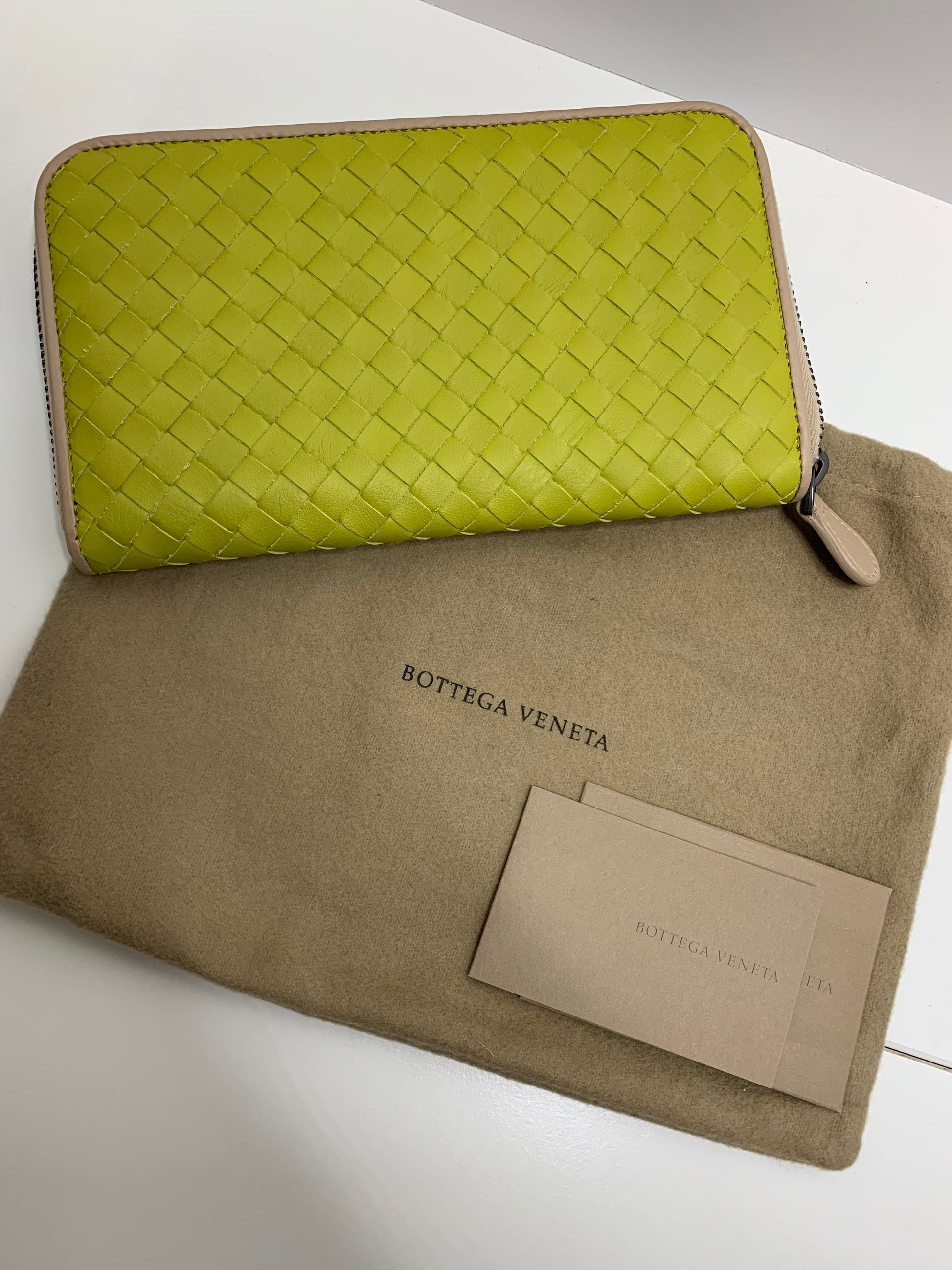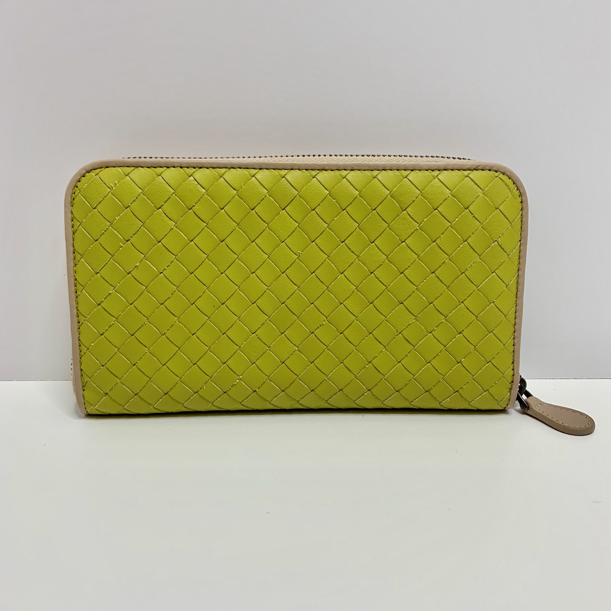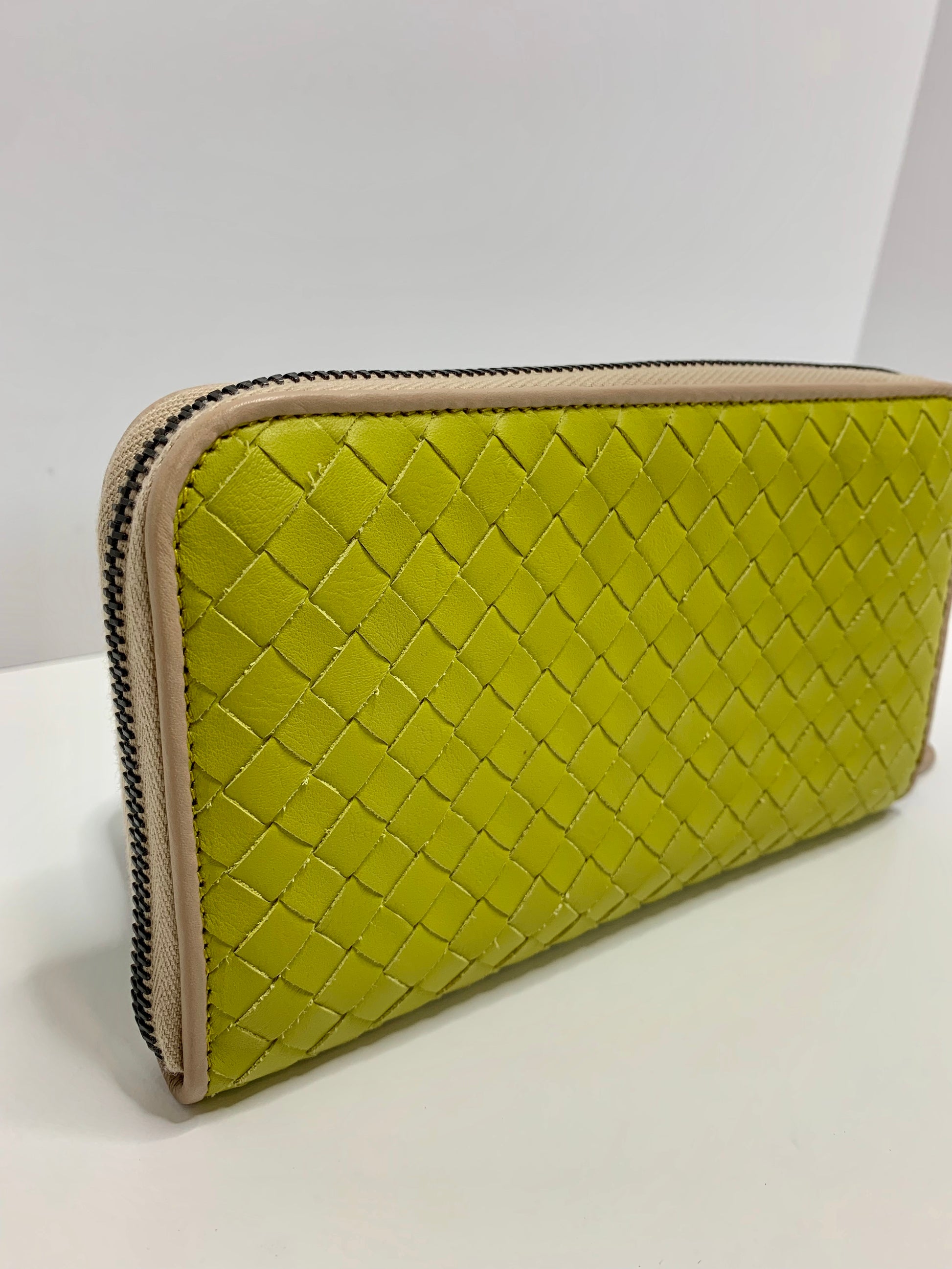 Bottega Veneta Lime Intercciato Zip Around Wallet
