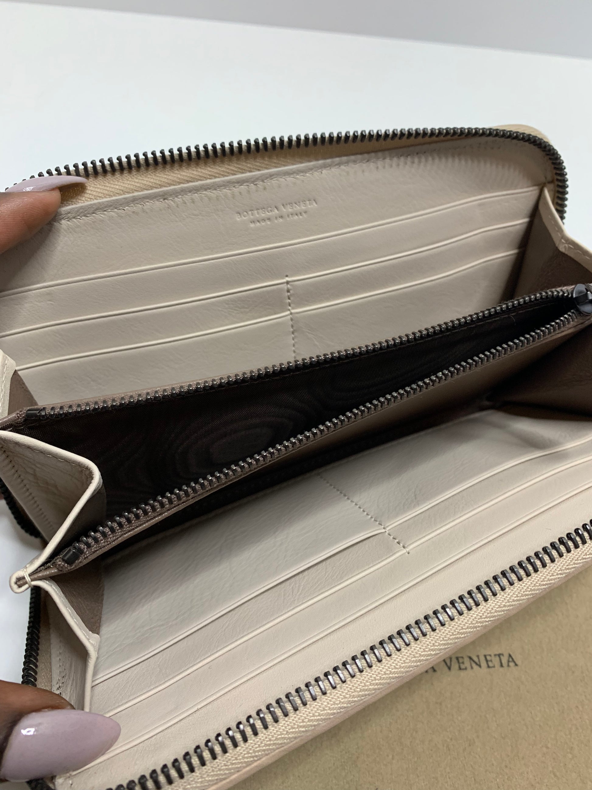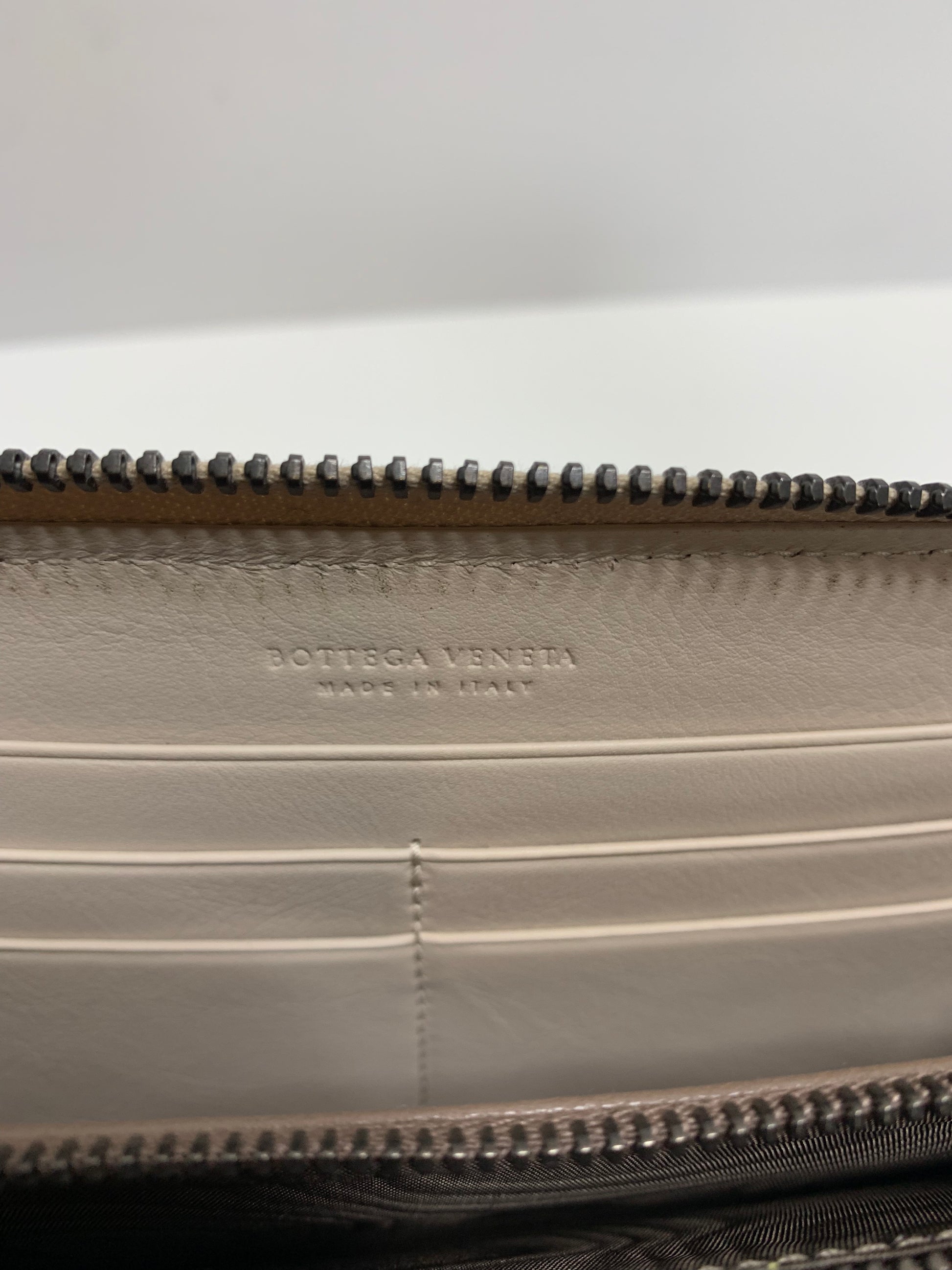 This zip-around continental wallet is made by hand with the intrecciato craftsmanship.