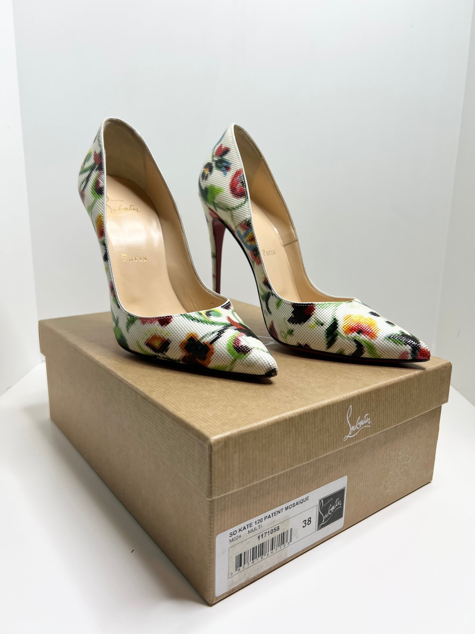 Christian Louboutin So Kate 120 Patent Mosaique, Multi-color, Size 38