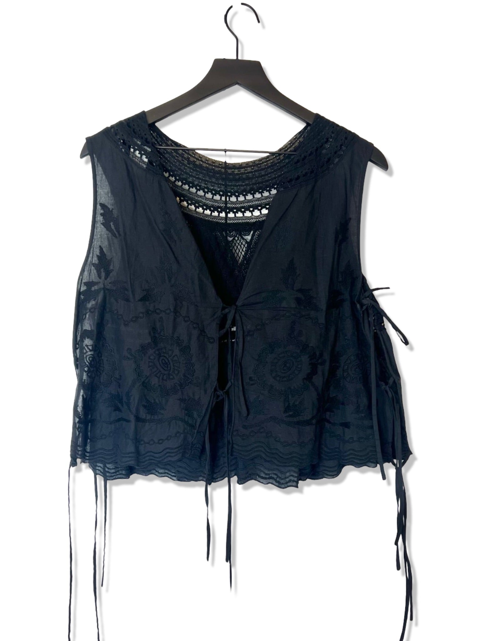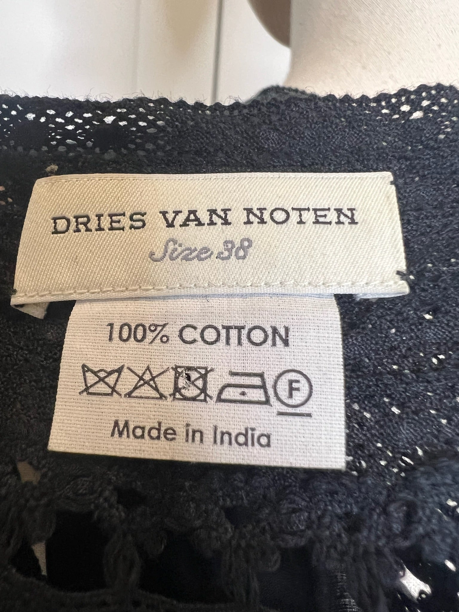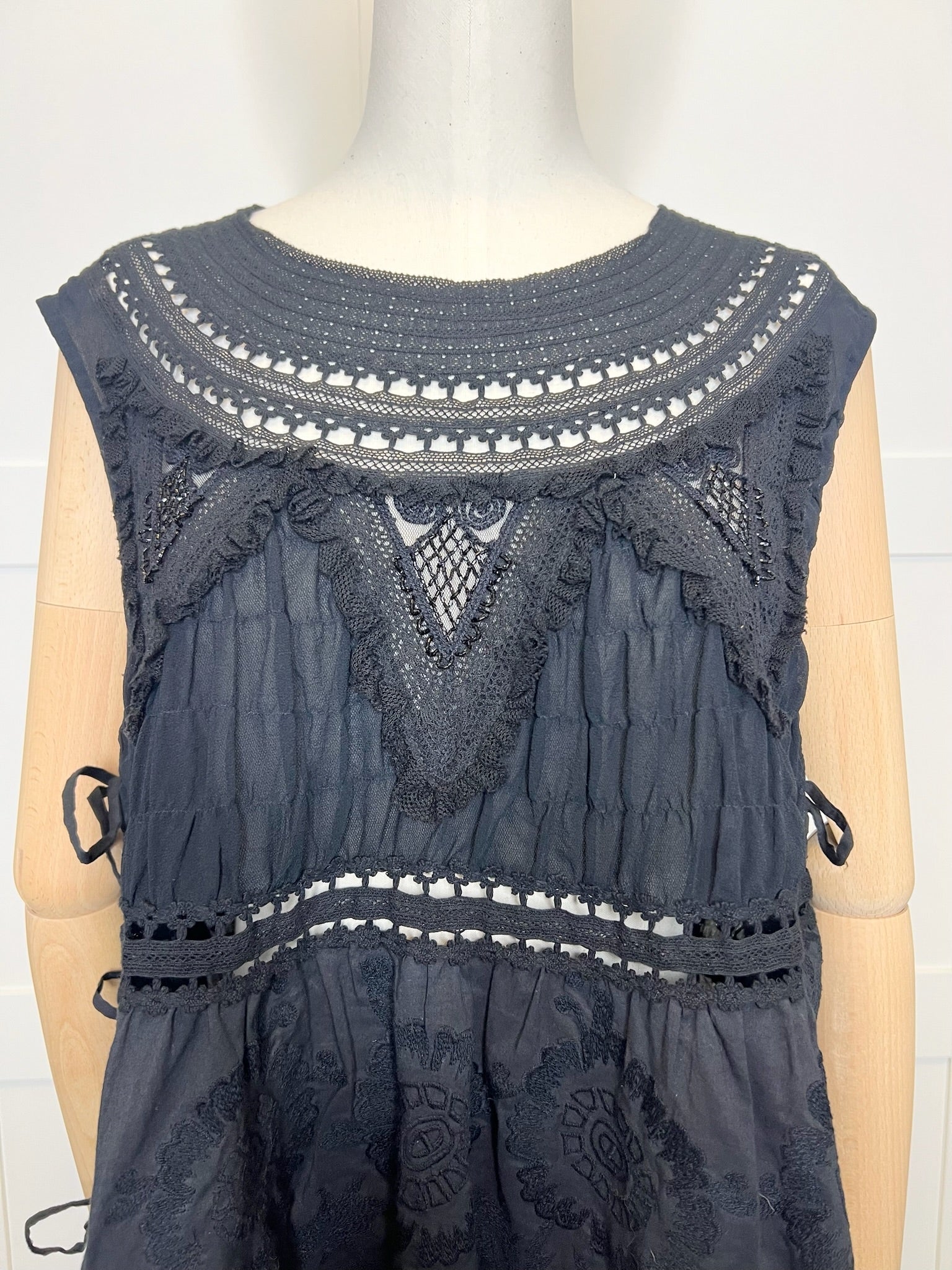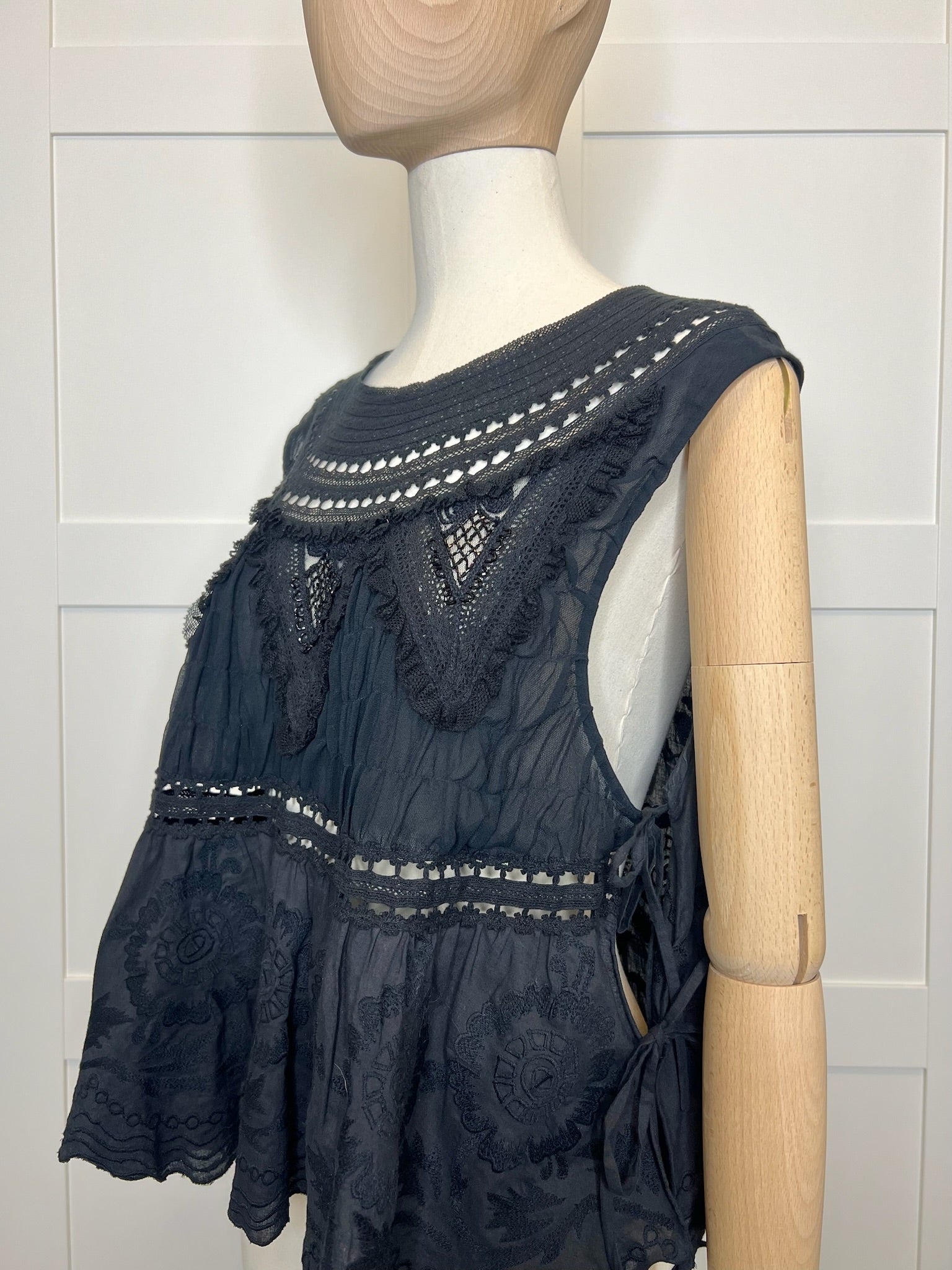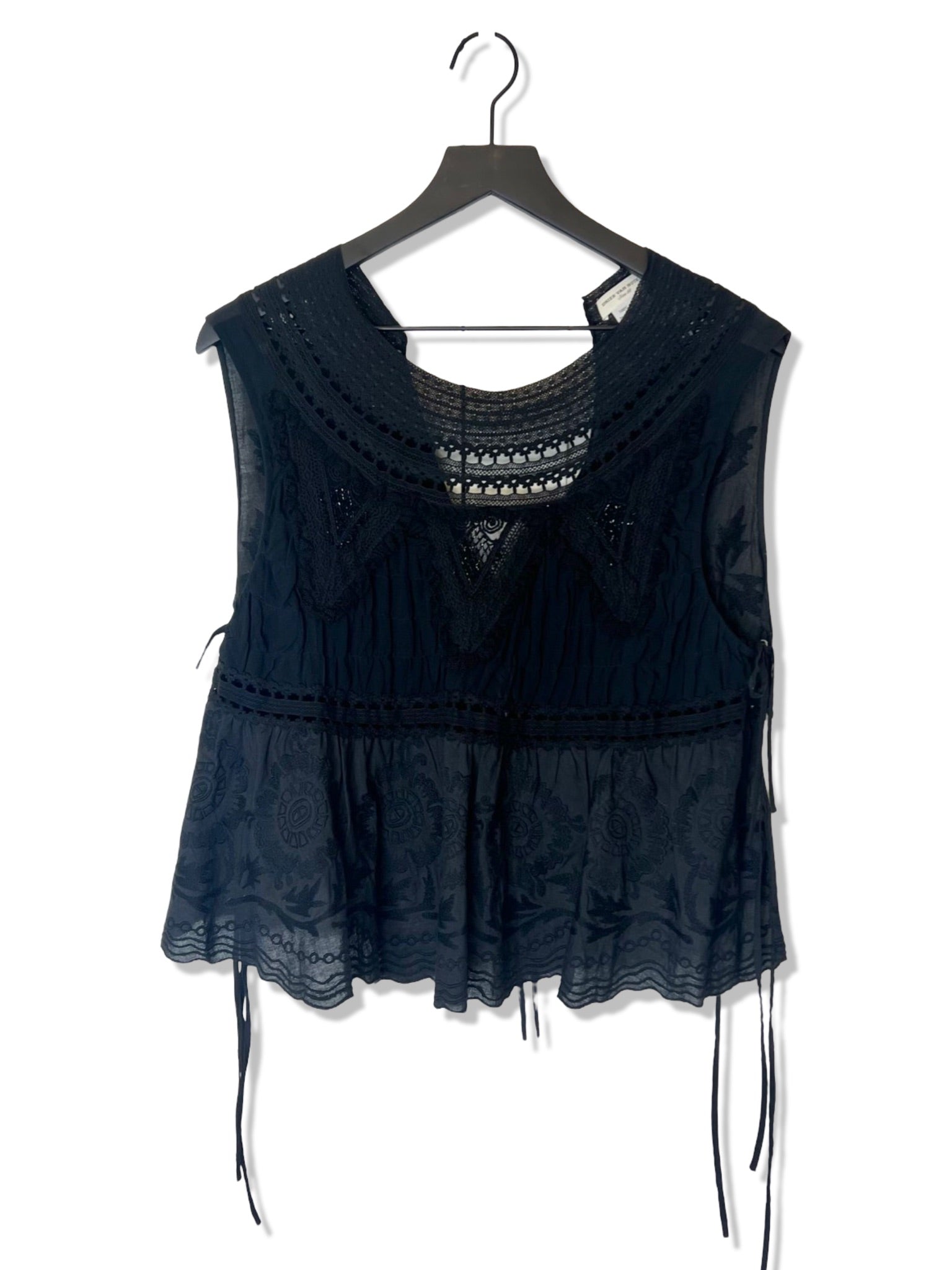 Dries Van Noten Black Embroidered Beaded Lace Top, Size 38