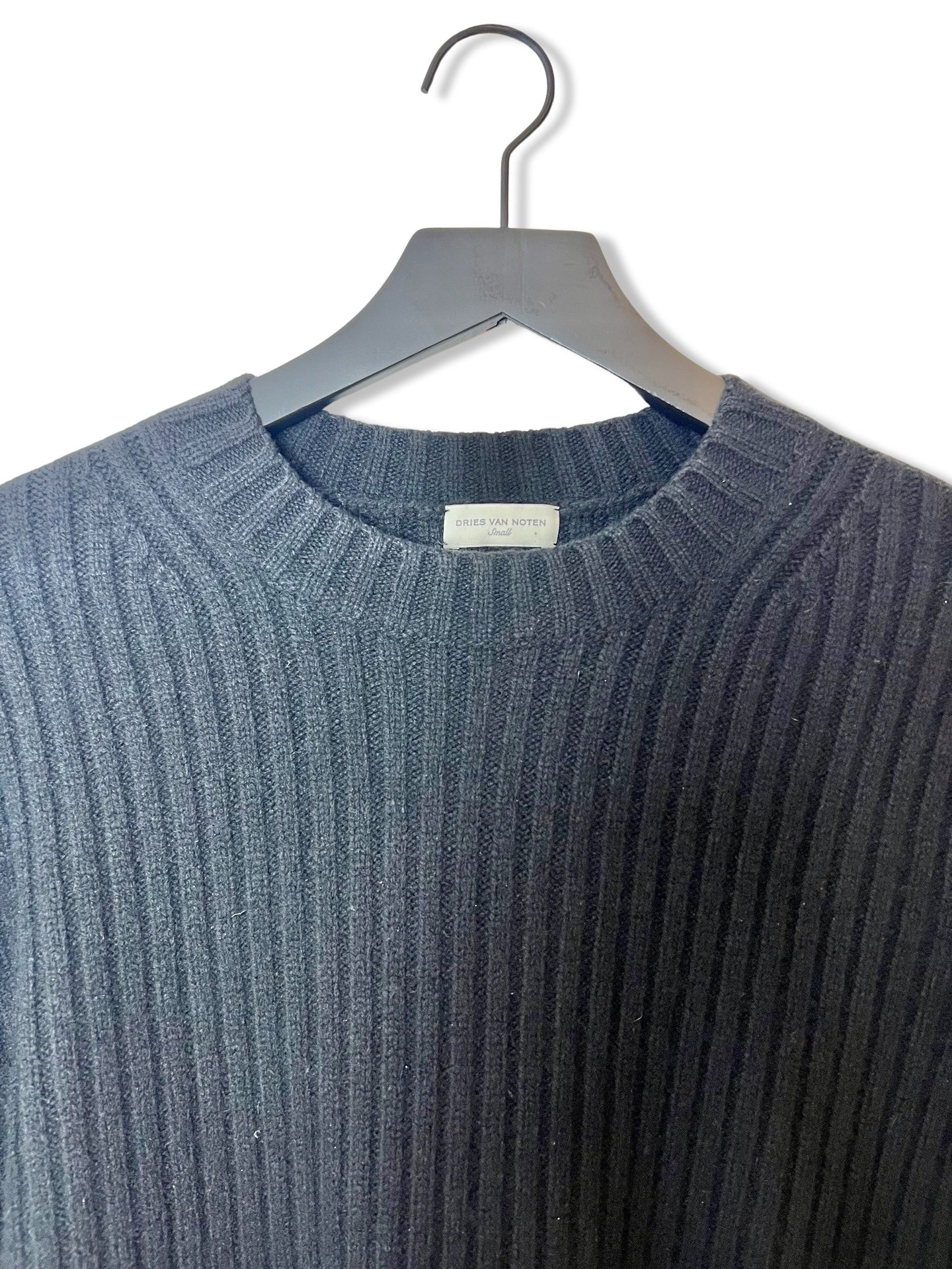 Dries Van Noten Crew neck Wool Rib Color-block Sweater, Small
