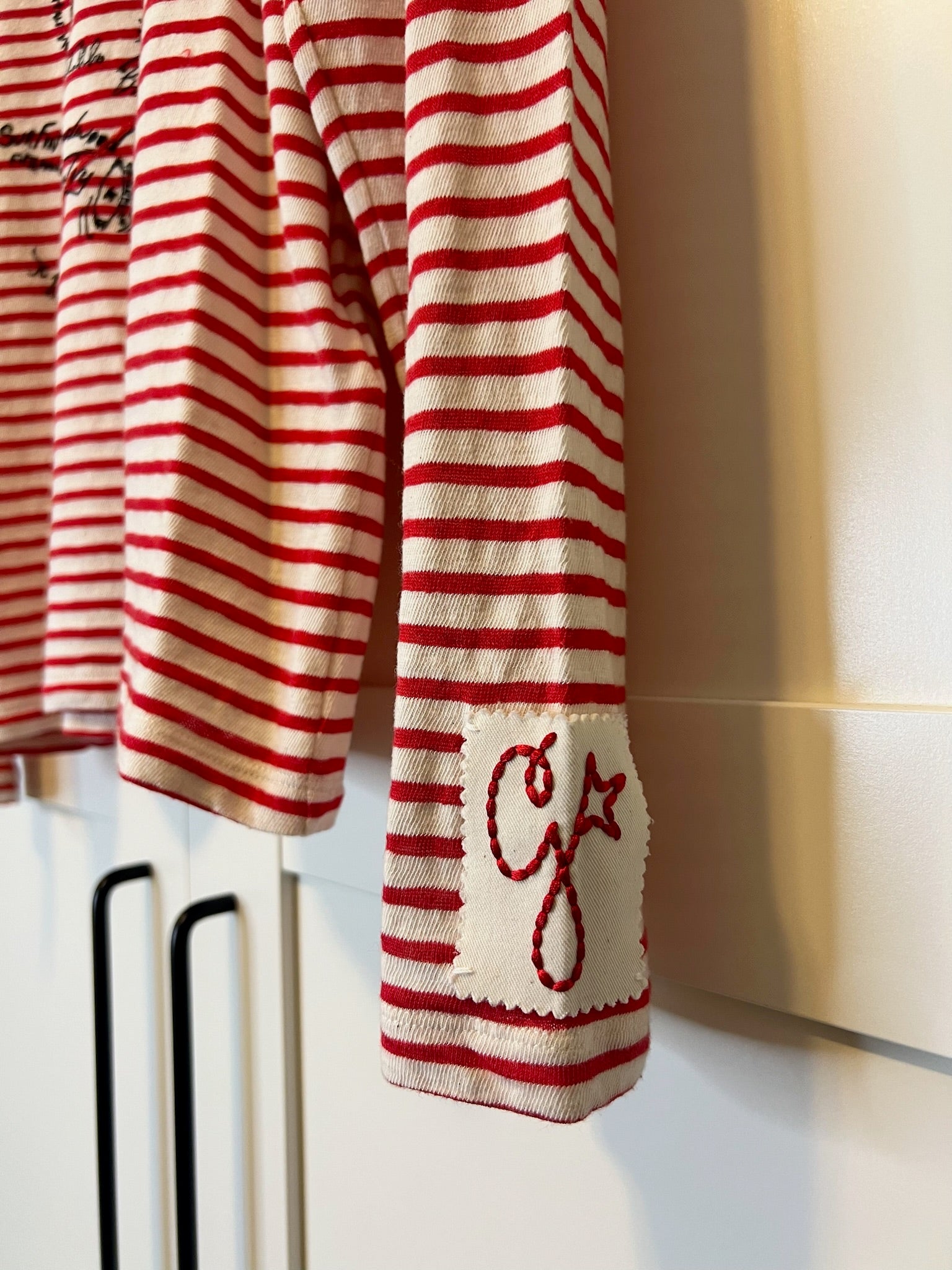 - Red embroidery on the front