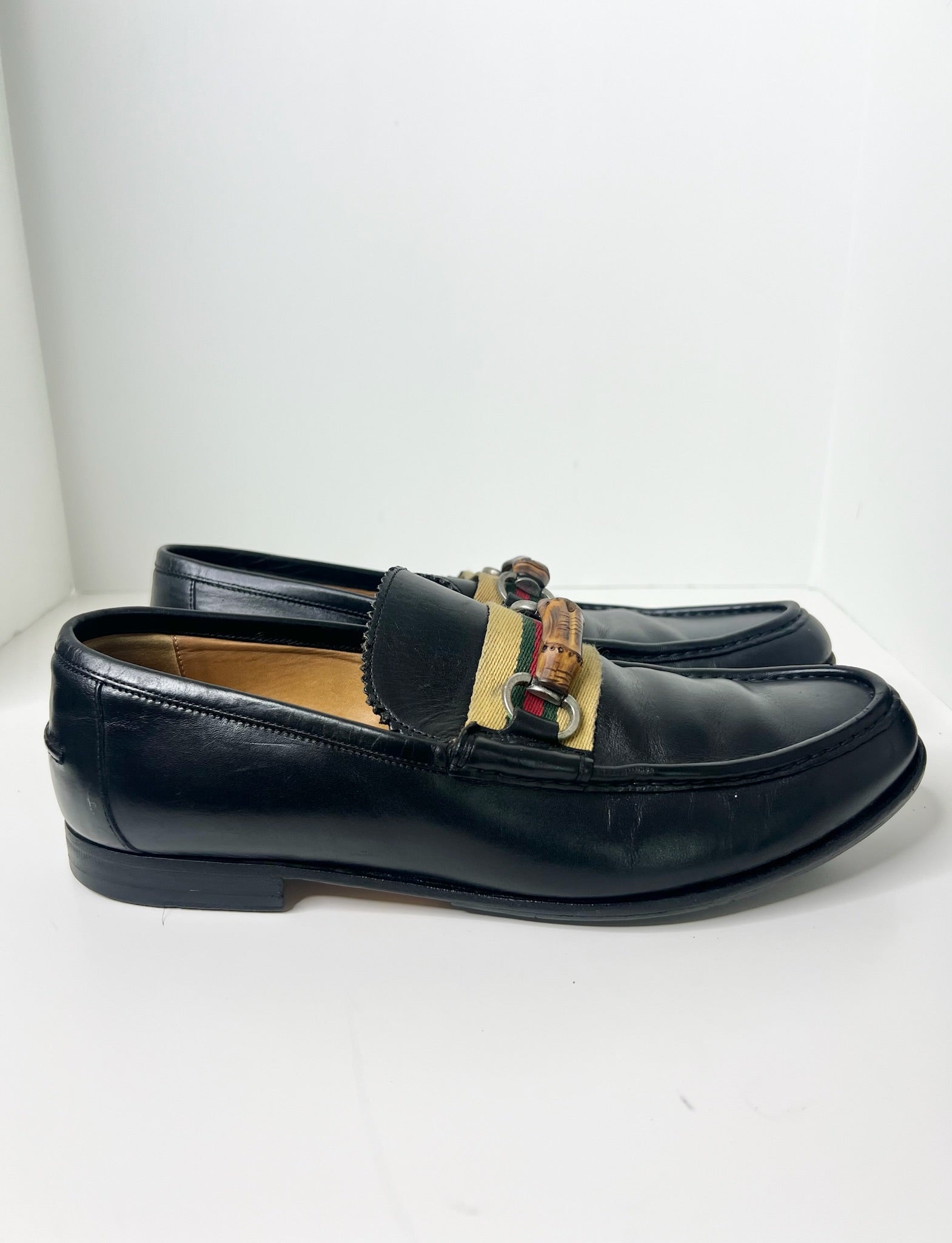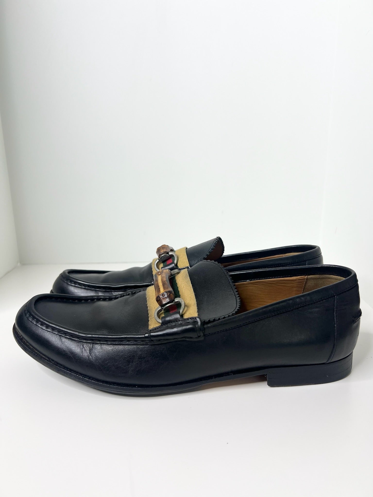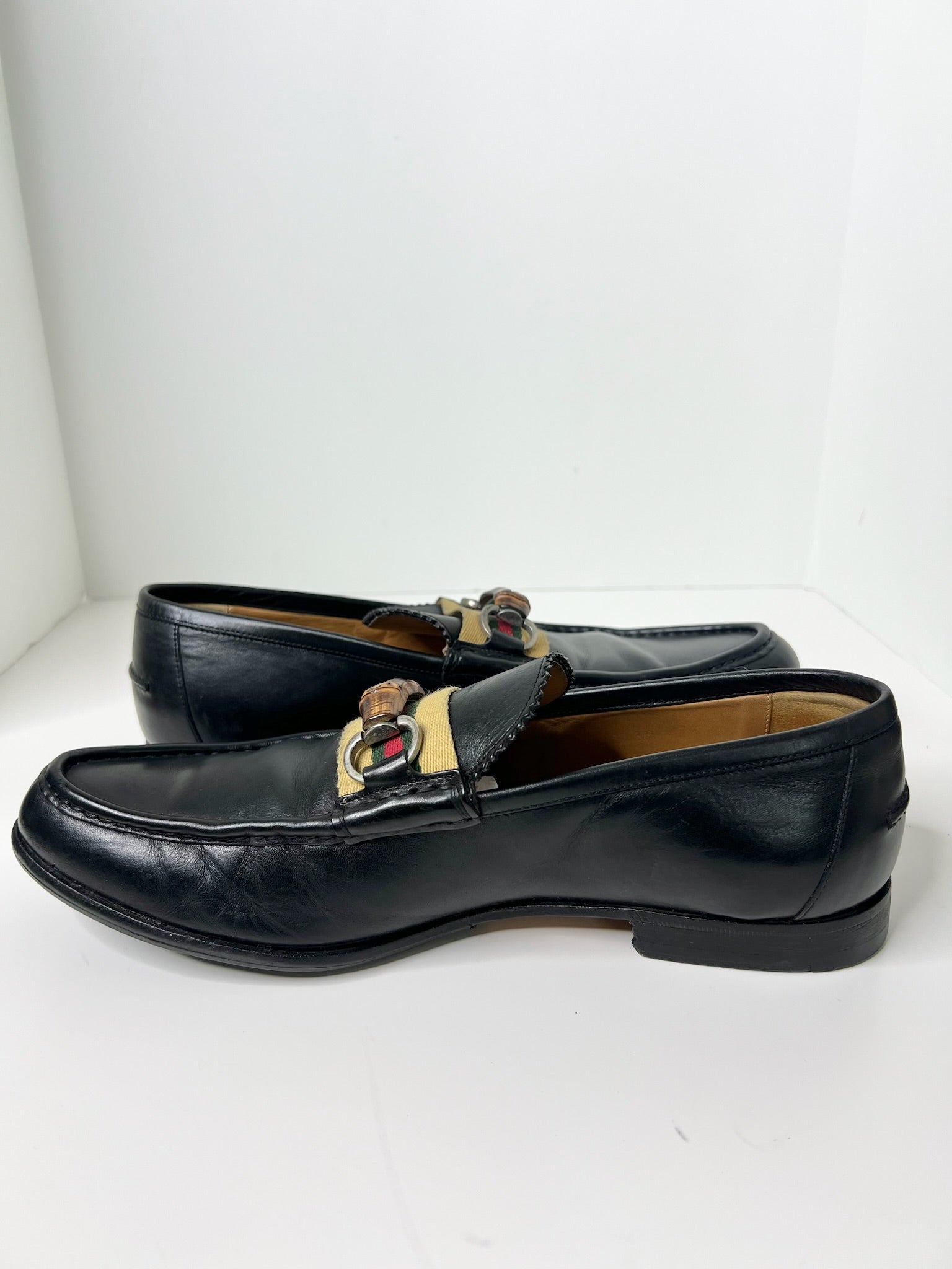 Gucci Bamboo Horsebit Black Leather Loafers, Size 7.5
