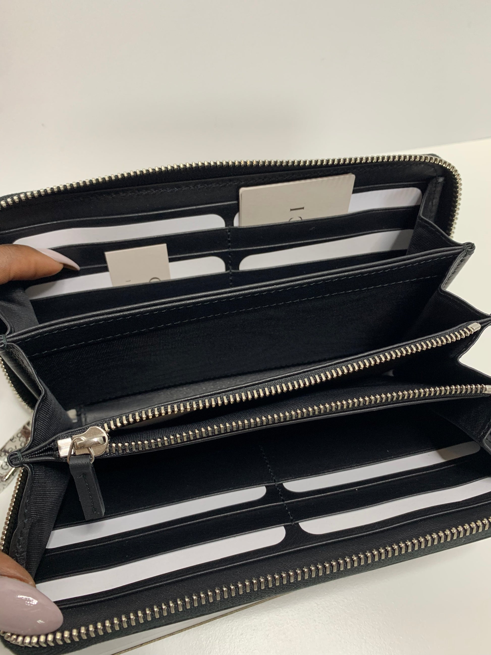 Details- Eight card slots, two bill compartments, two additional compartments and a coin pocket