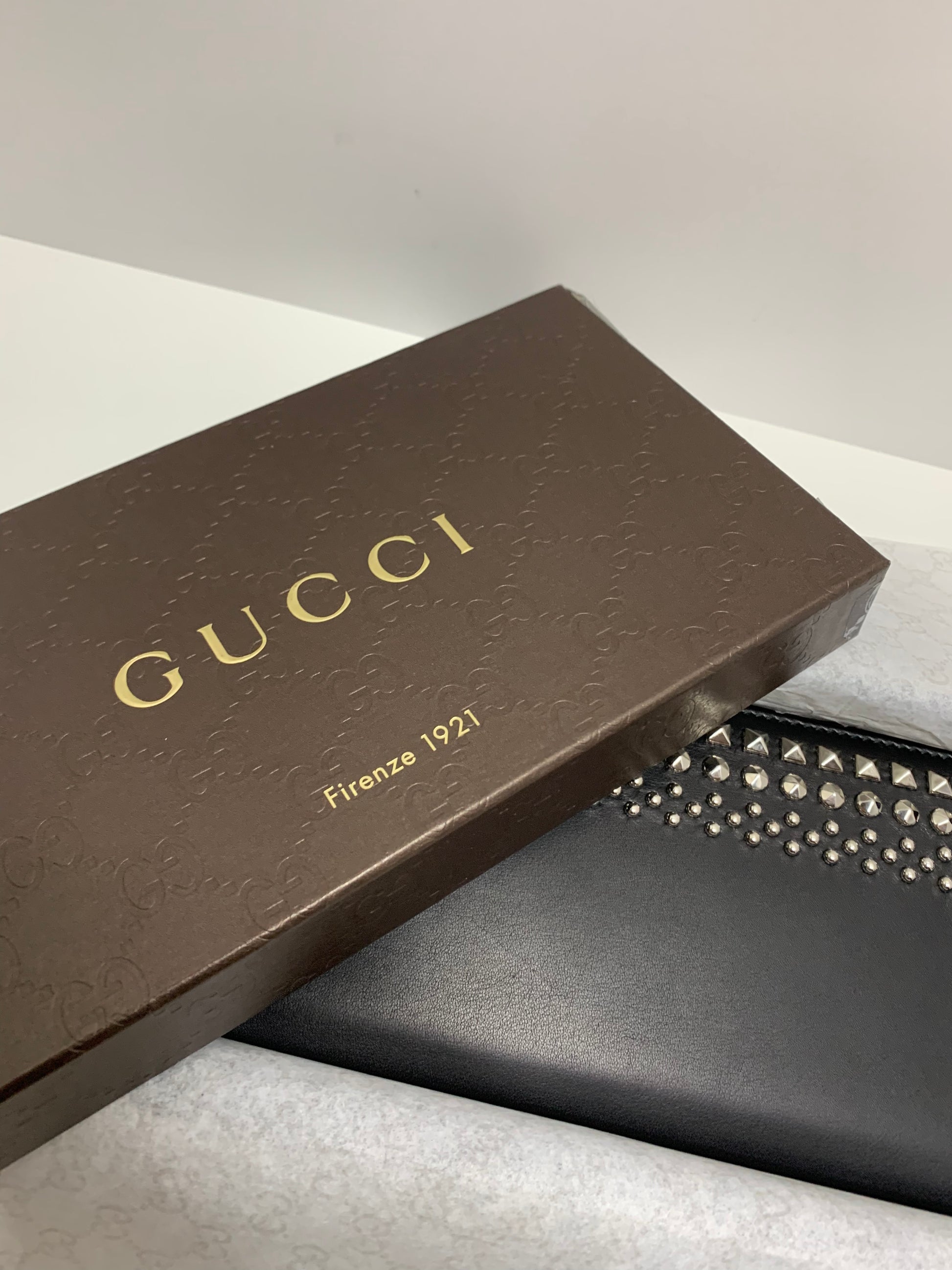Gucci Black Leather Zip Around with Studded Detail