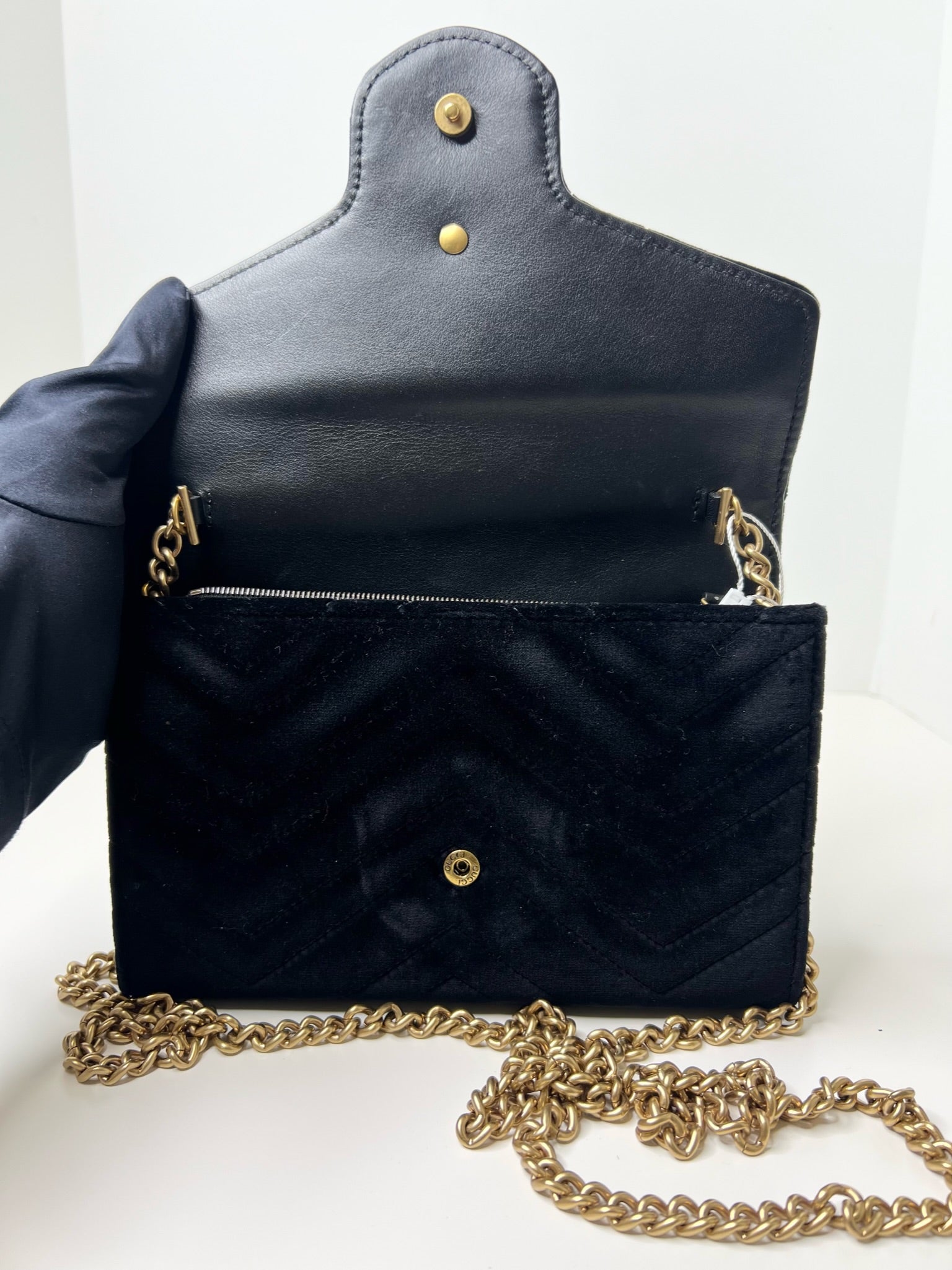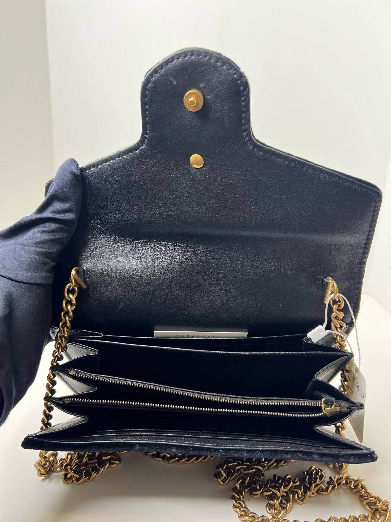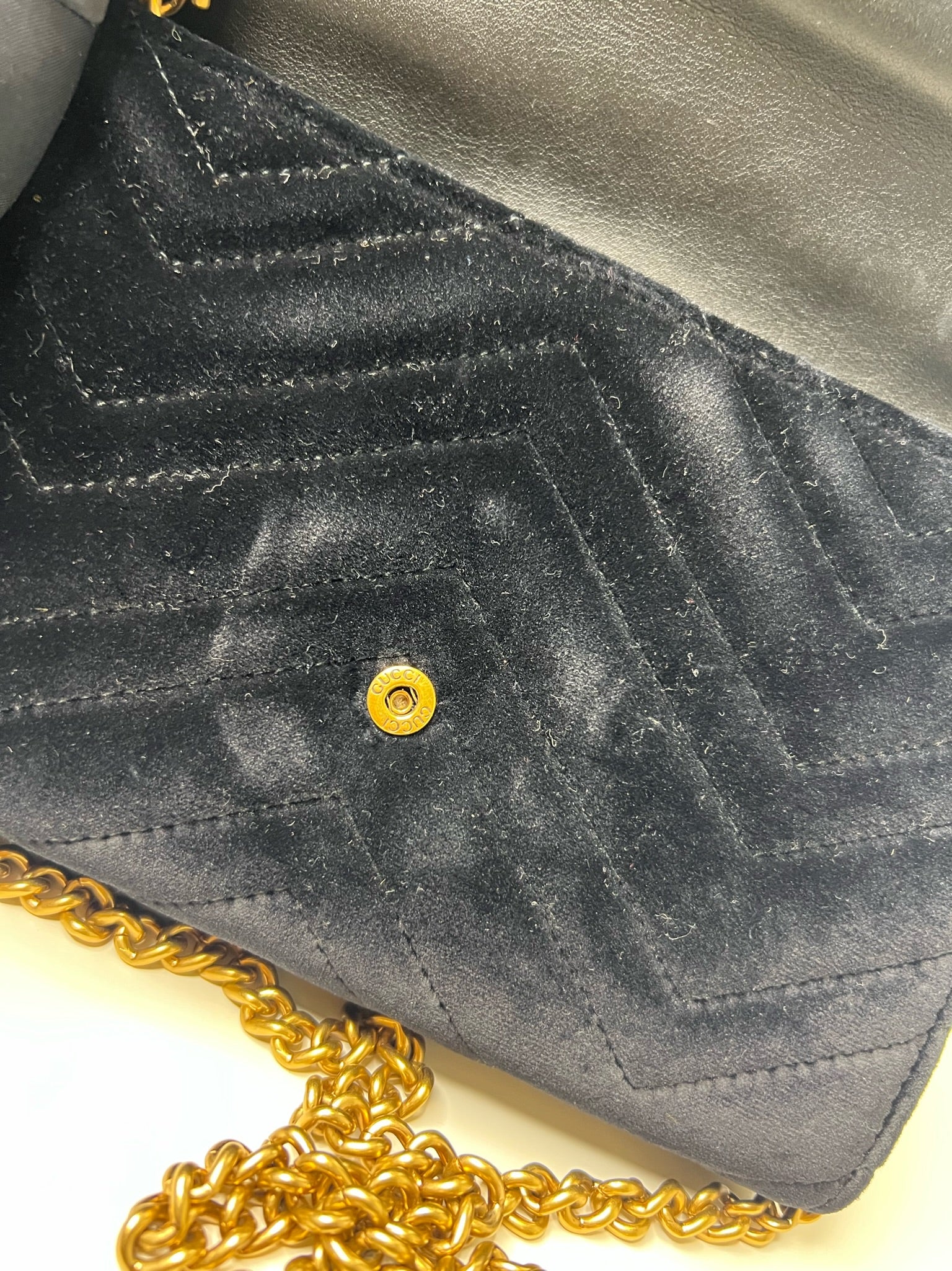 Gucci GG Marmot Black Velvet Wallet on Chain