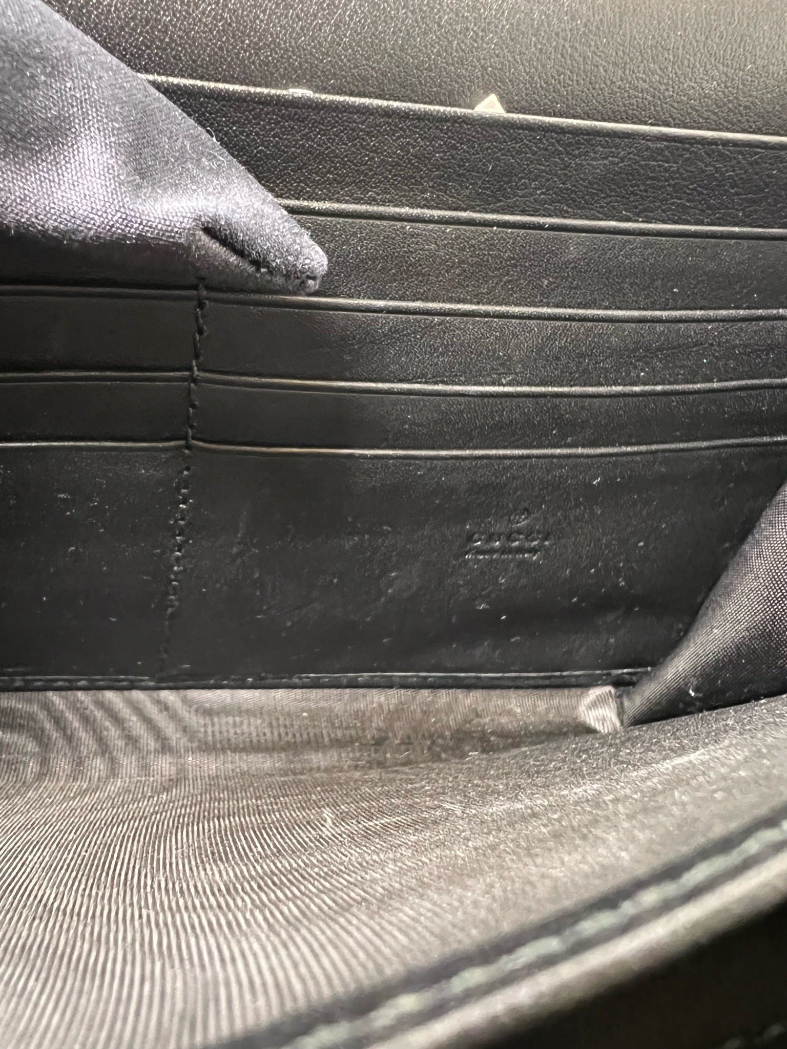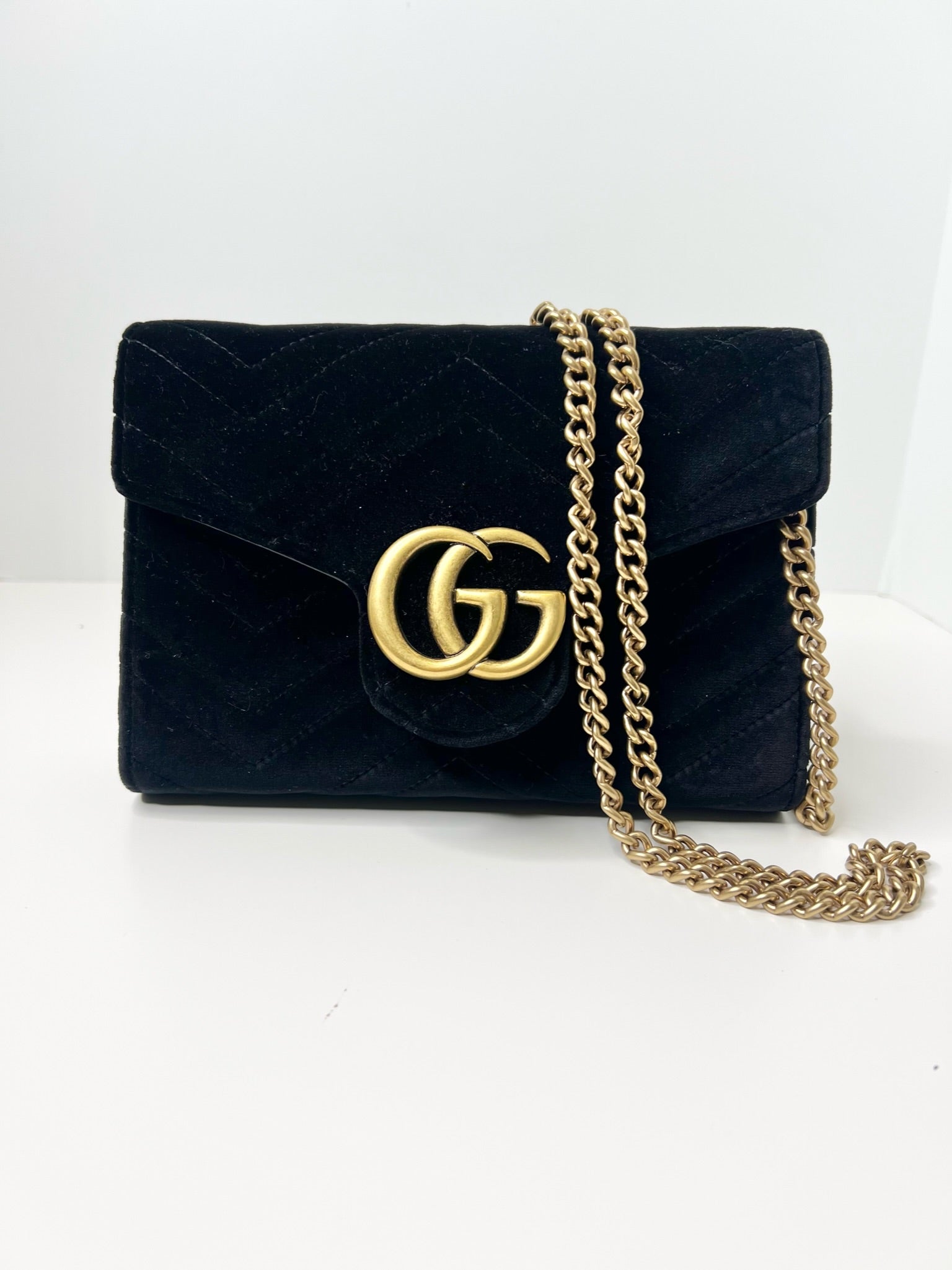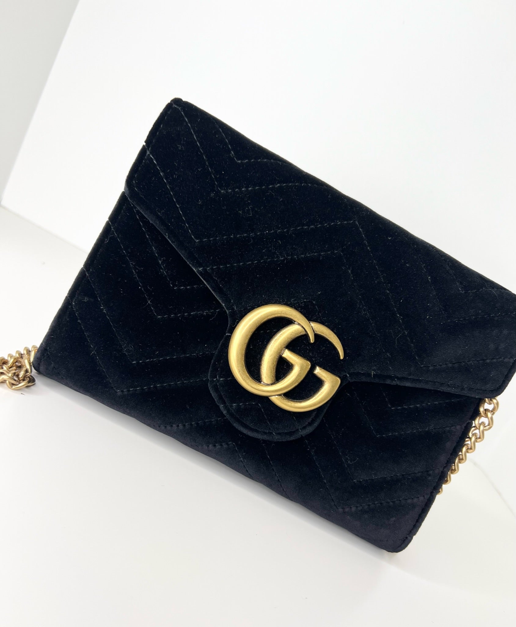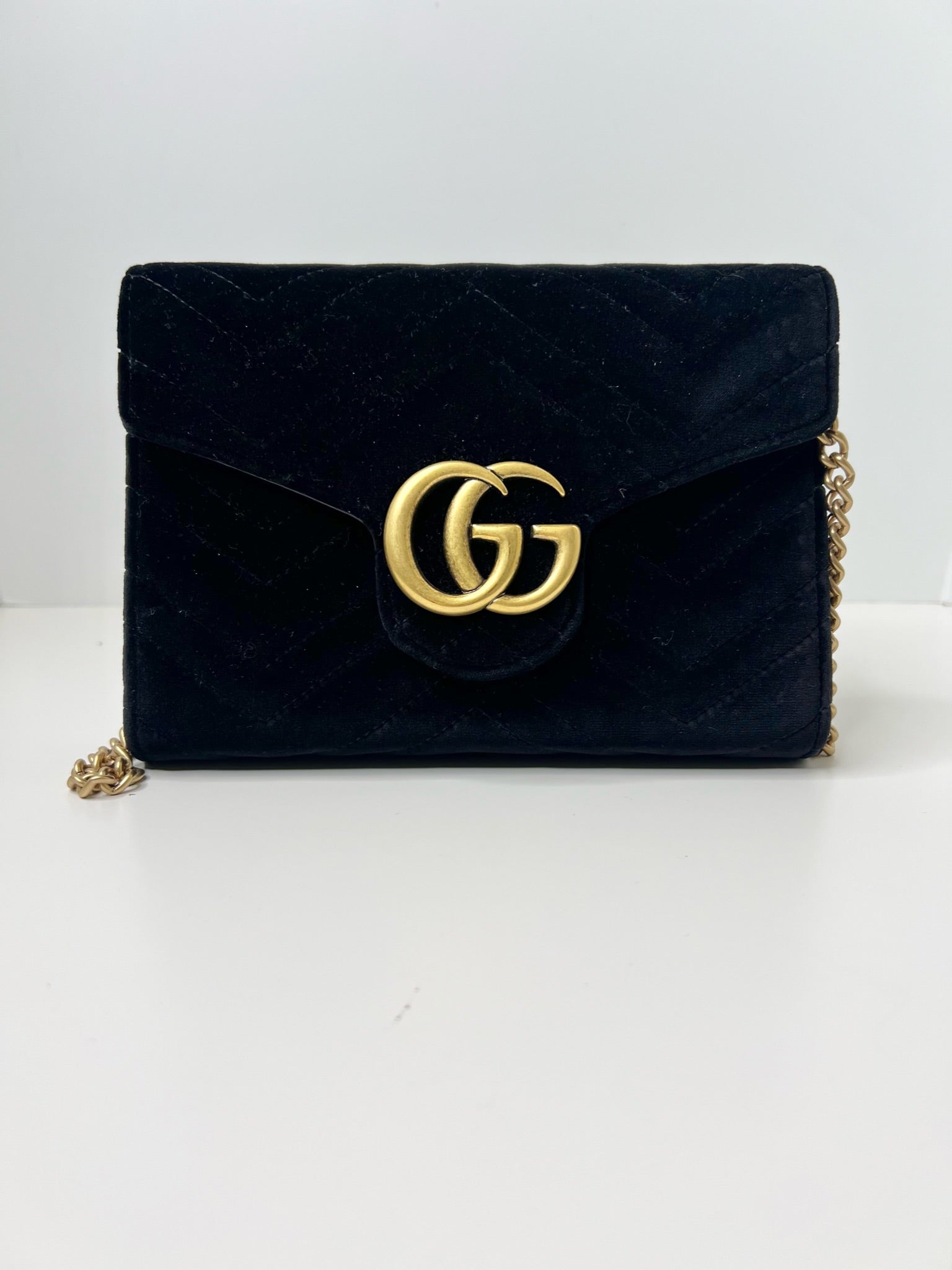 Gucci GG Marmot Black Velvet Wallet on Chain