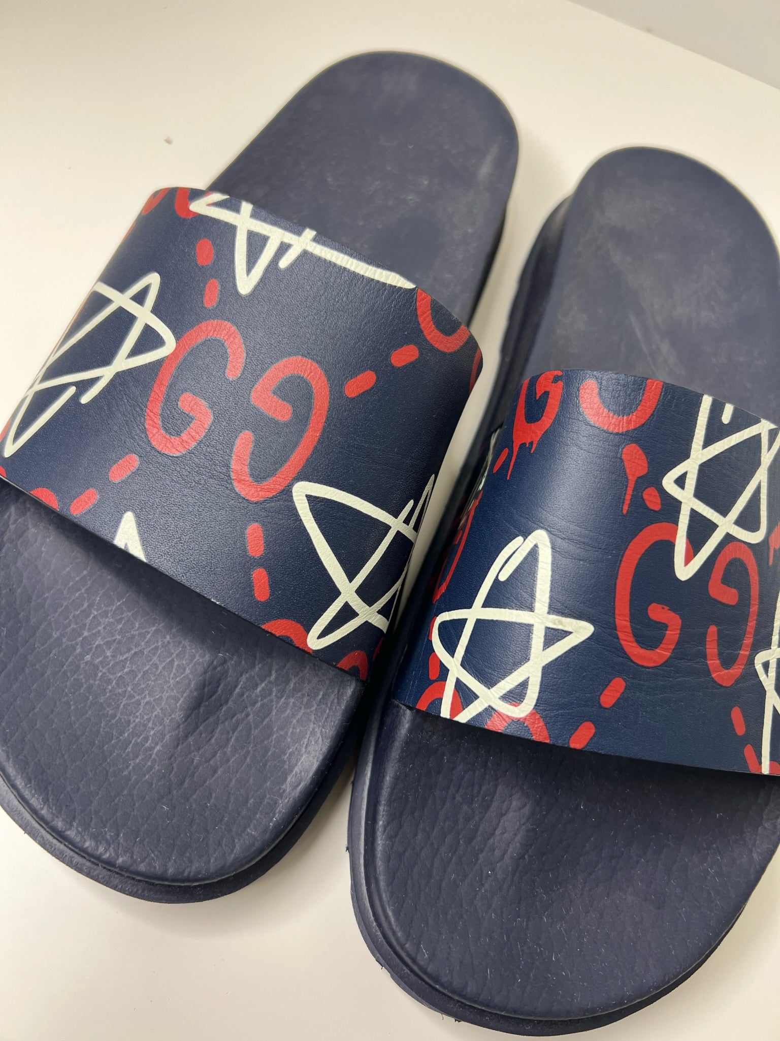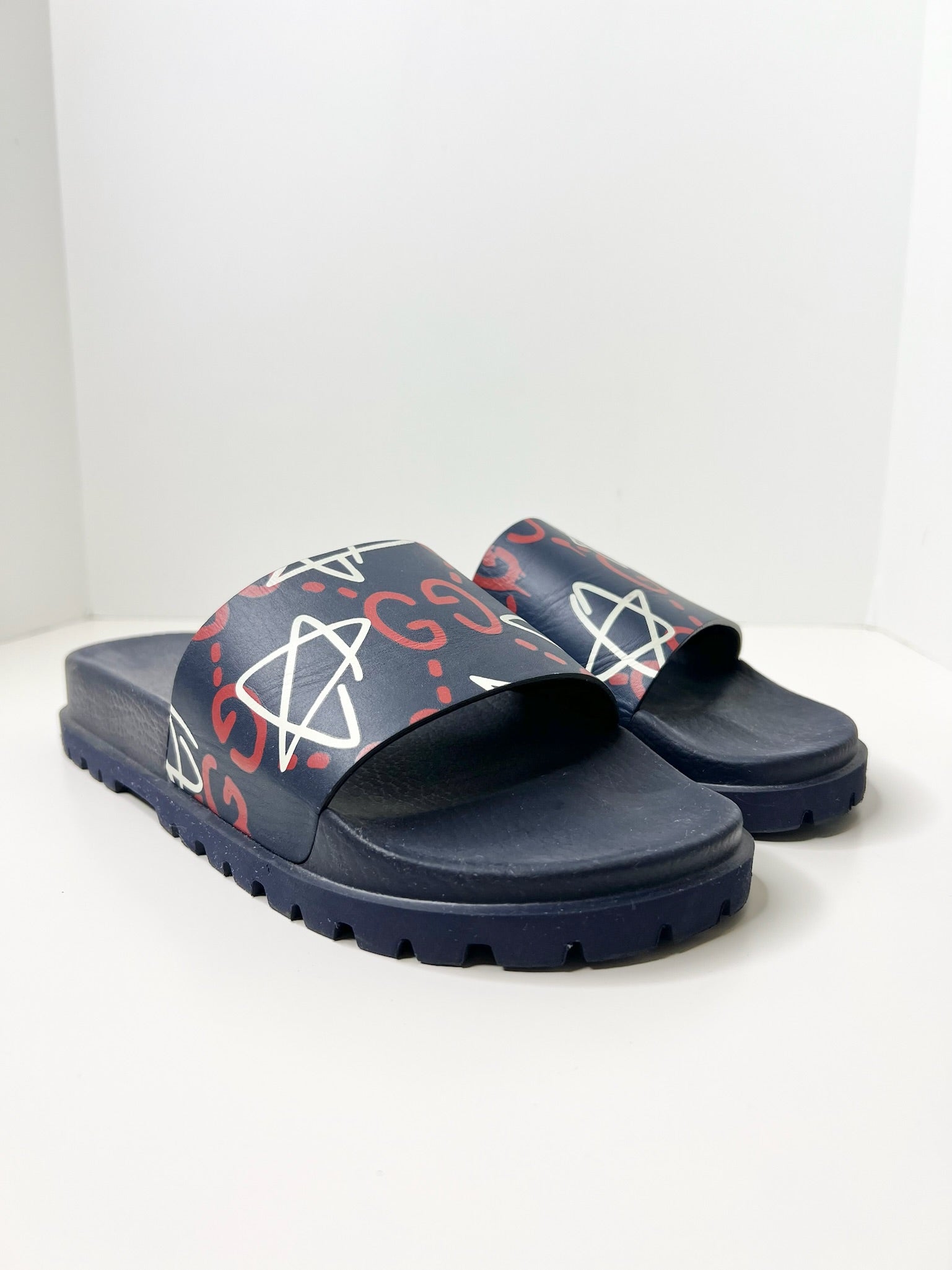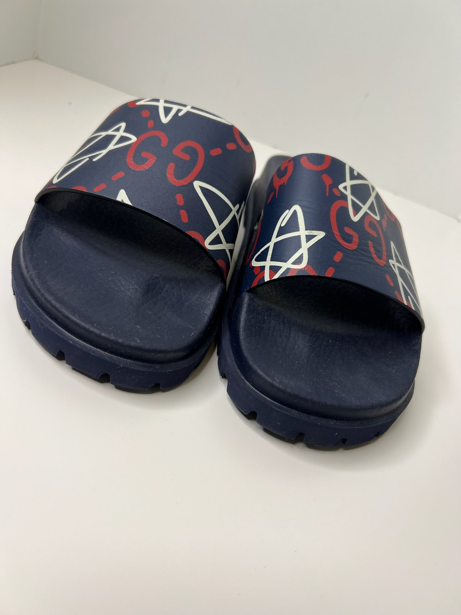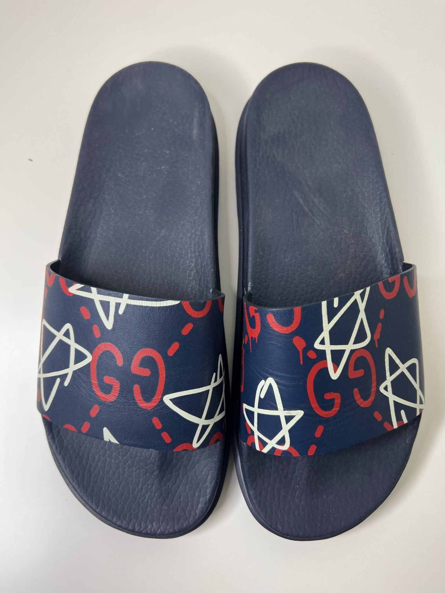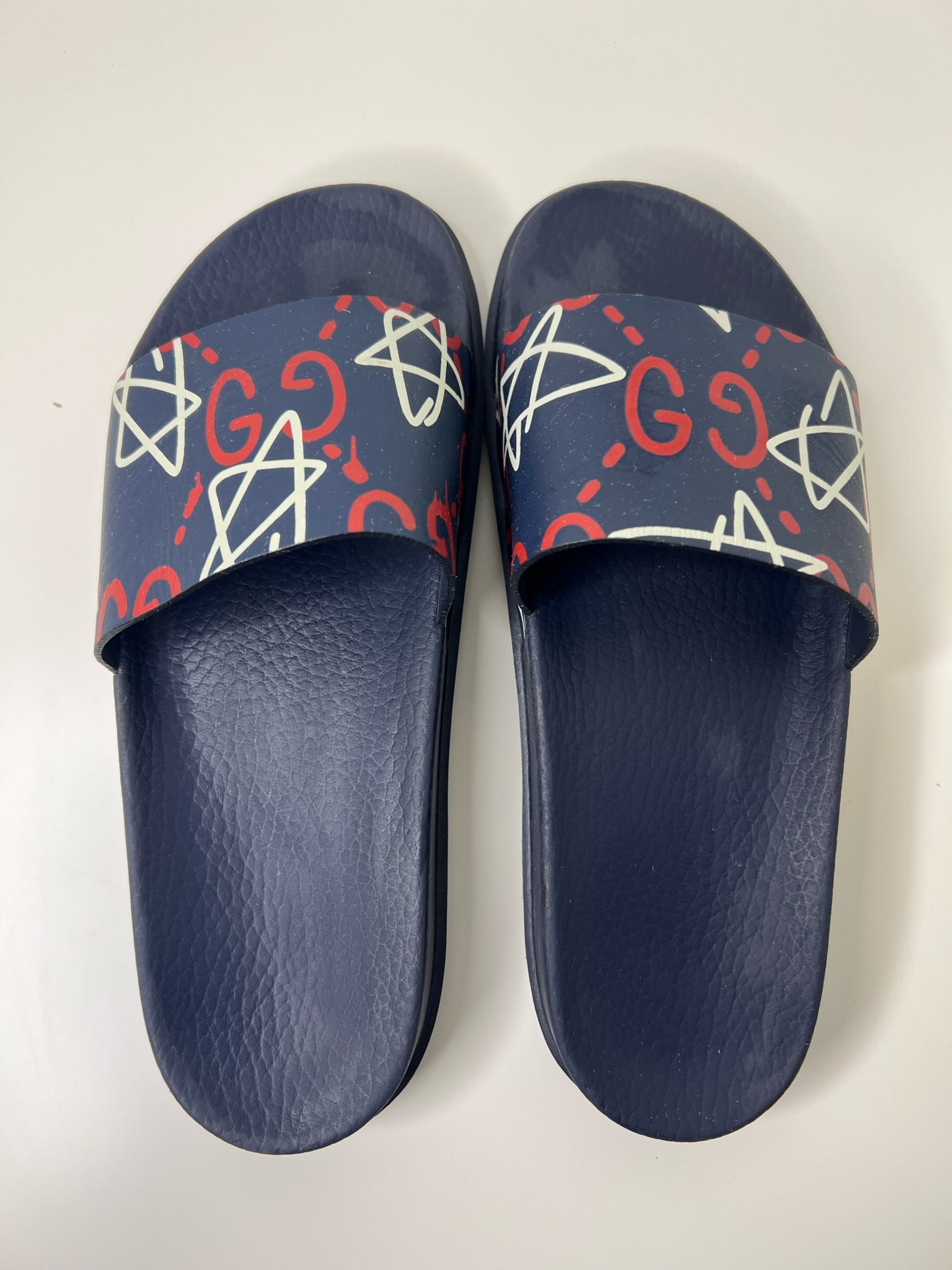 Gucci Ghost Star Print Blue Slides, Size 8