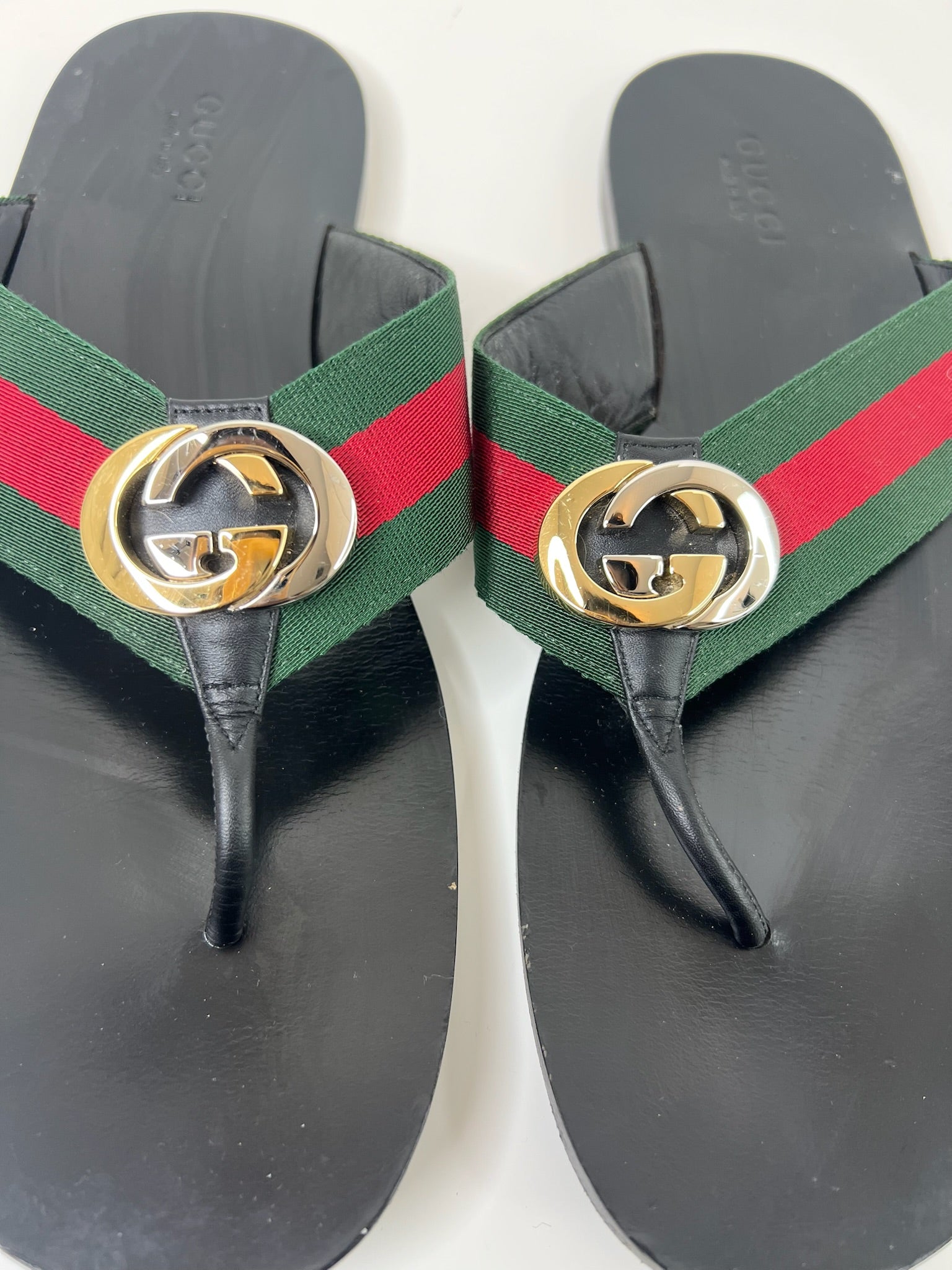 Gucci Men's Thong Sandal with Web, Size 12.5