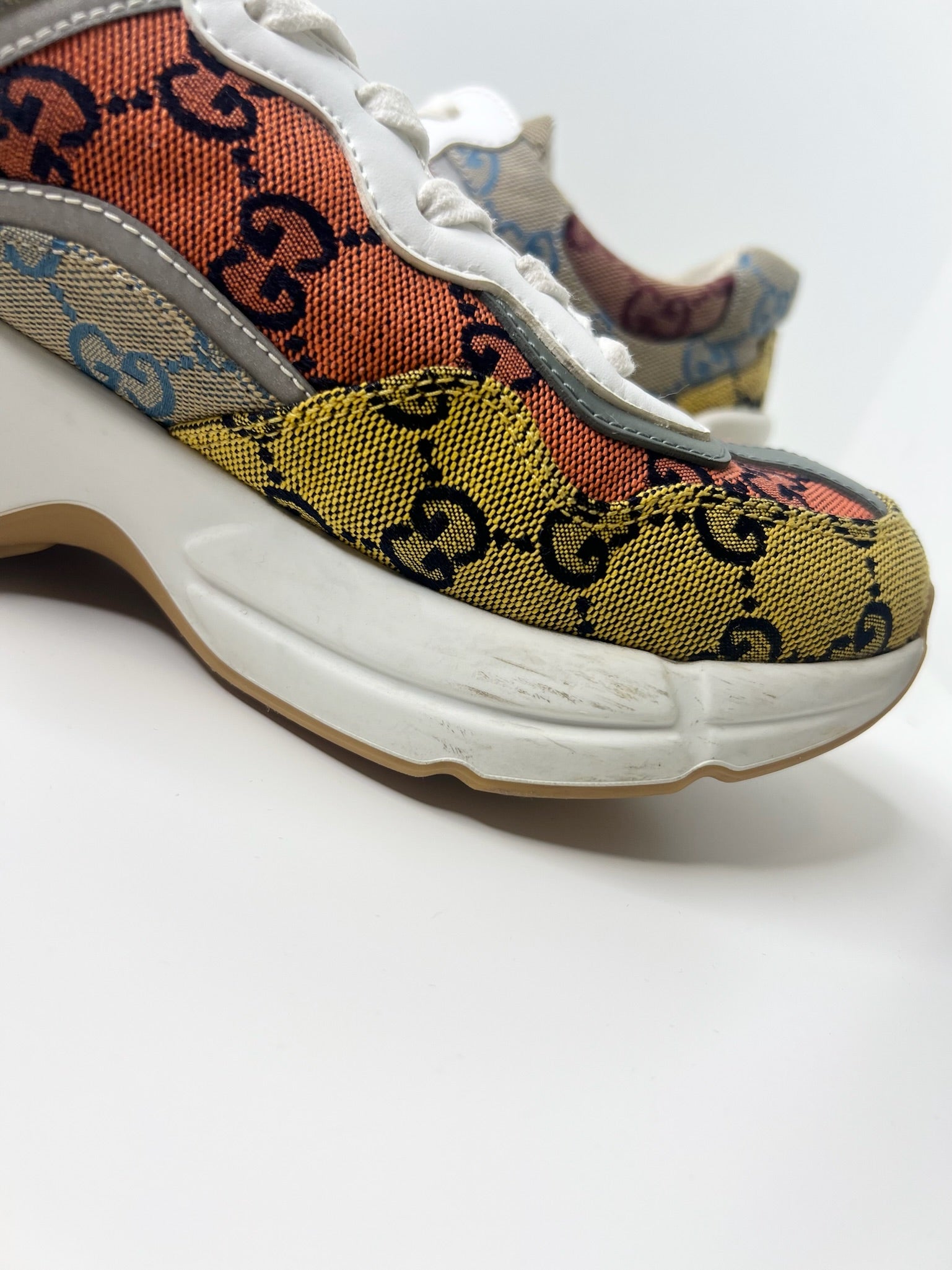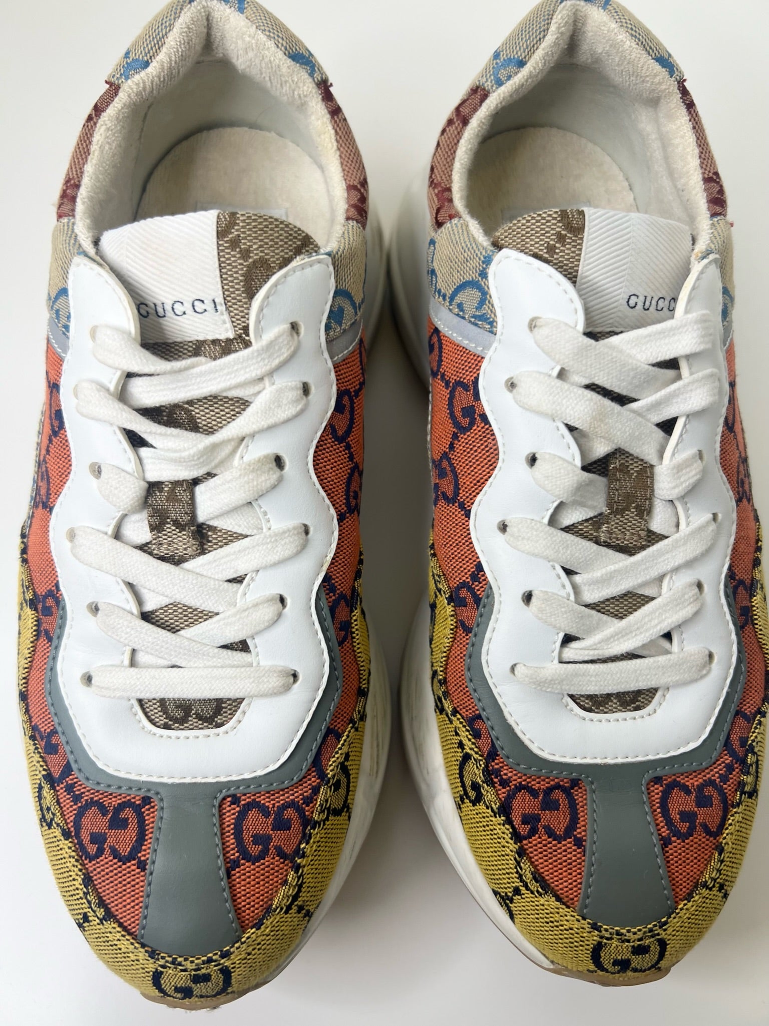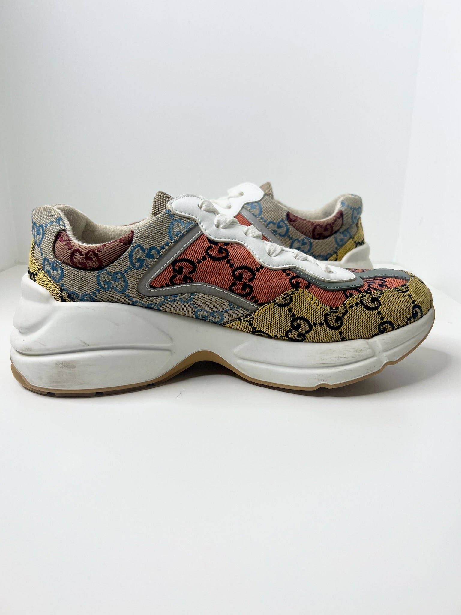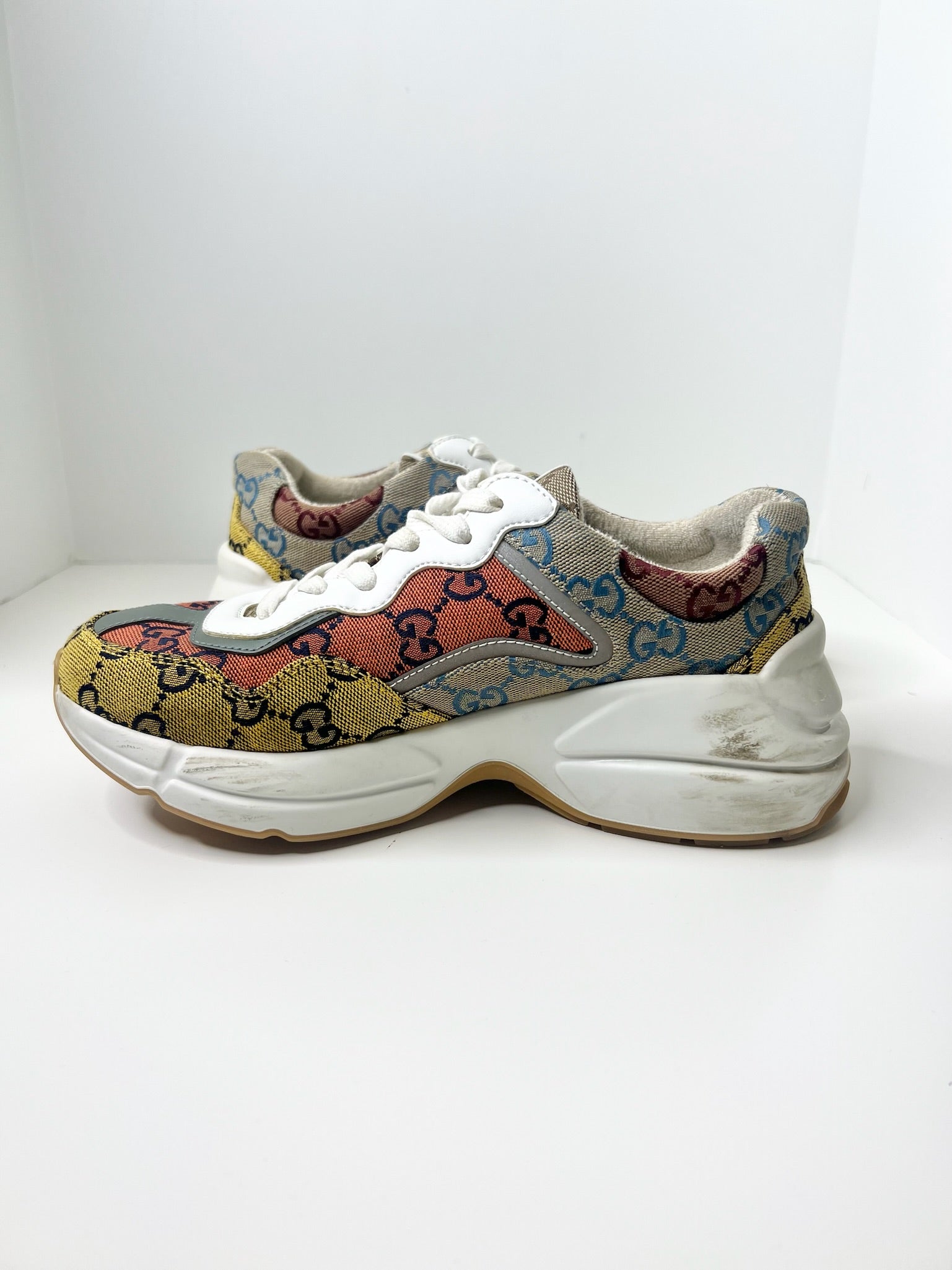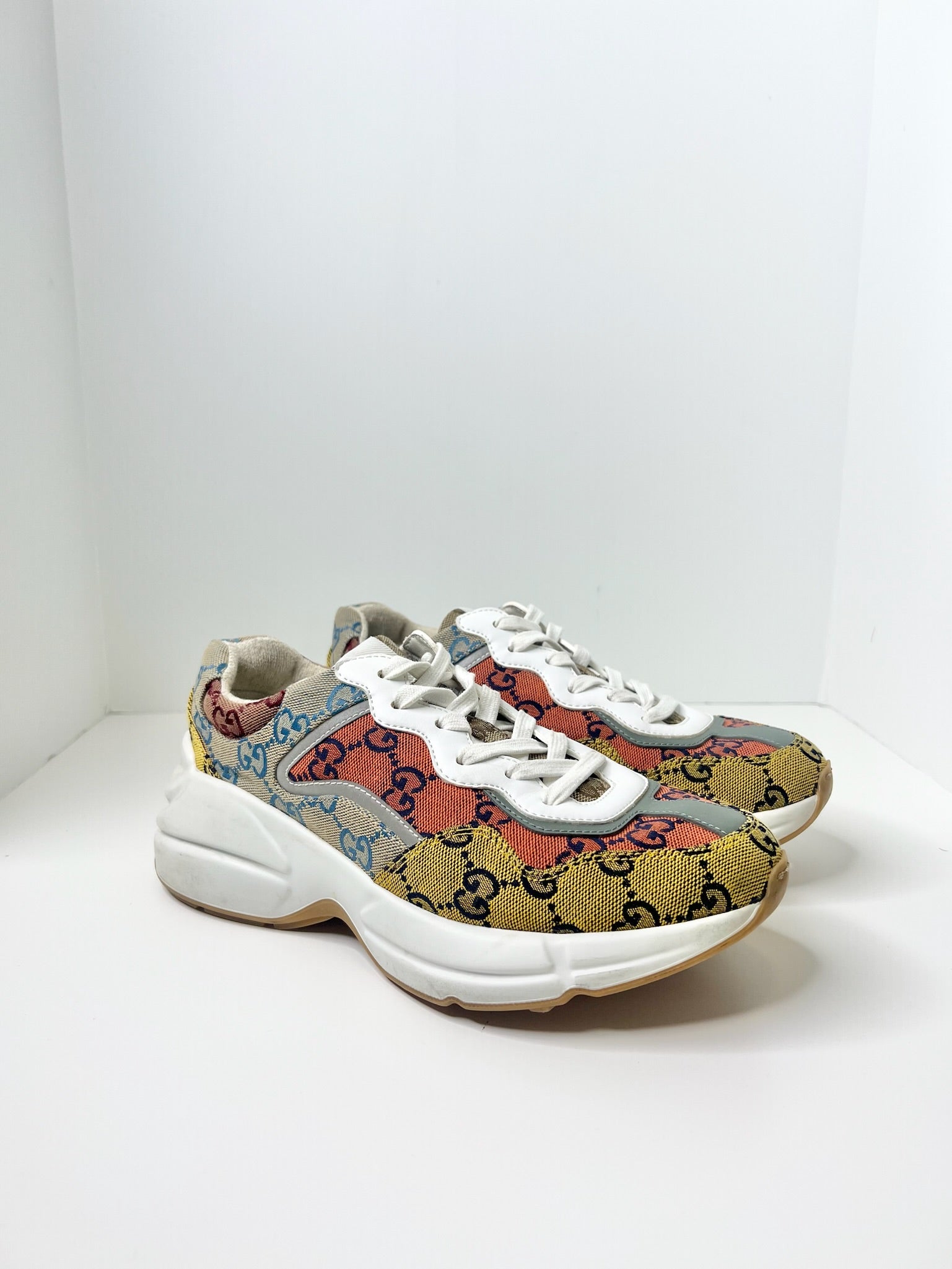 Gucci Womens Rhyton GG Monogram Multi-Color Sneakers, Size 37
