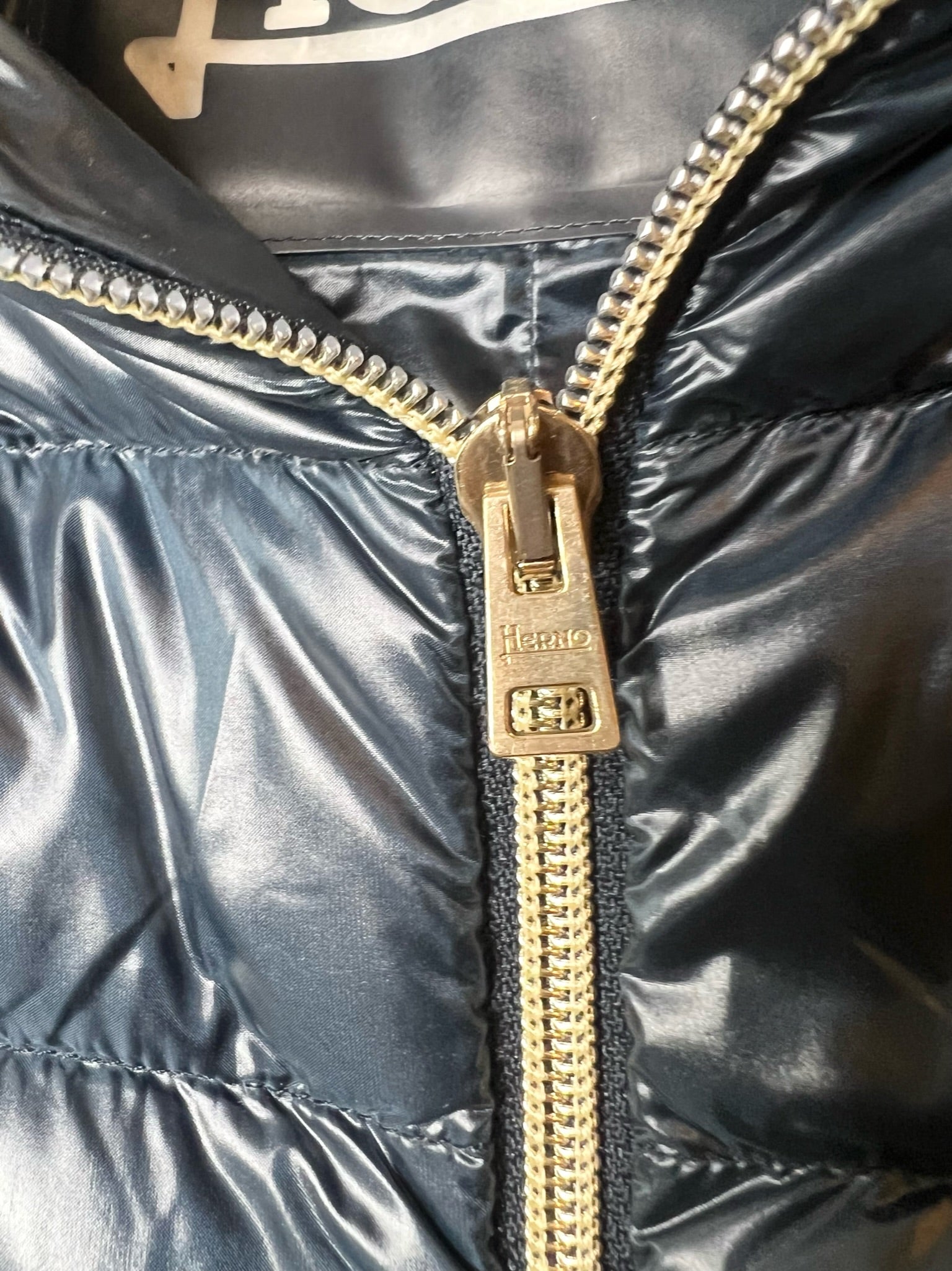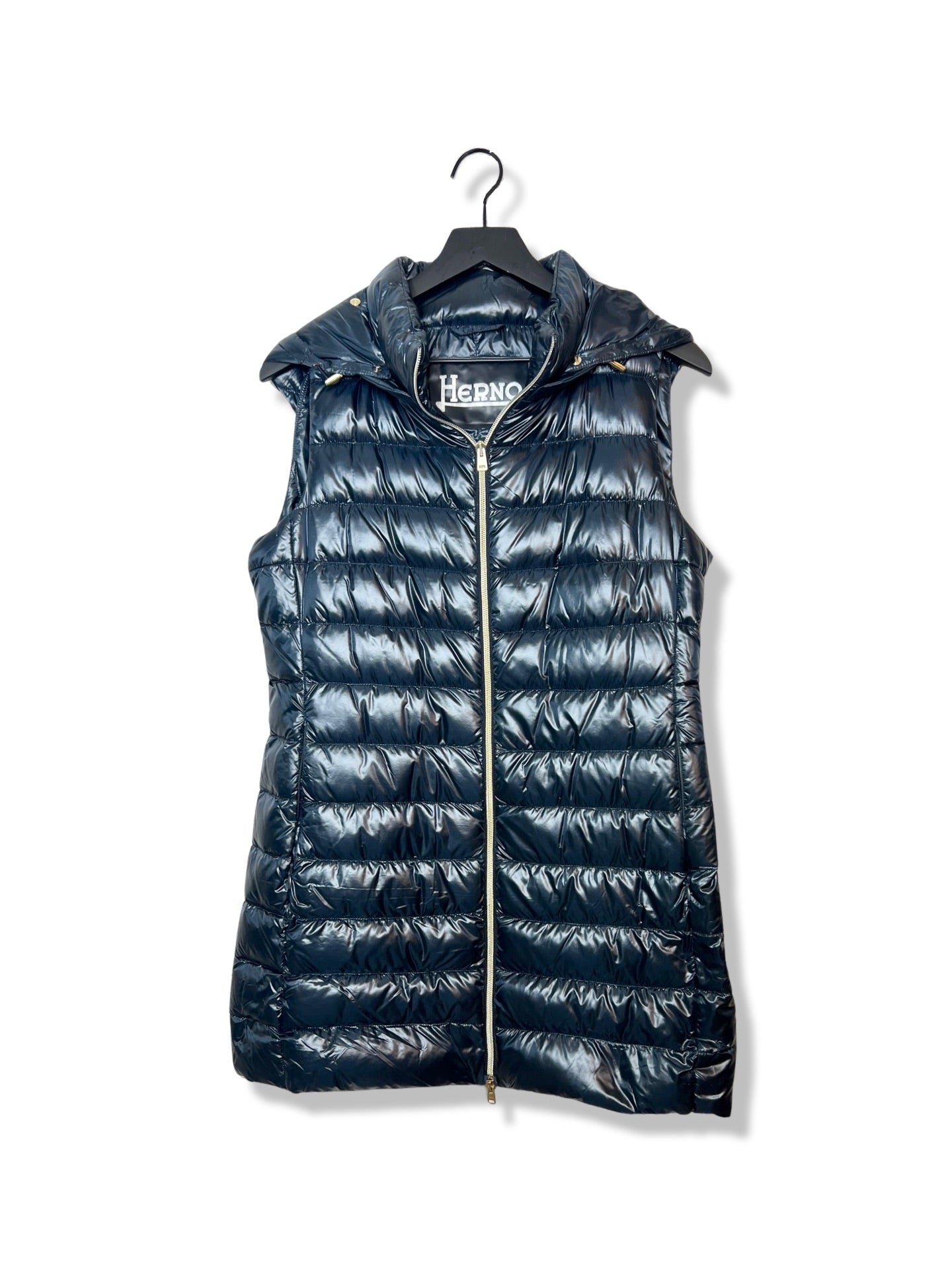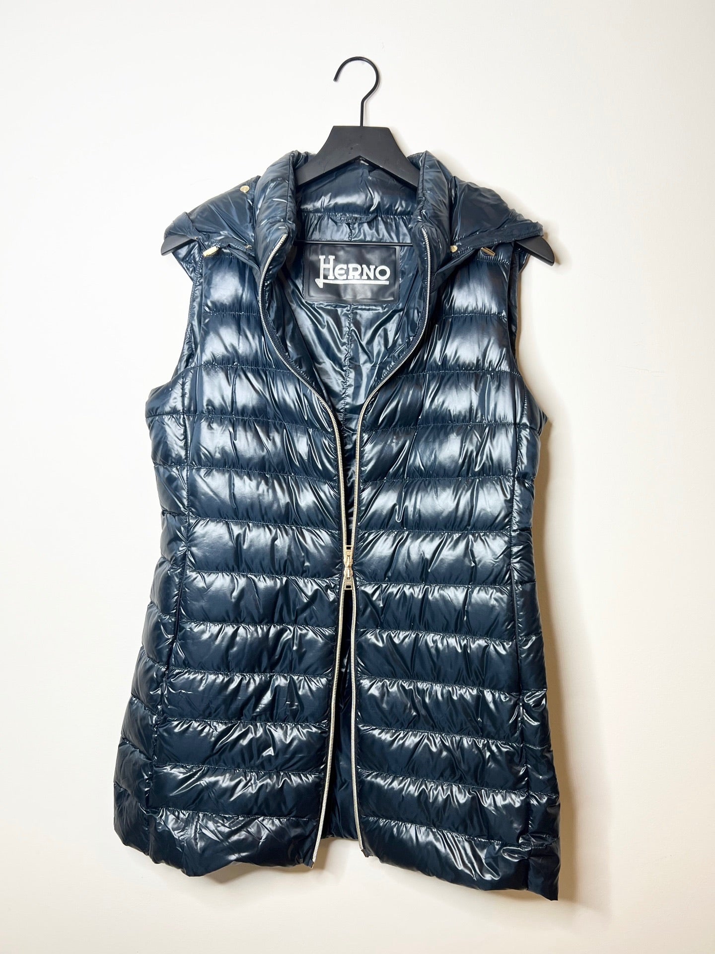 Herno Puffer Vest w/ Removable Hood, Navy, Size 10