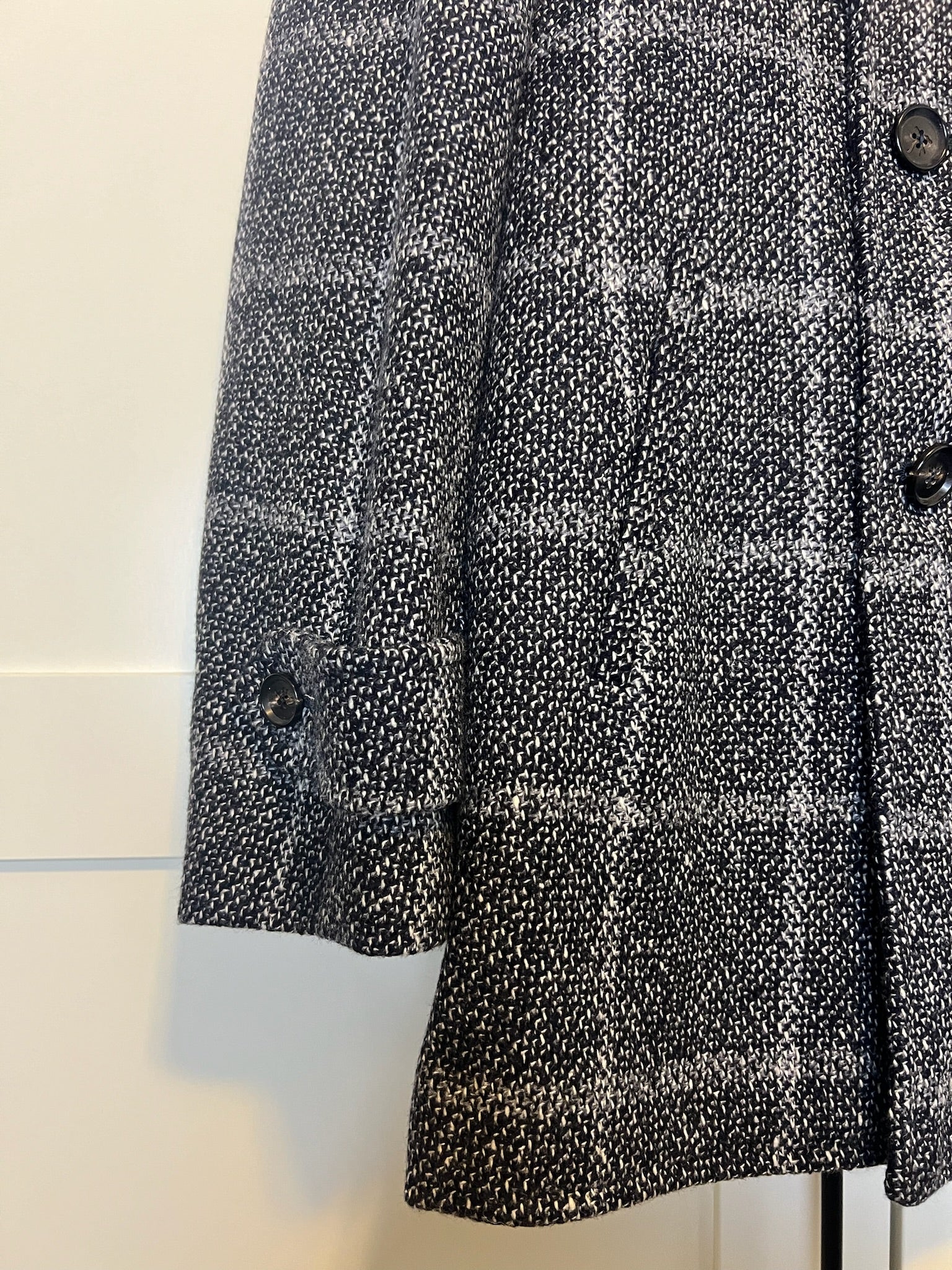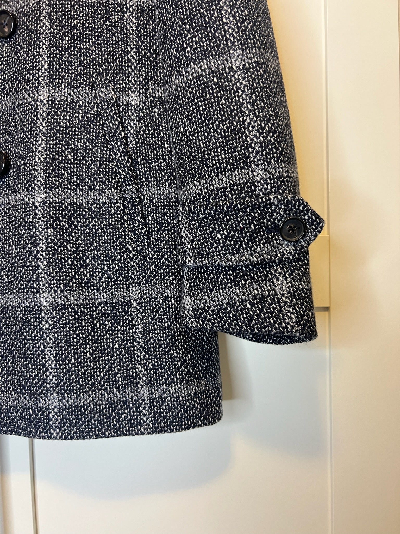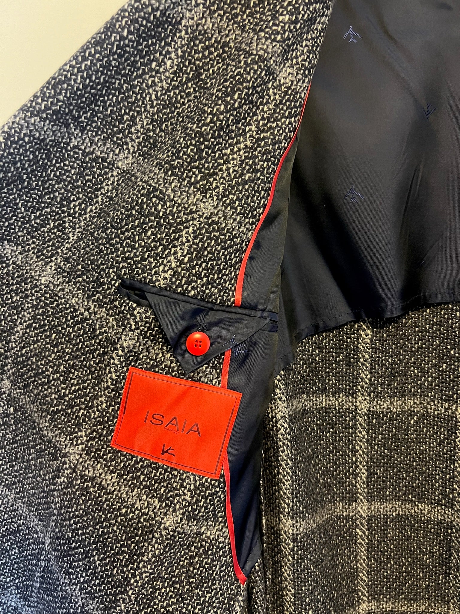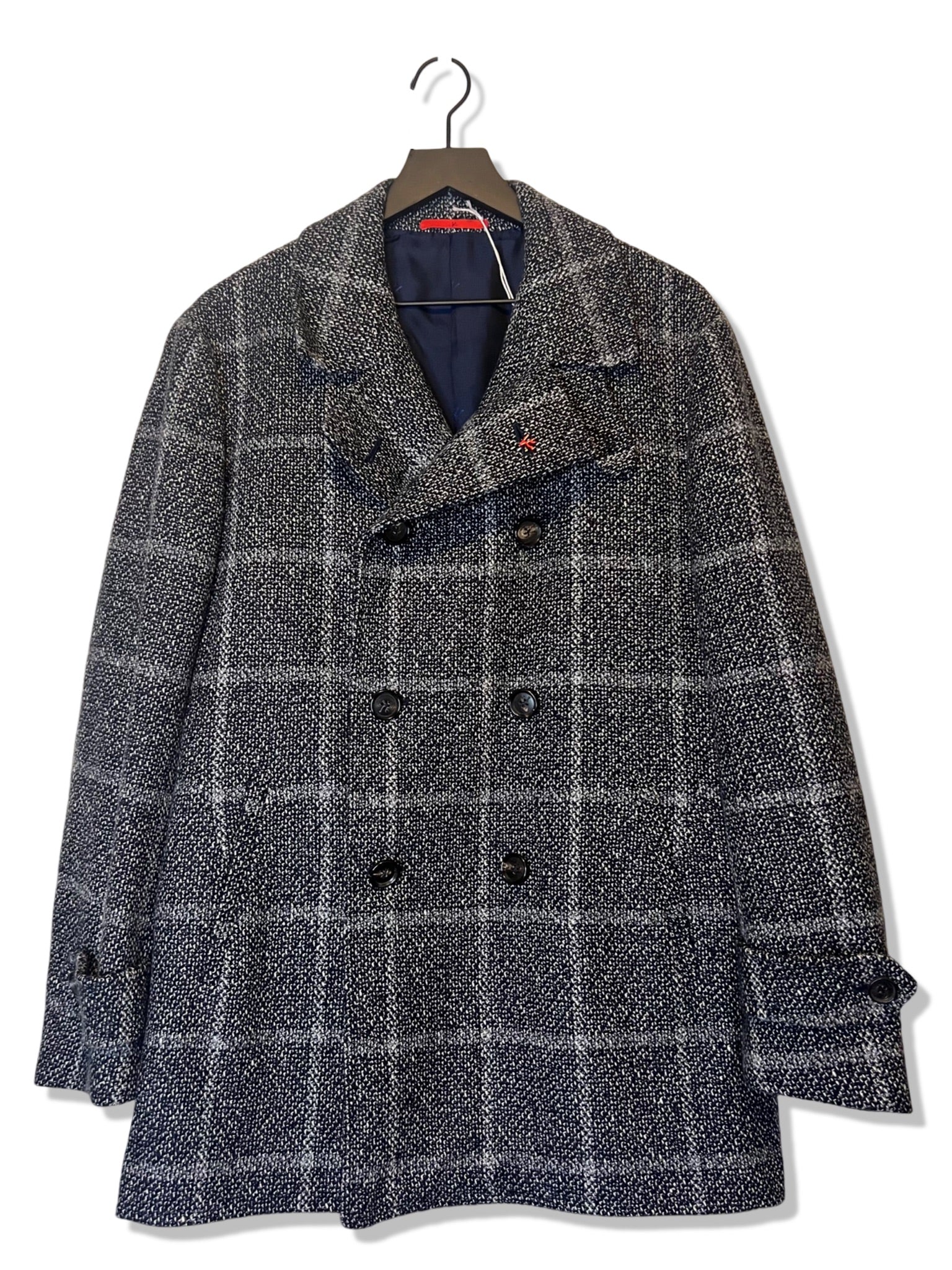 Isaia Napoli Plaid Navy Peacoat, Size 54R