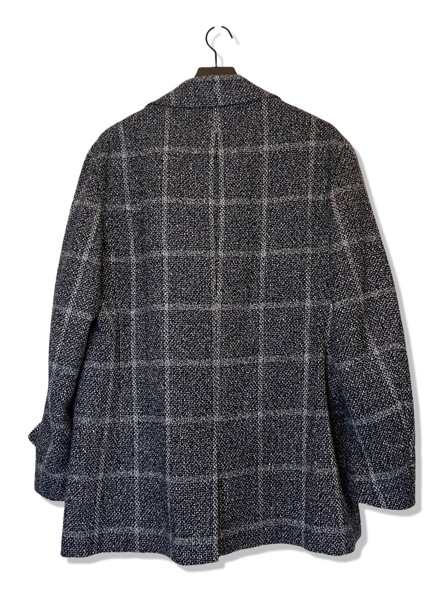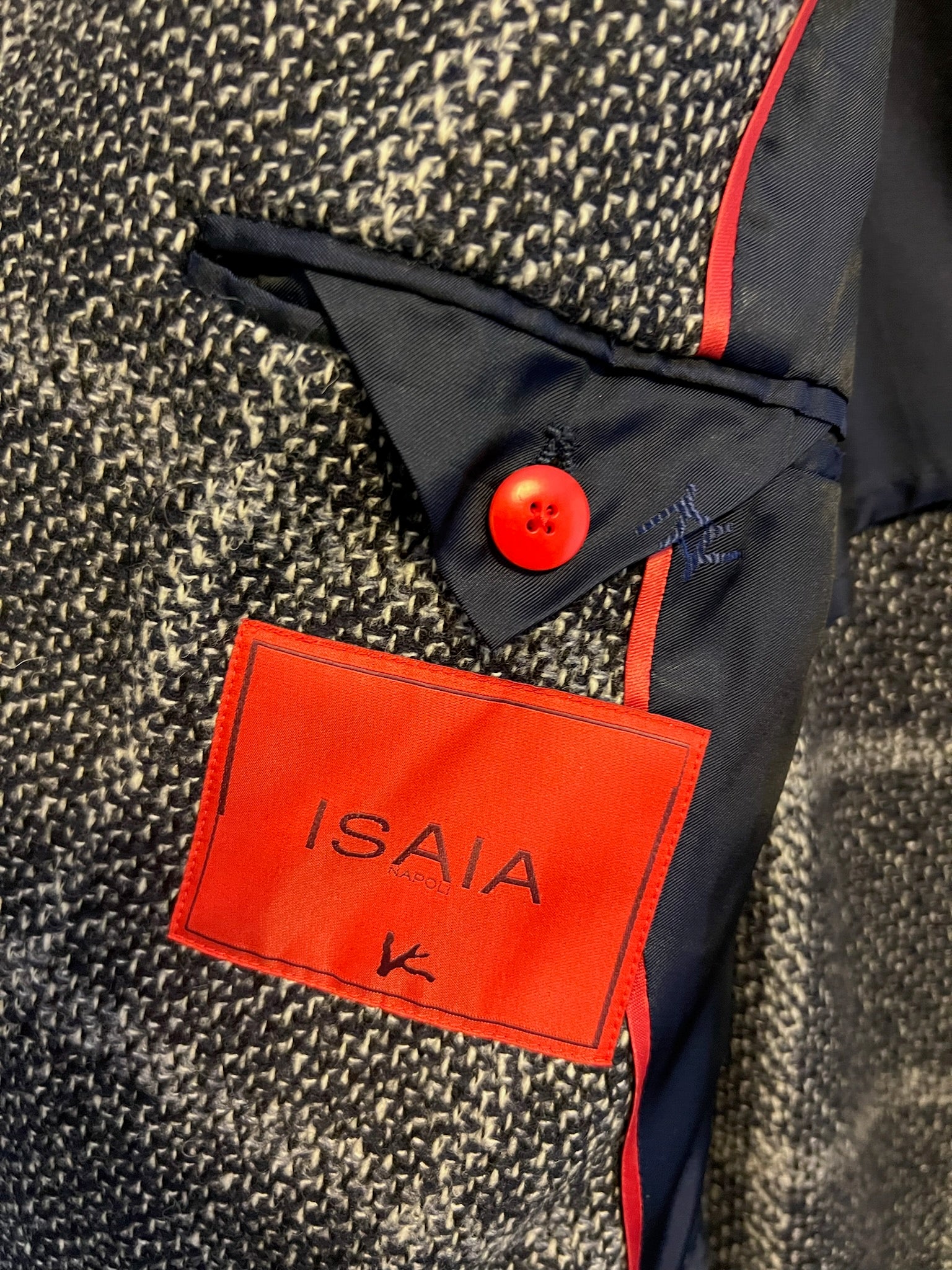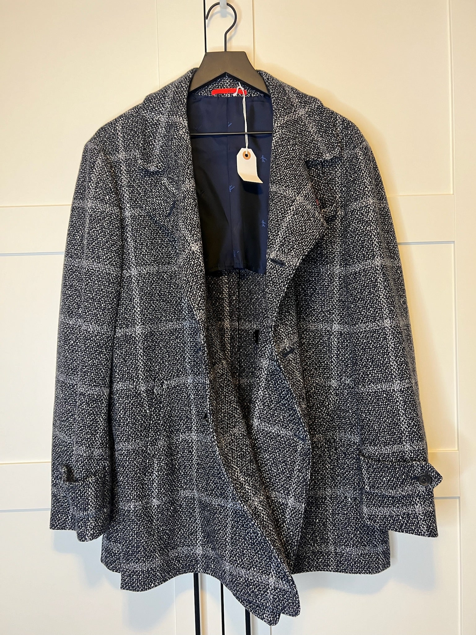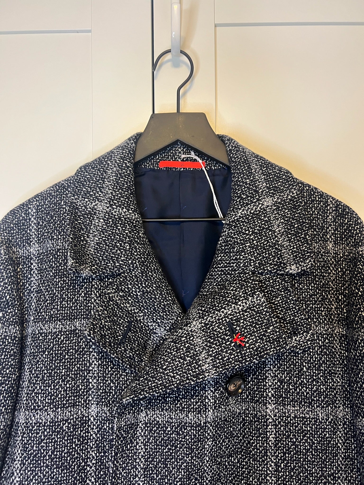 Isaia Napoli Plaid Navy Coat, Size 54R