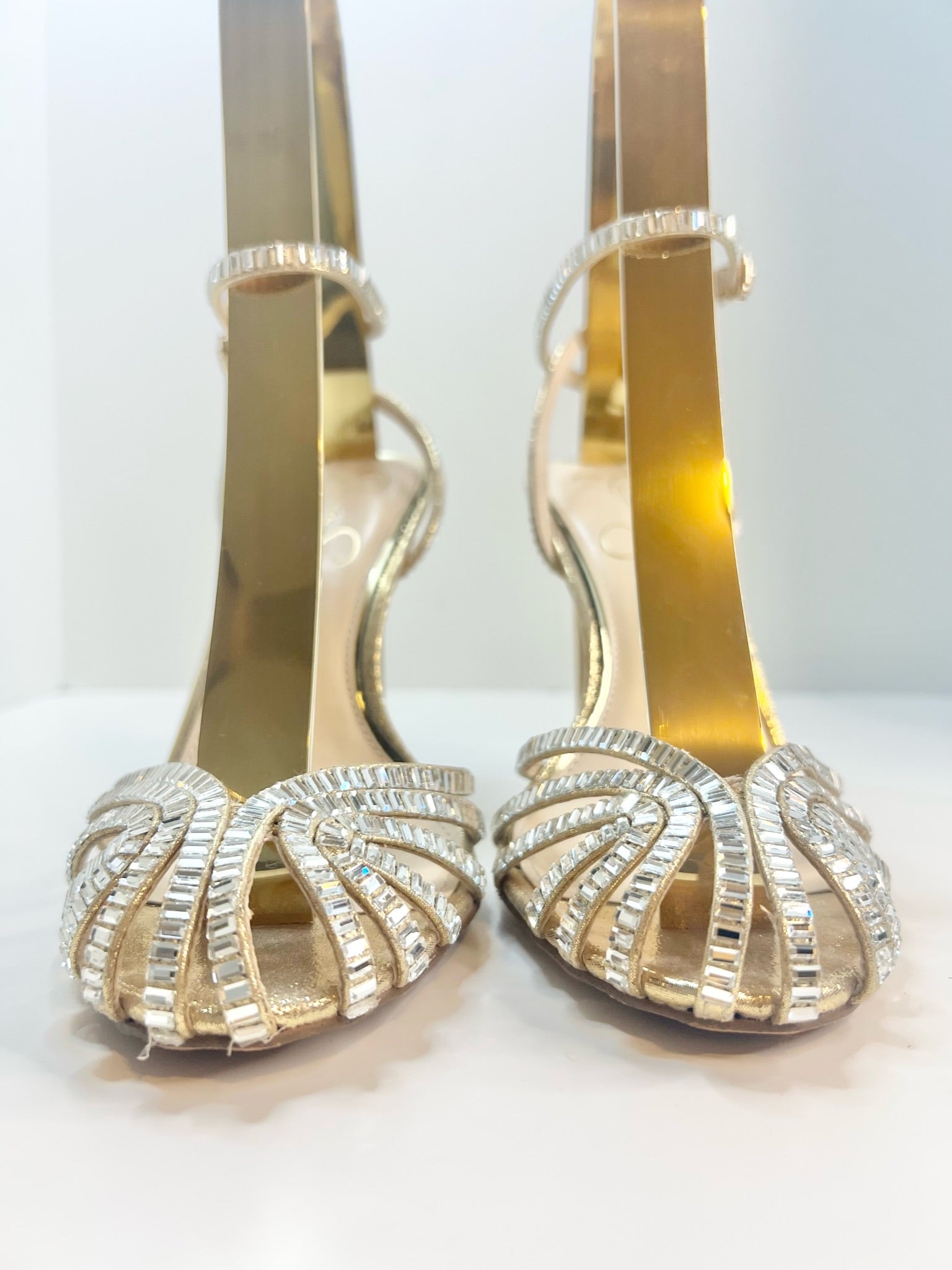 - Matte gold satin with crystals
