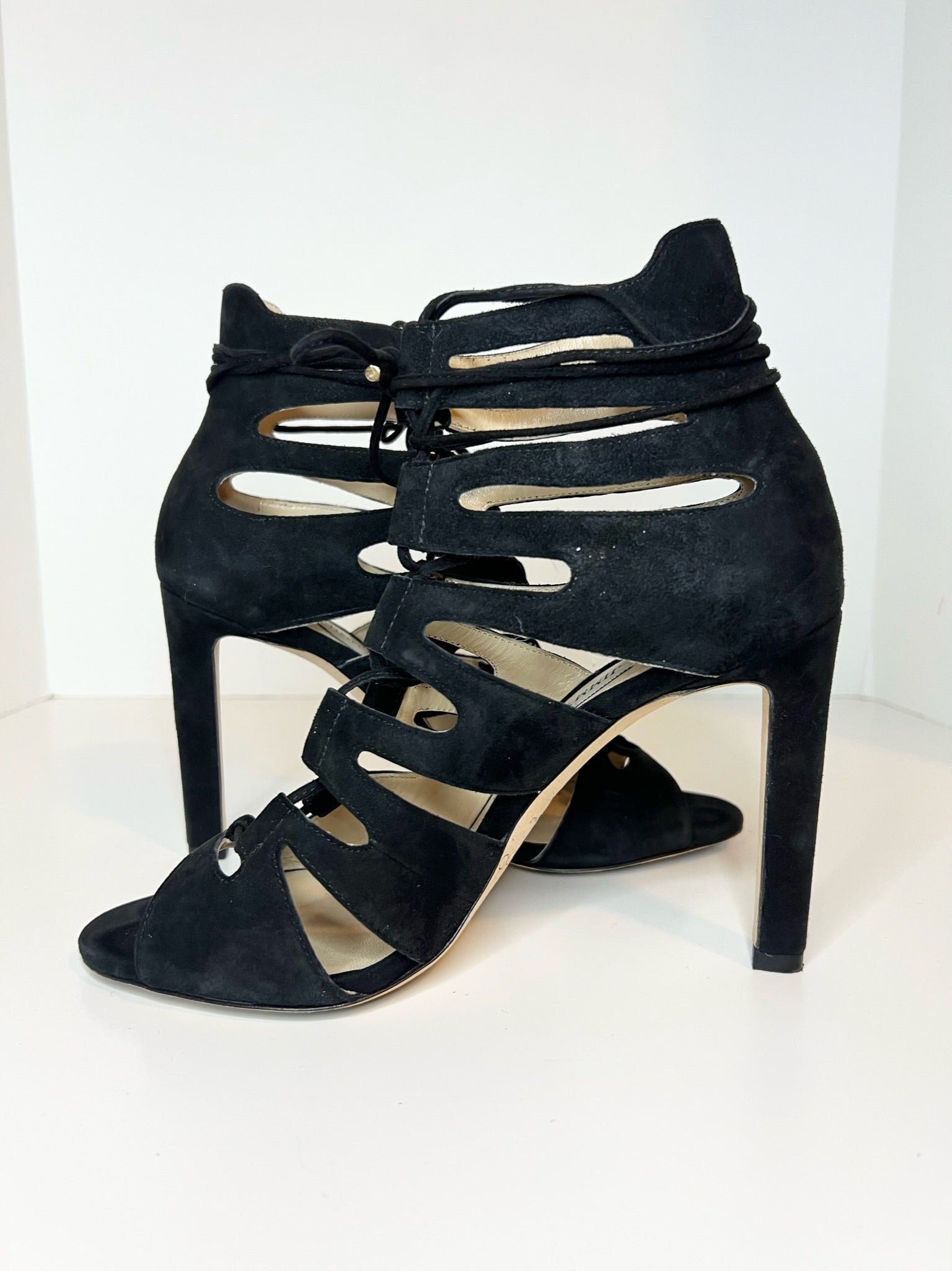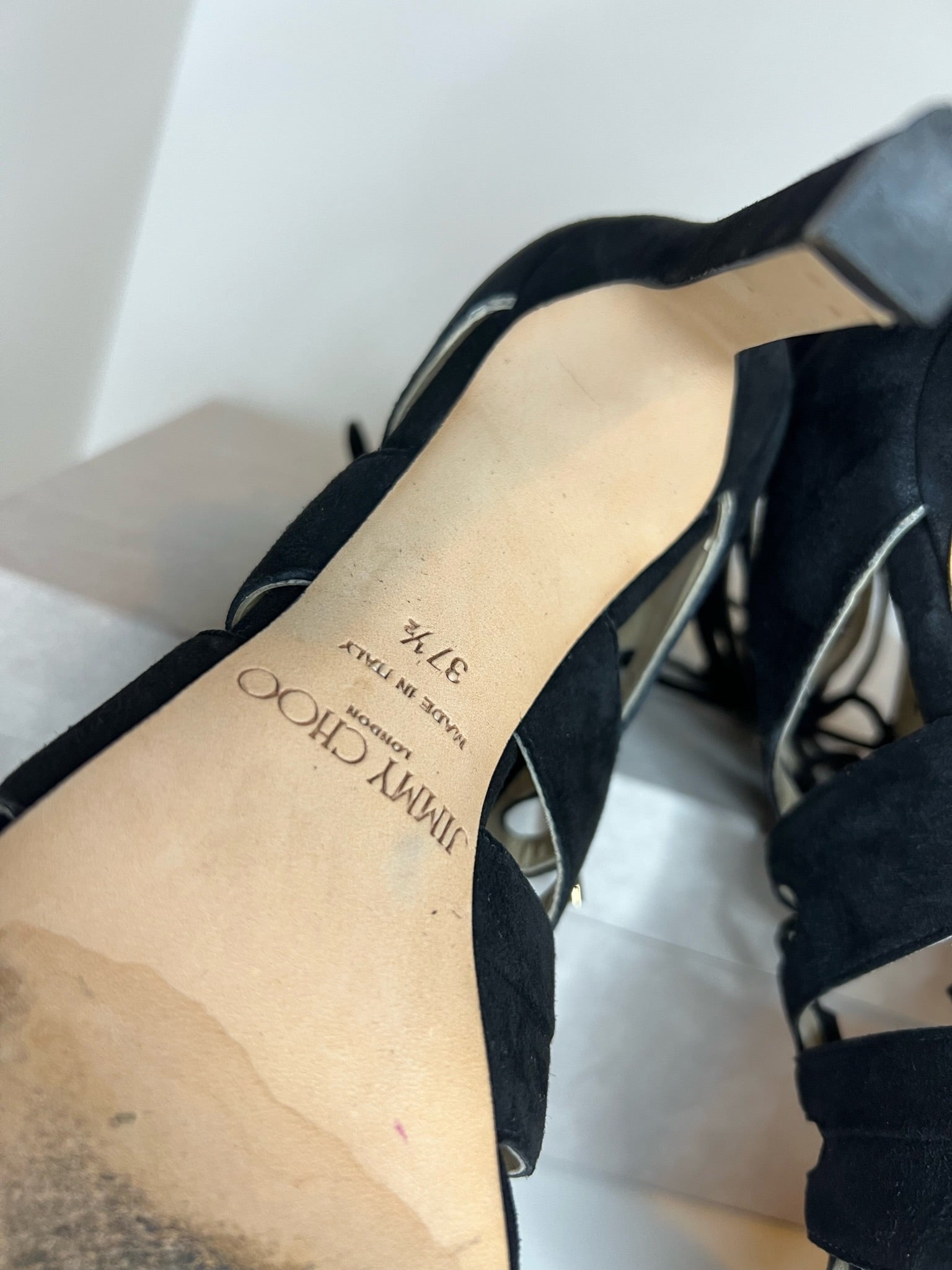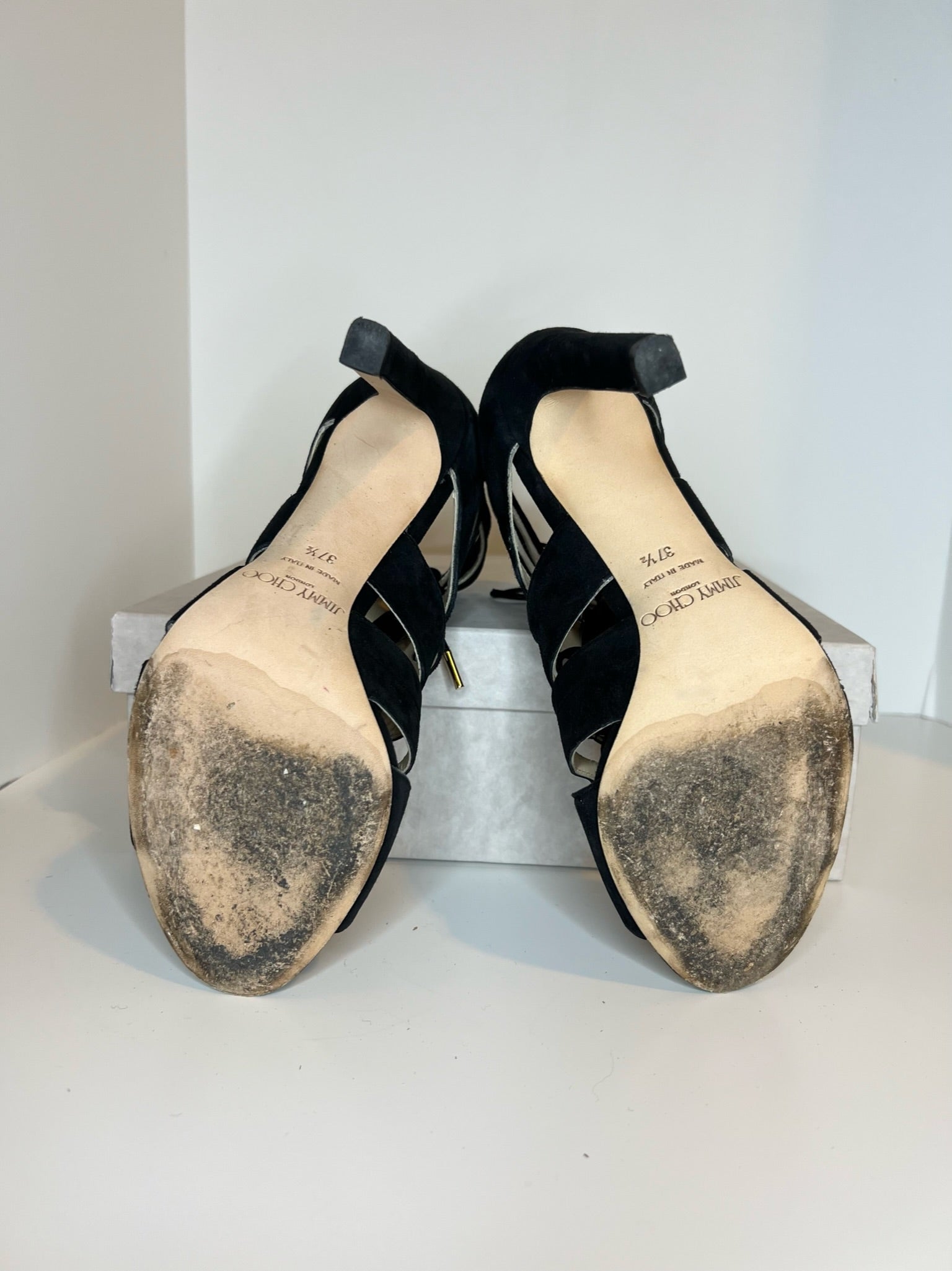 Jimmy Choo Black Suede Gladiator Sandals, Size 37.5