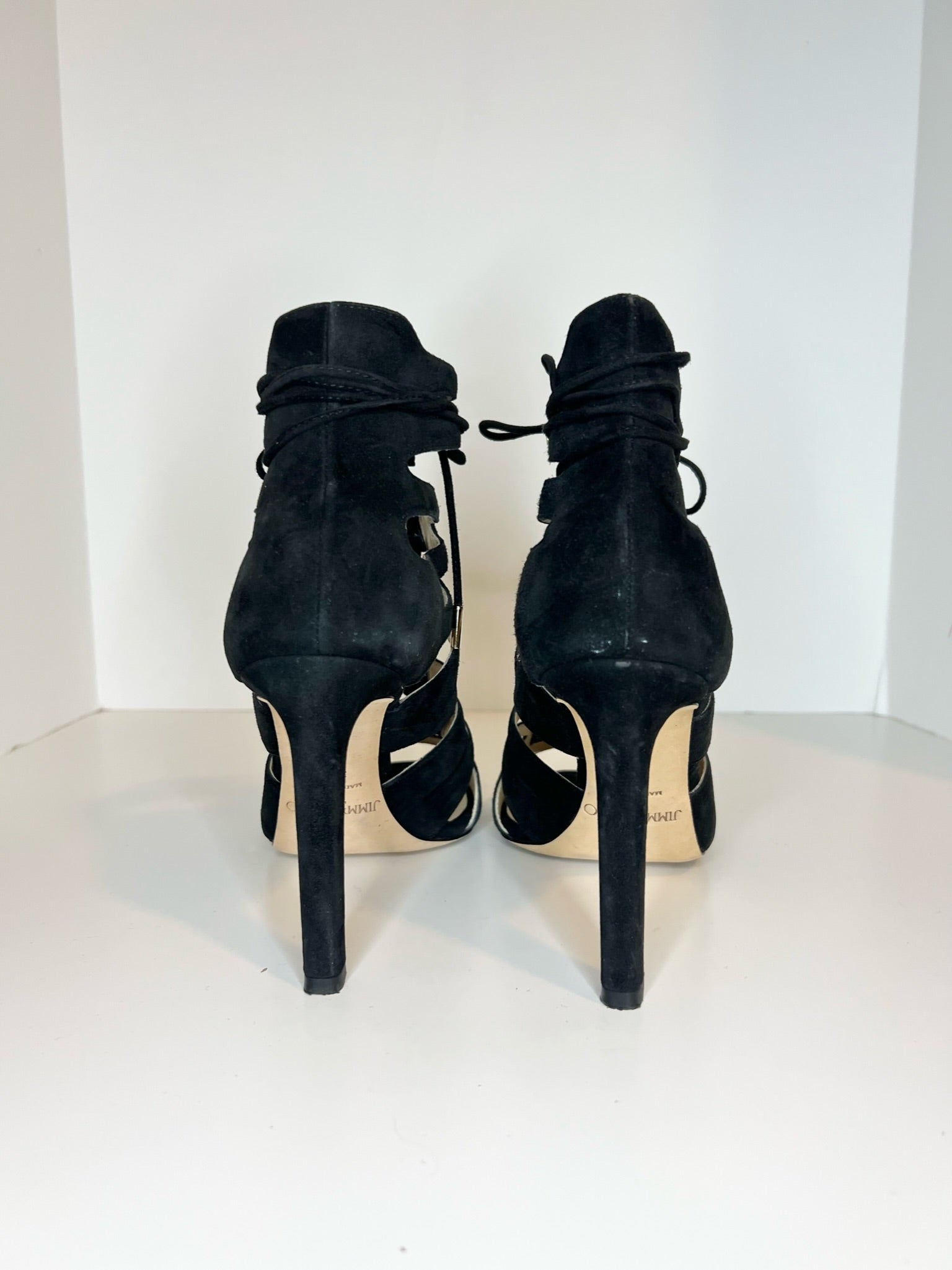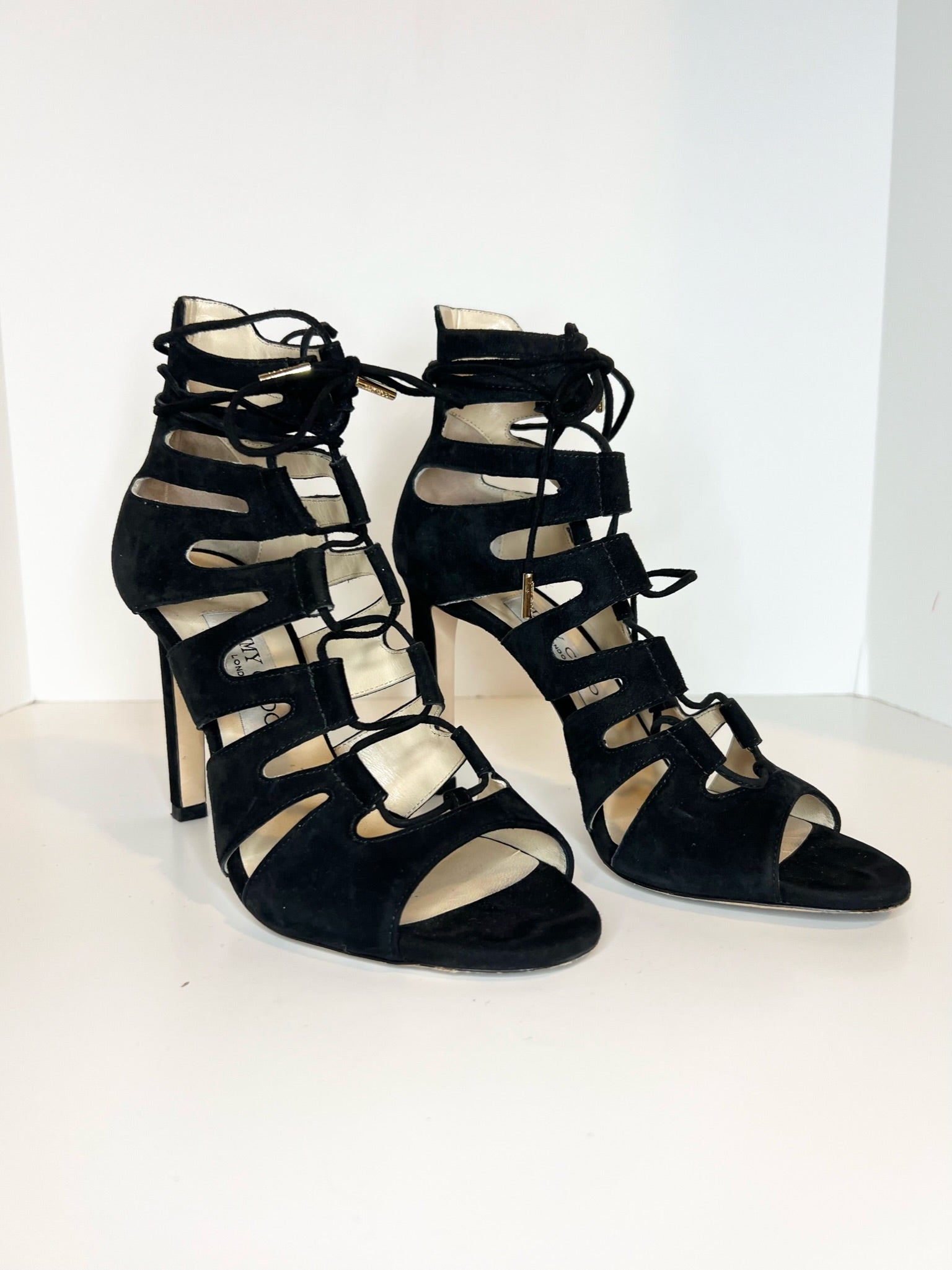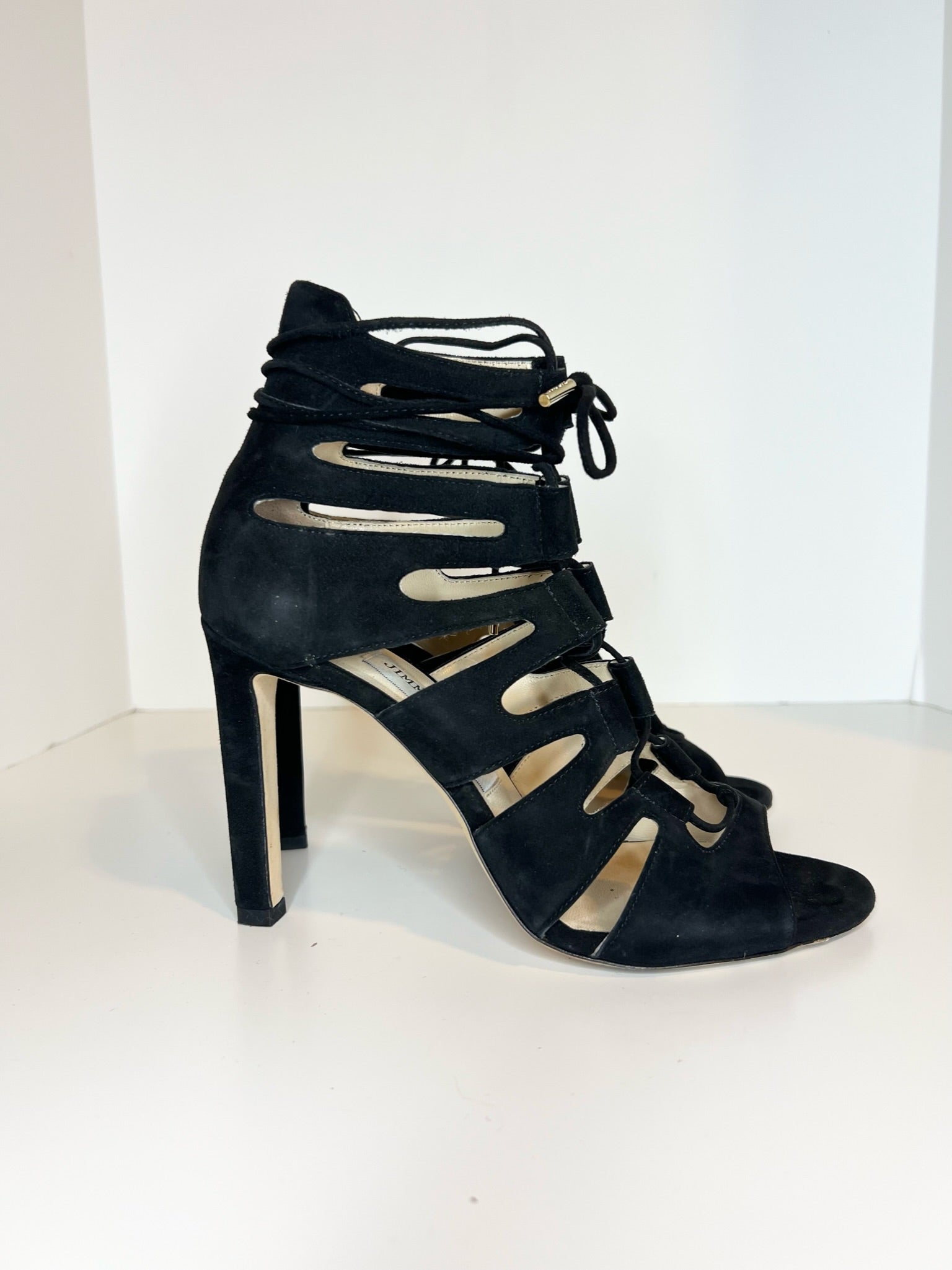 Jimmy Choo Black Suede Gladiator Sandals, Size 37.5