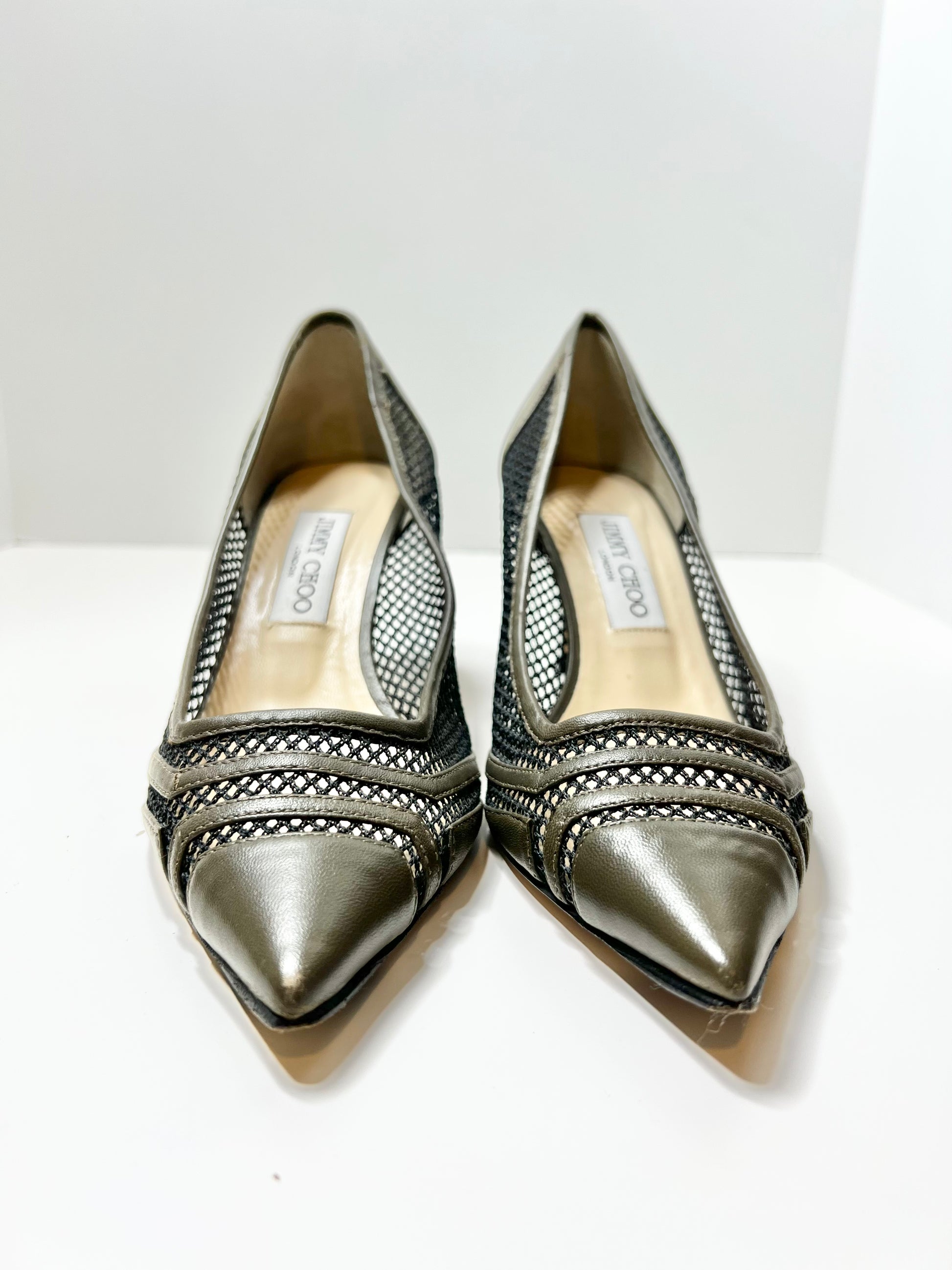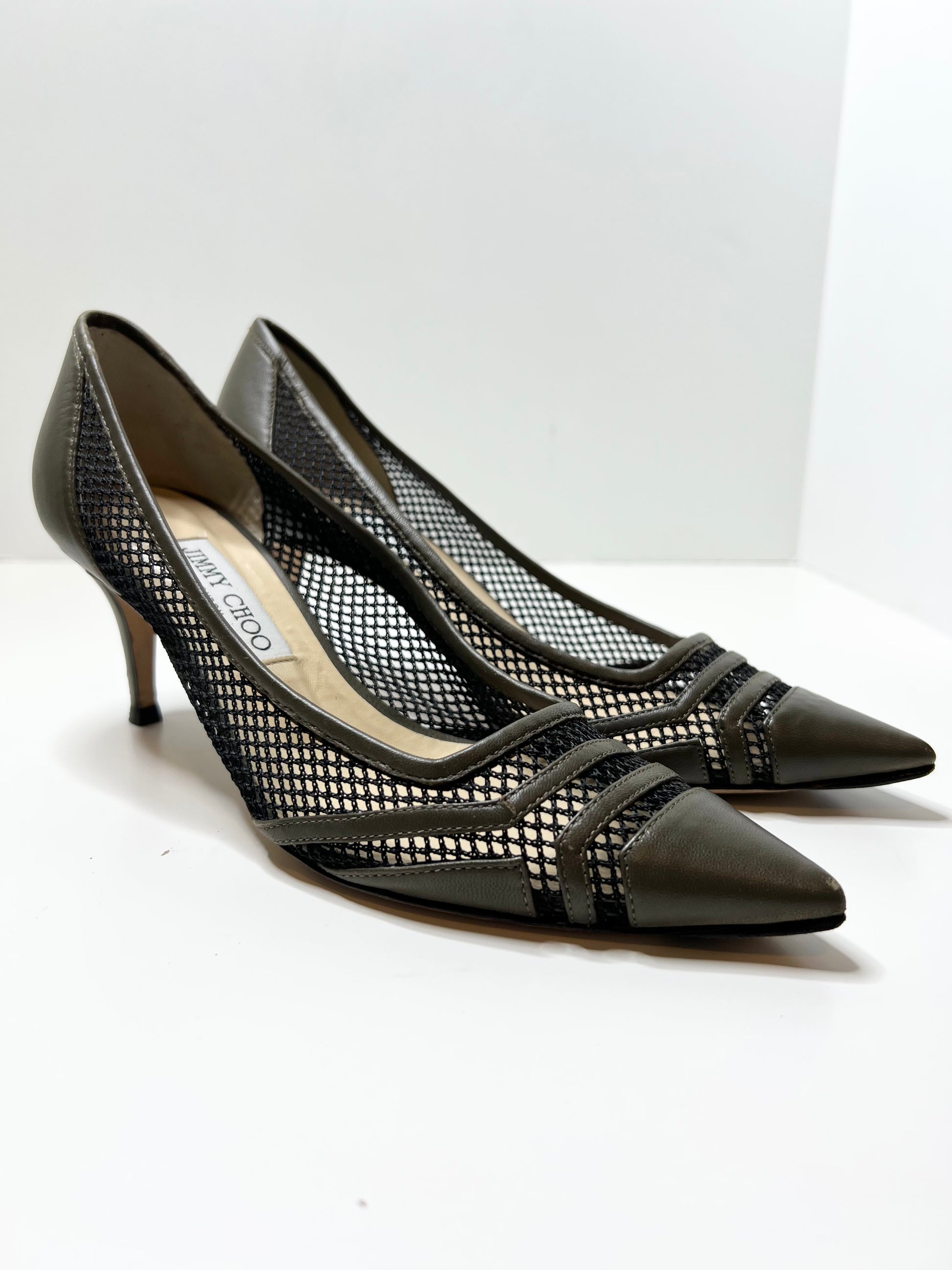 Jimmy Choo Leather Mesh Accents Pump, Size 39