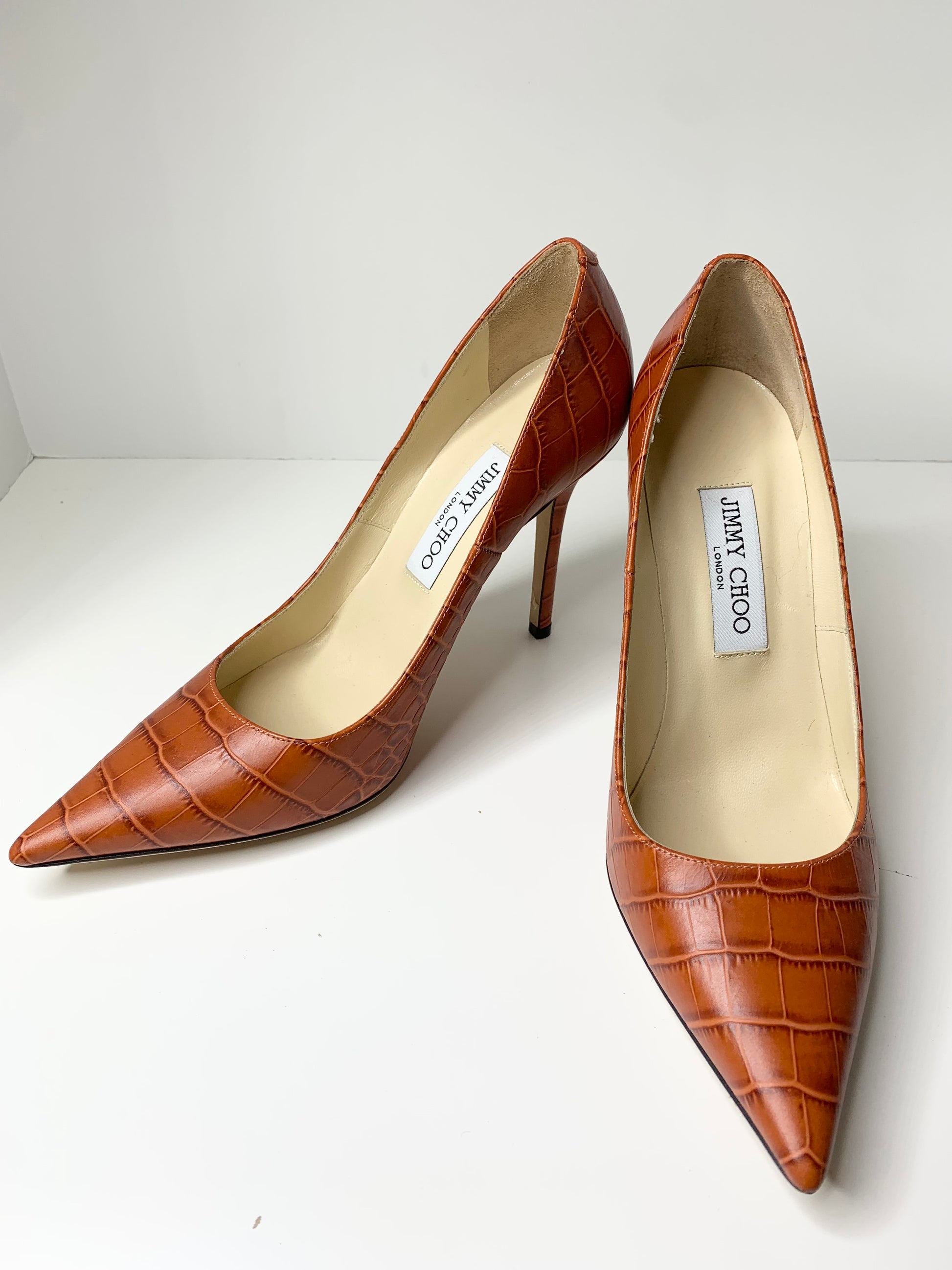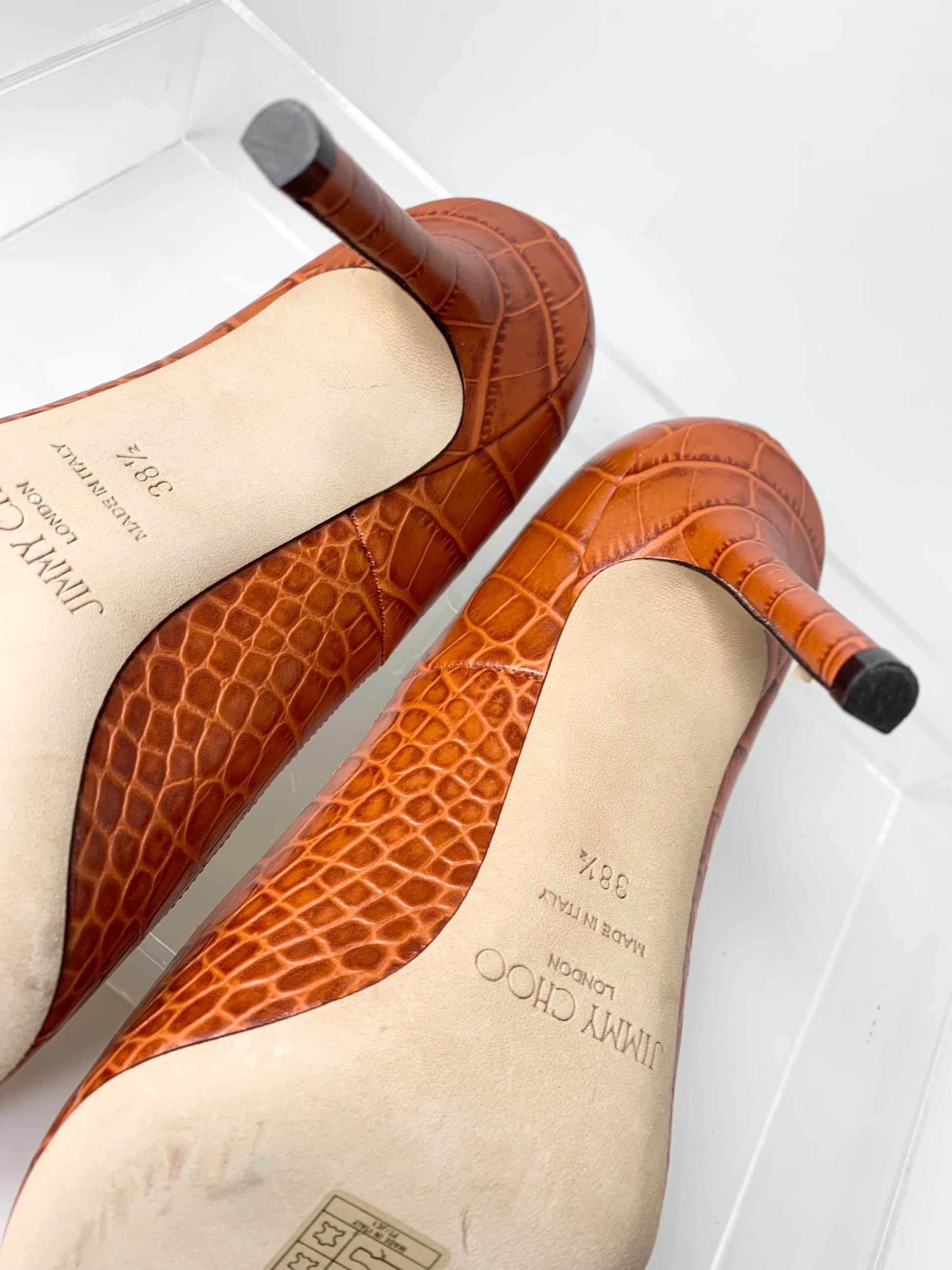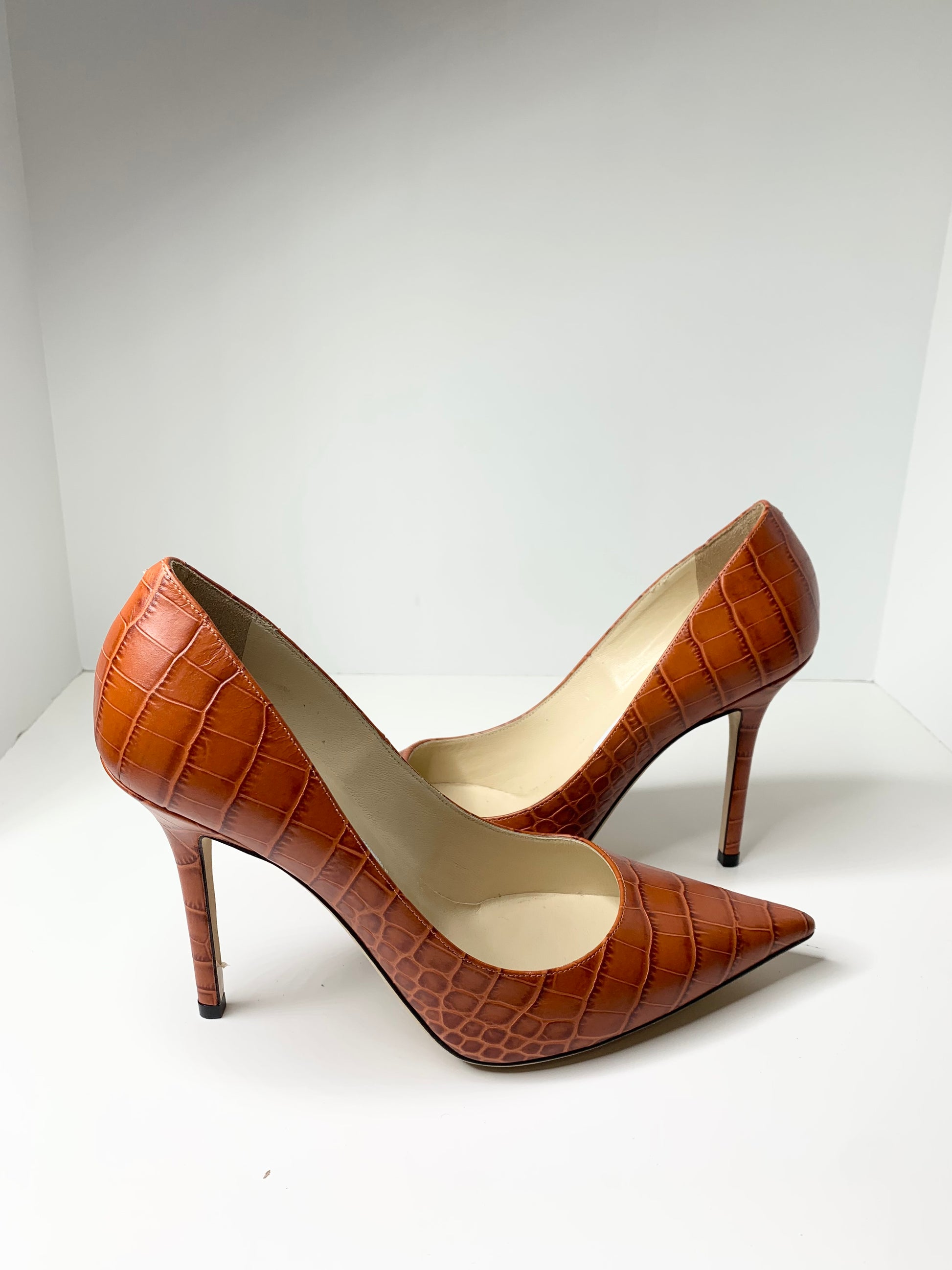 Jimmy Choo Love 100 Croc Embossed Pumps, Rust 38.5