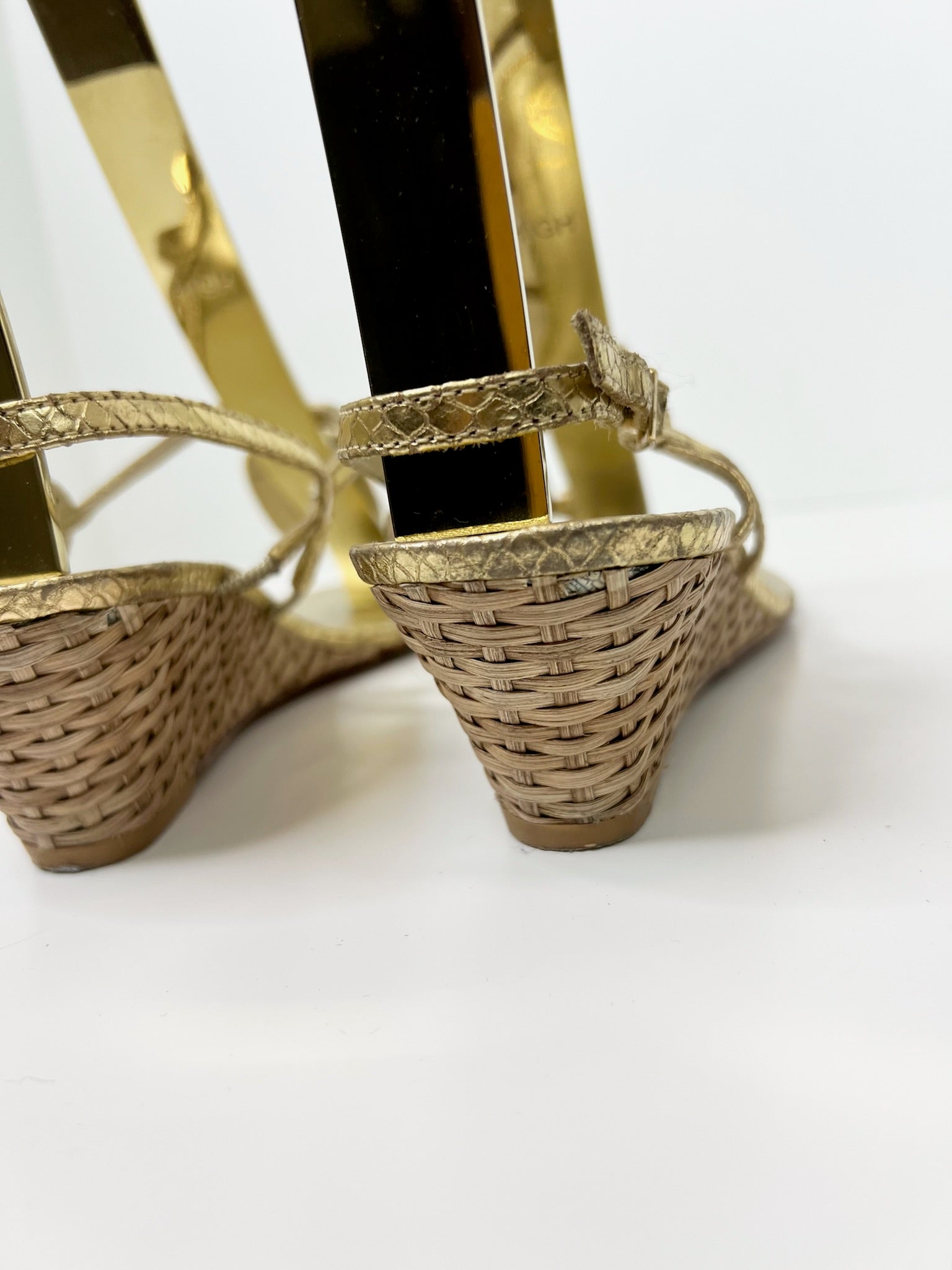 Lily Pulitzer Gold Raffia Wedge Sandal, Size 8