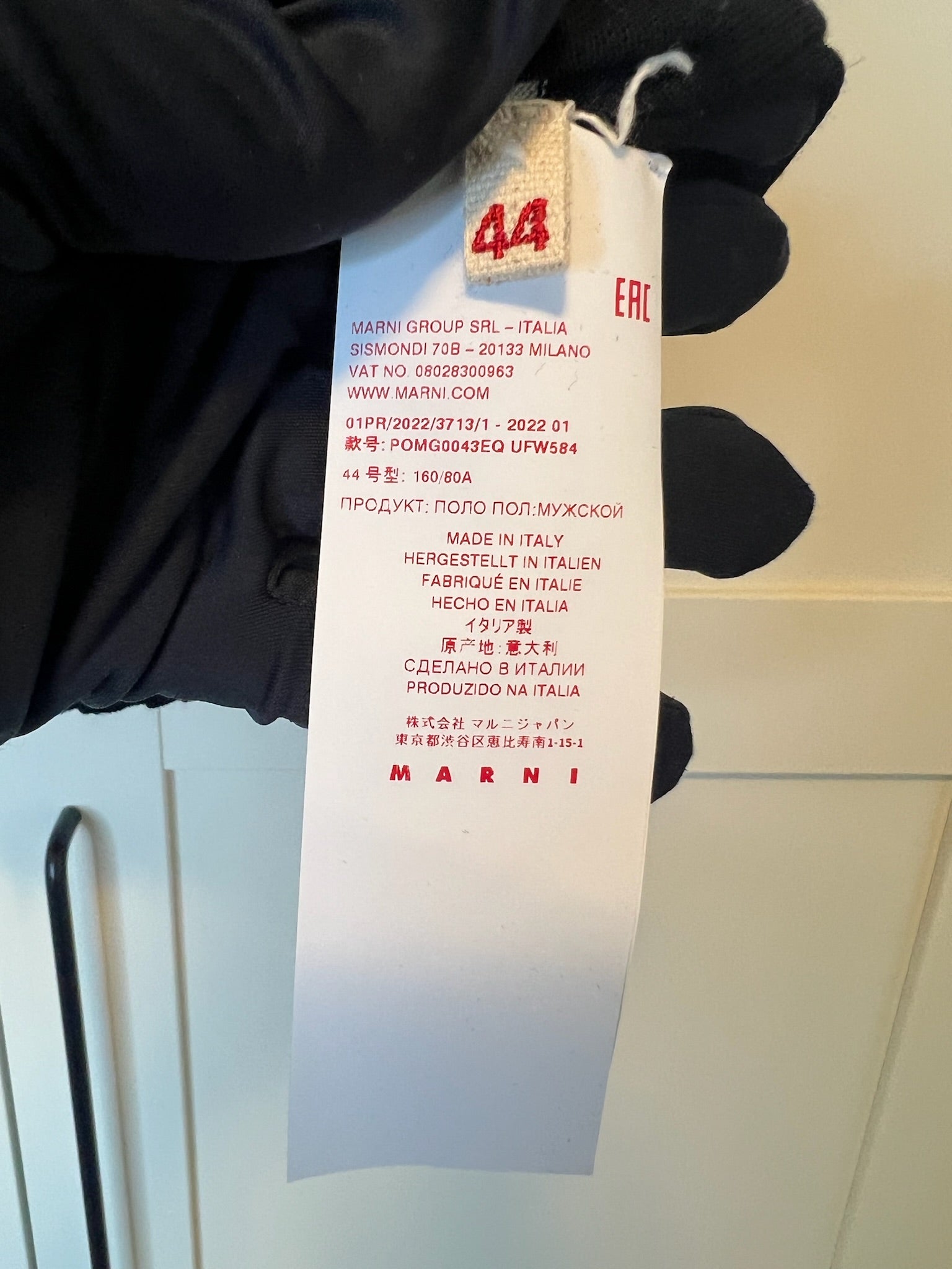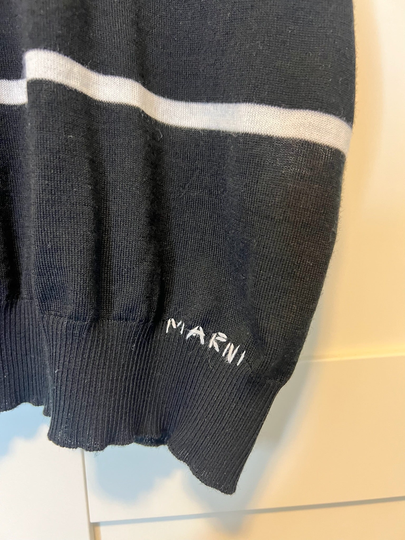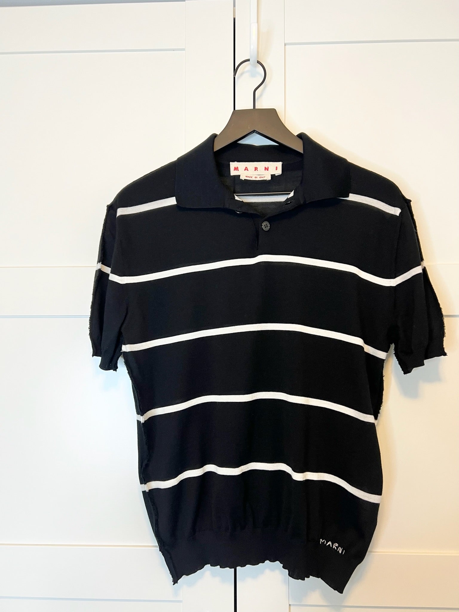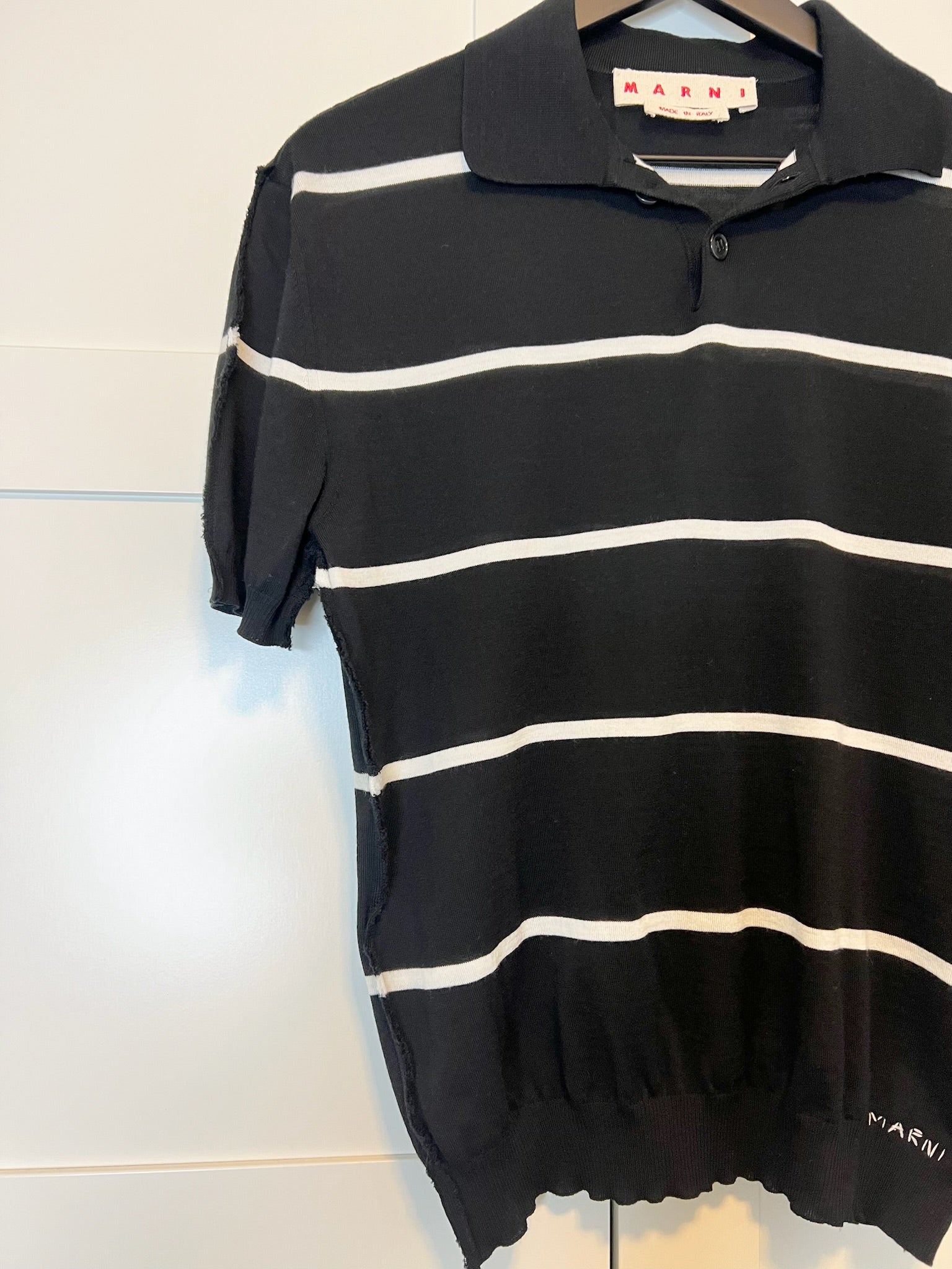 - Hand stitched Marni logo on the bottom left hem