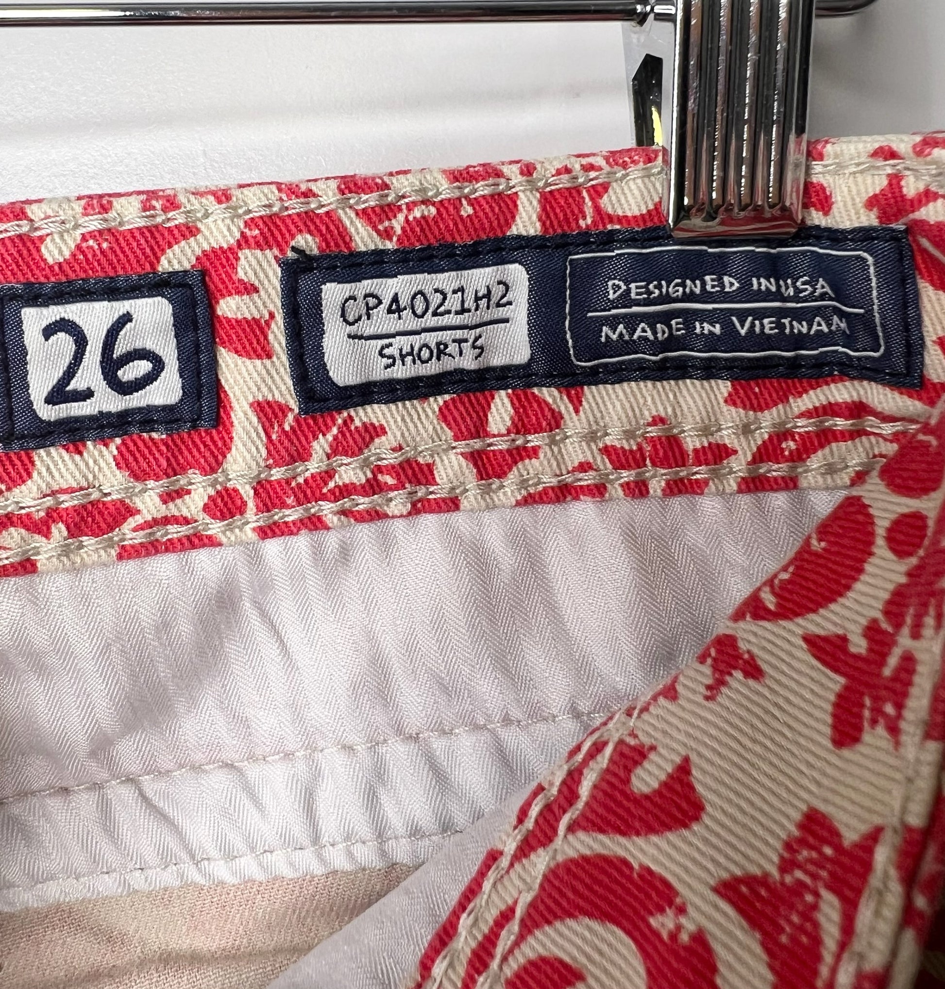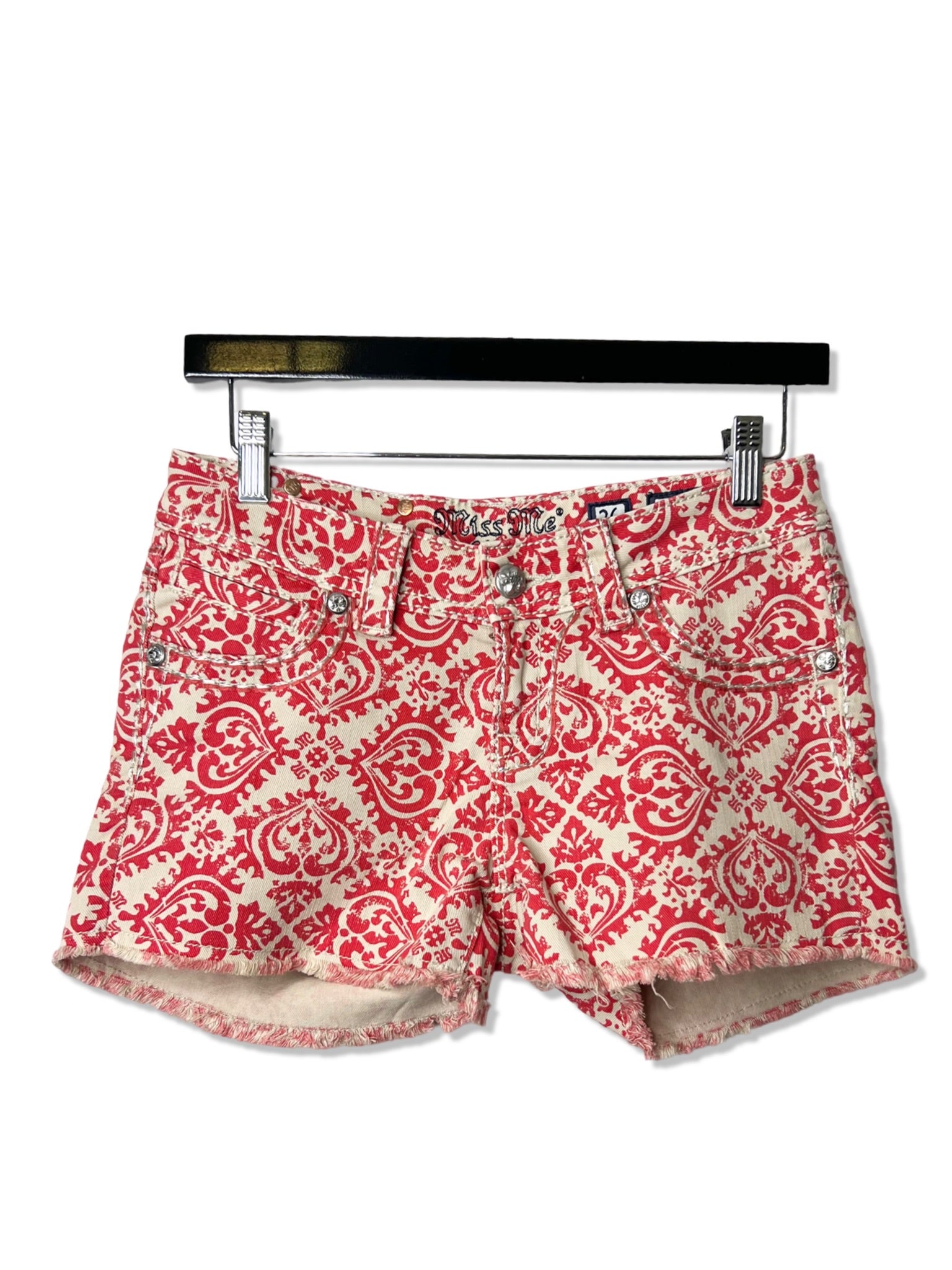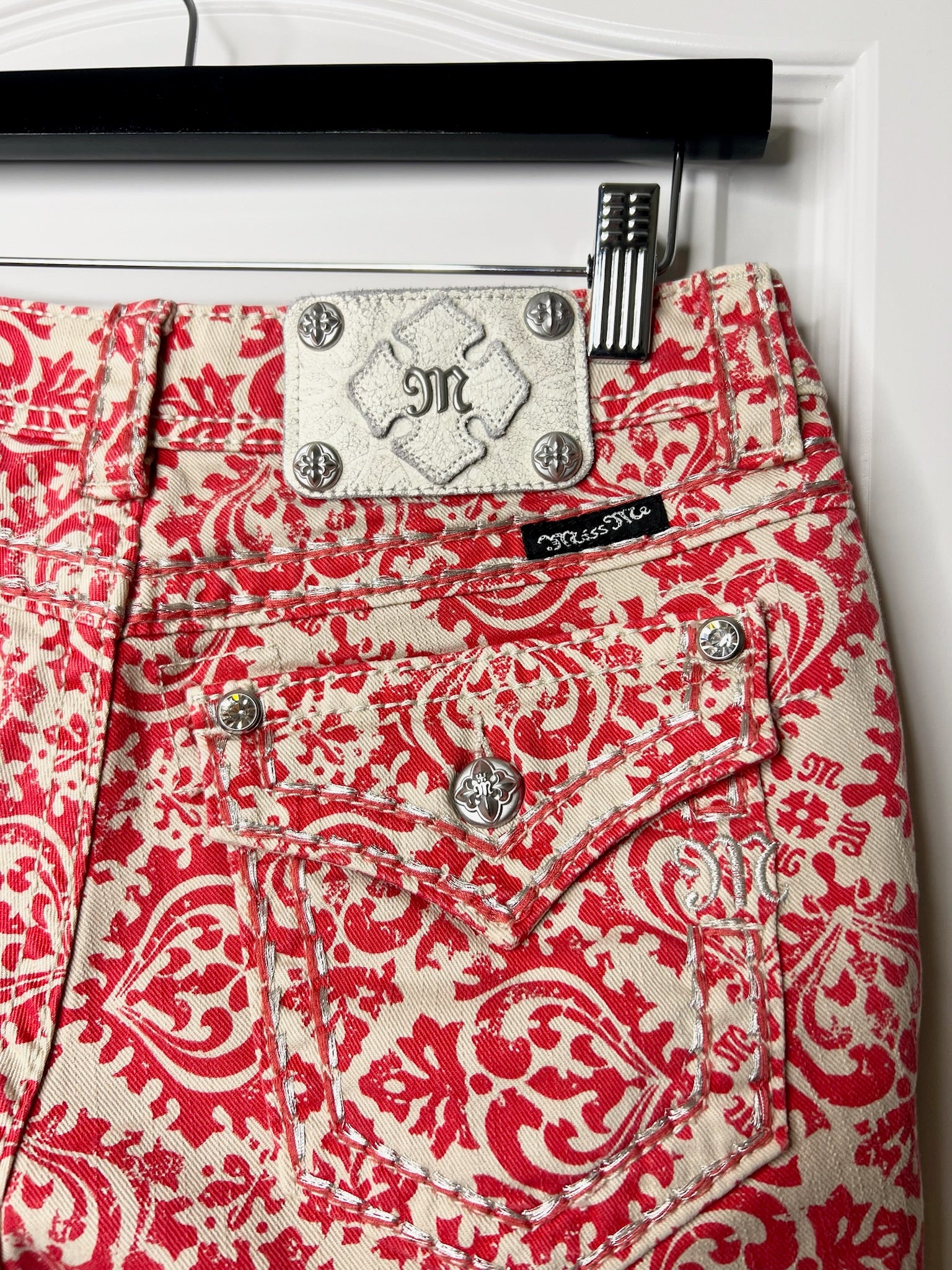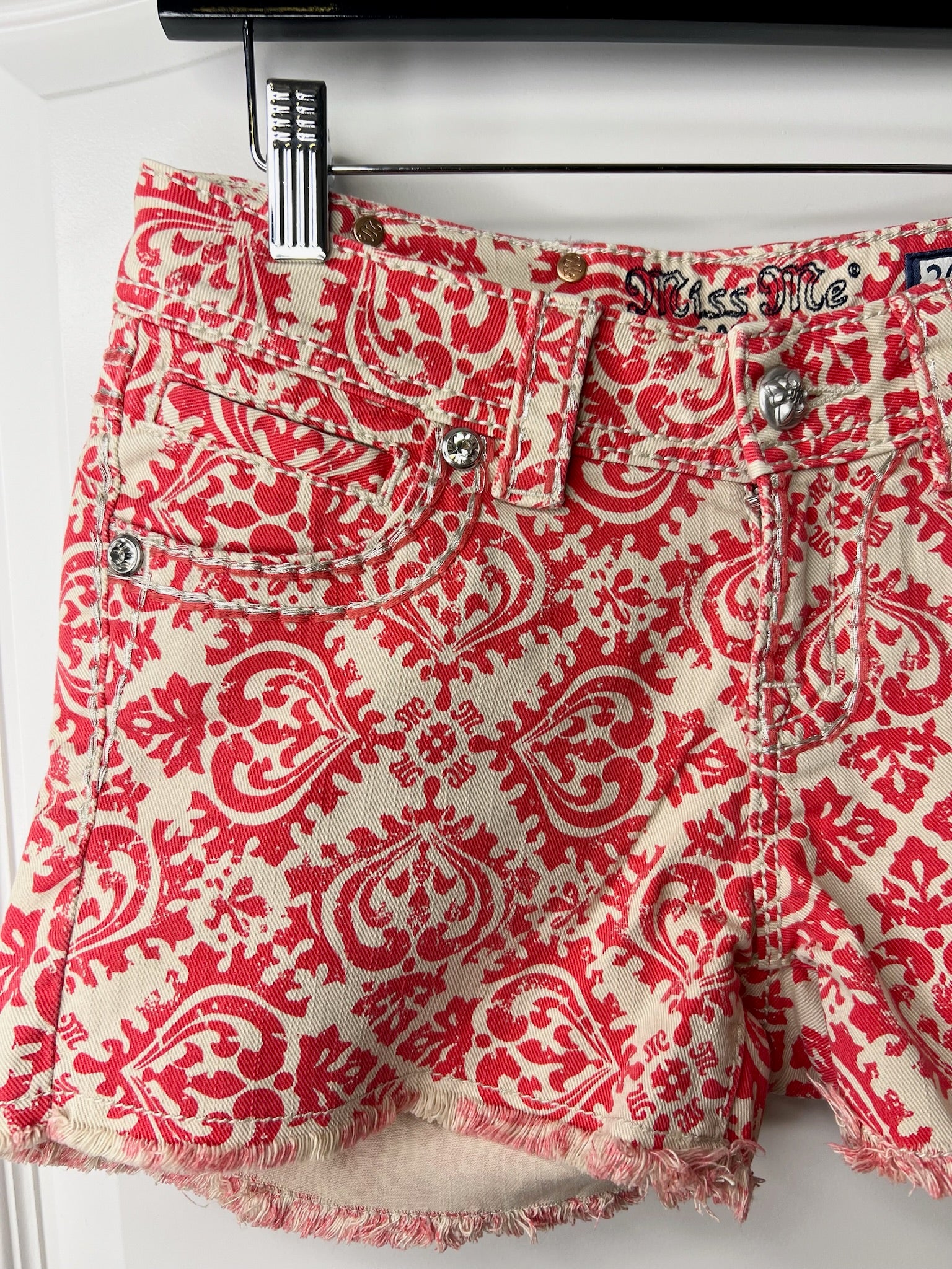 Miss Me Women's Cut Off Raw Hem Shorts Red & Tan Paisley, Size 26