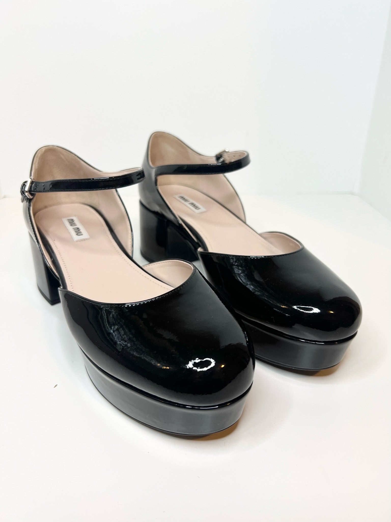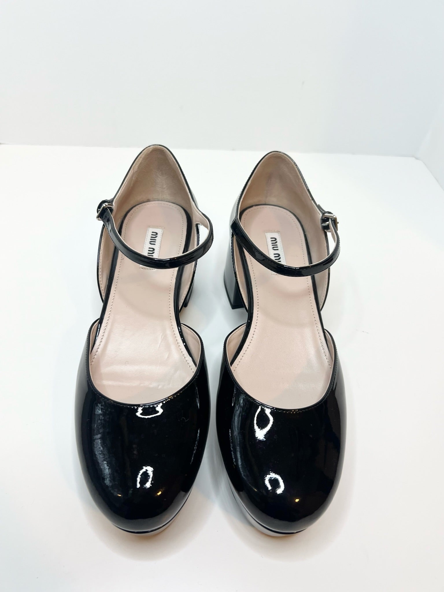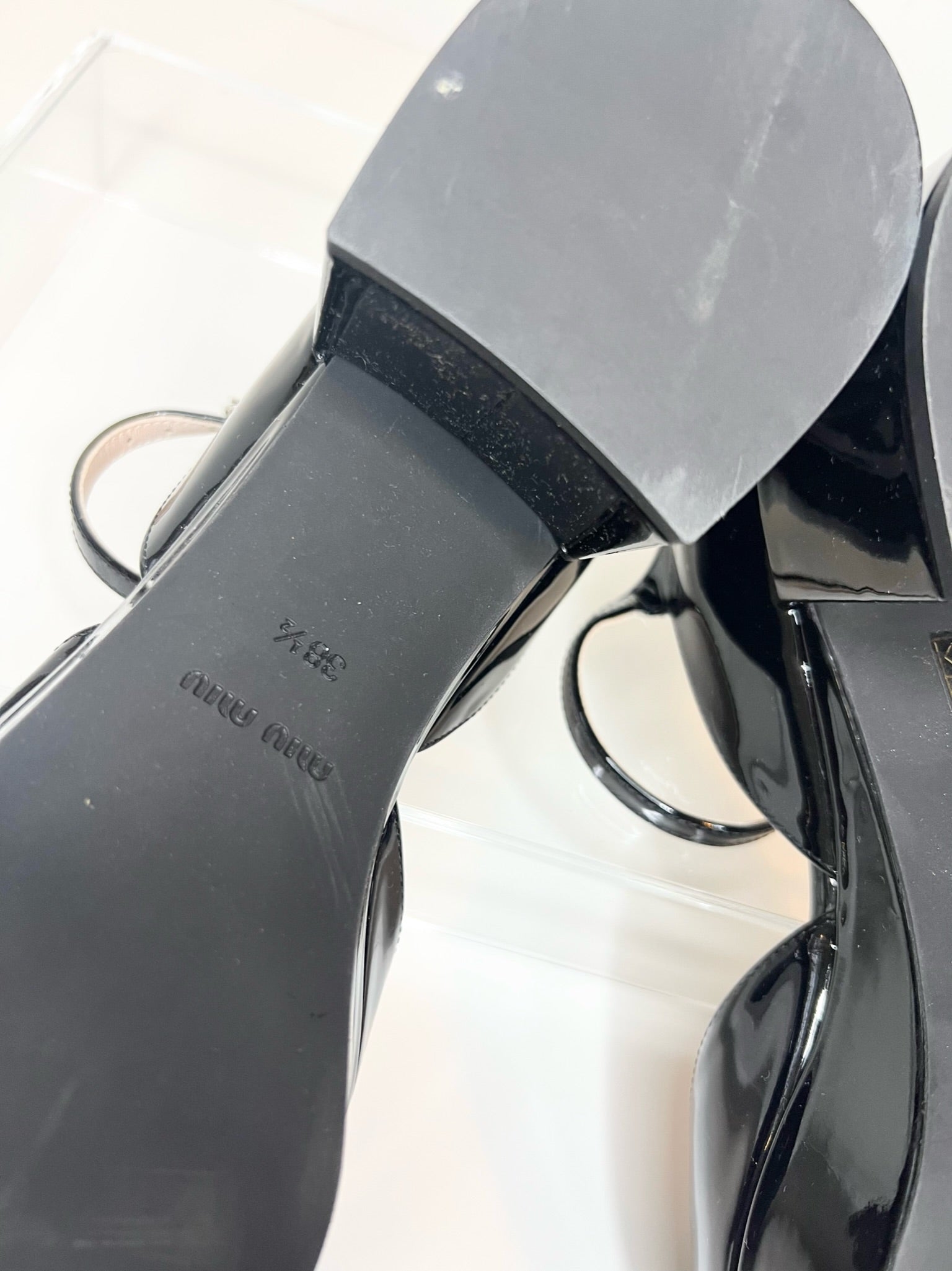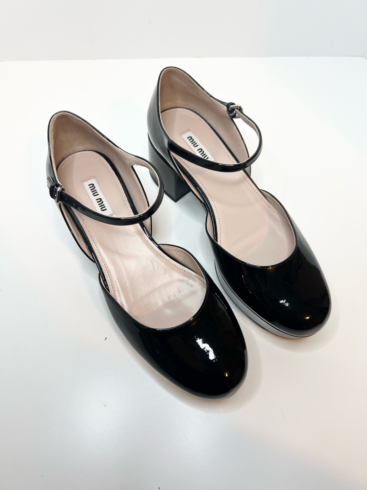 Miu Miu Black Patent Mary Janes, Size 38.5