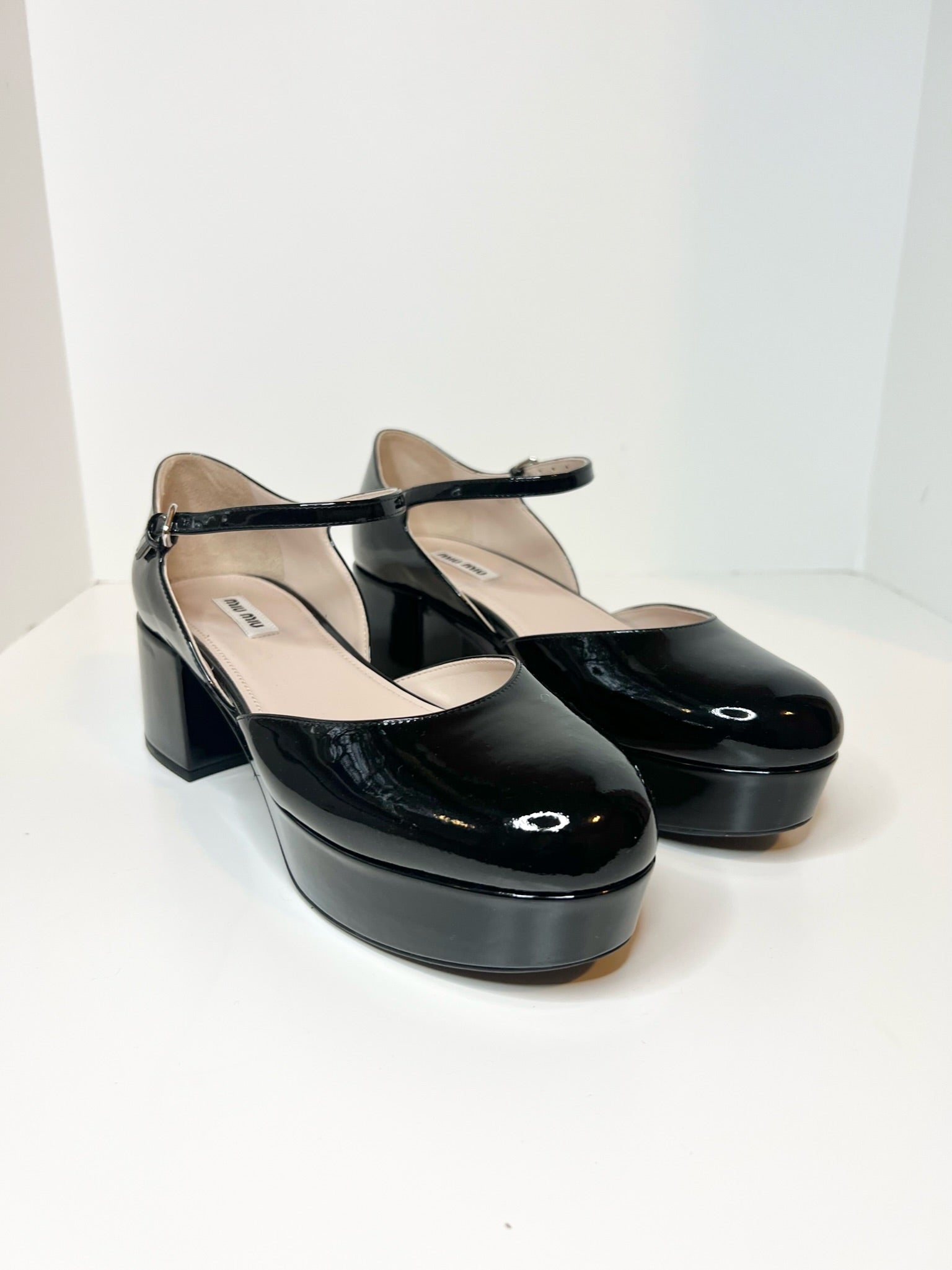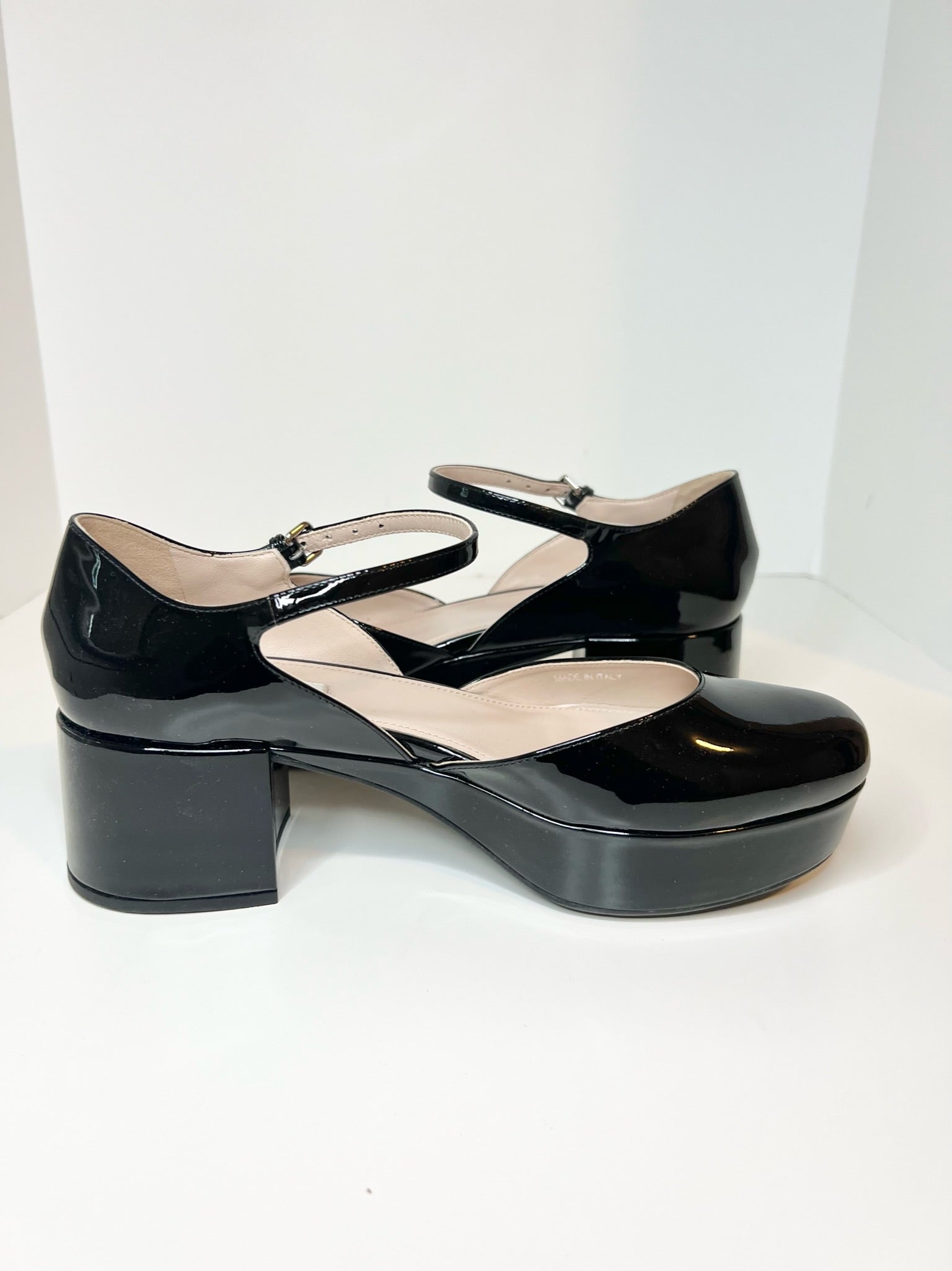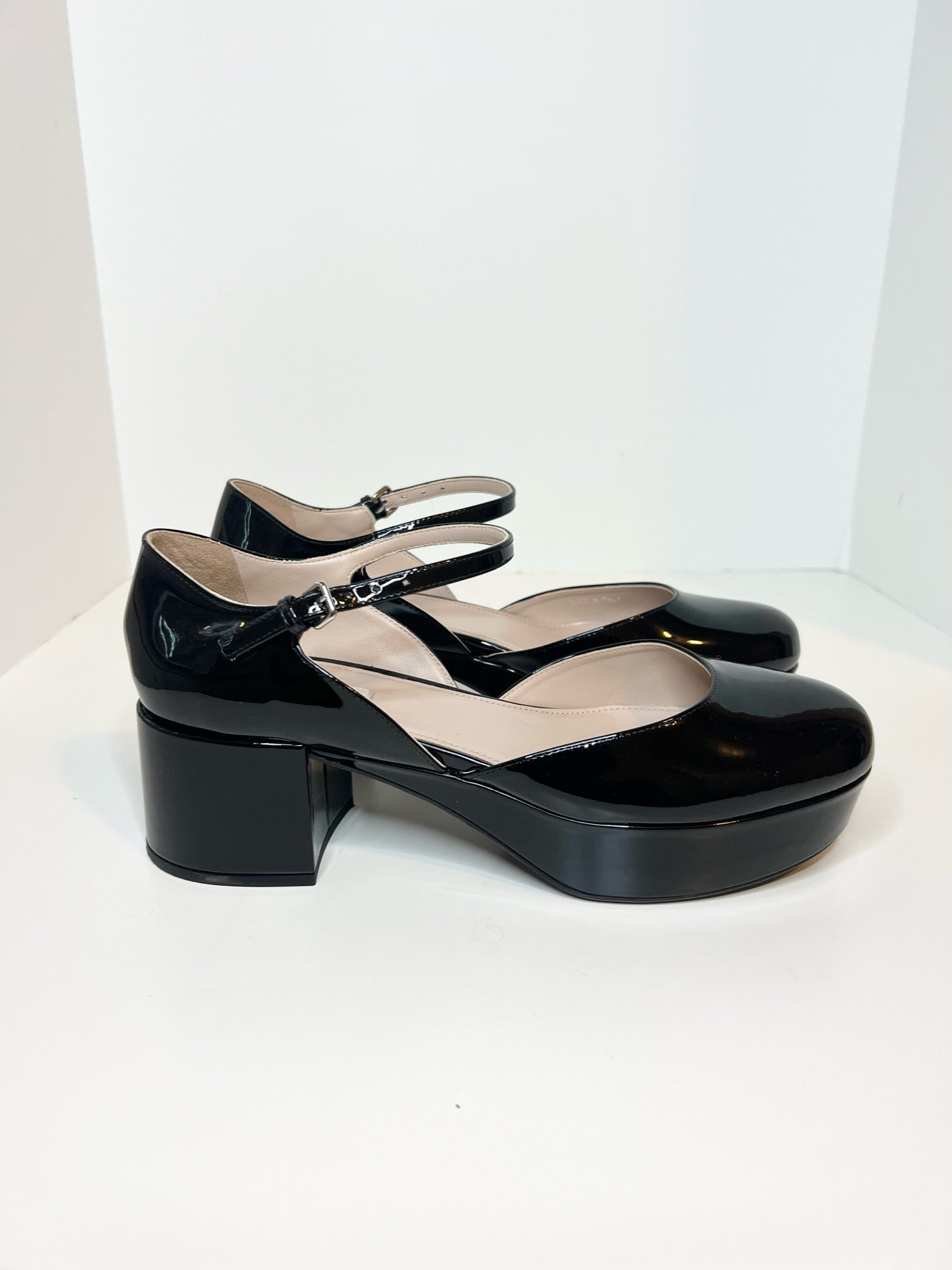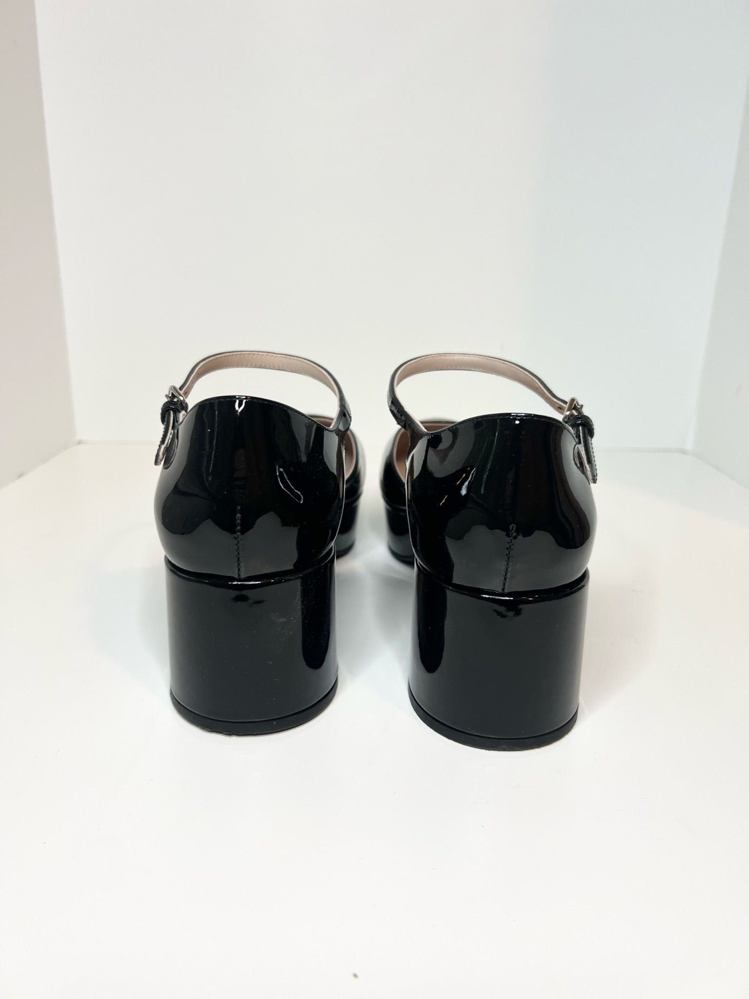 Miu Miu Black Patent Mary Janes, Size 38.5