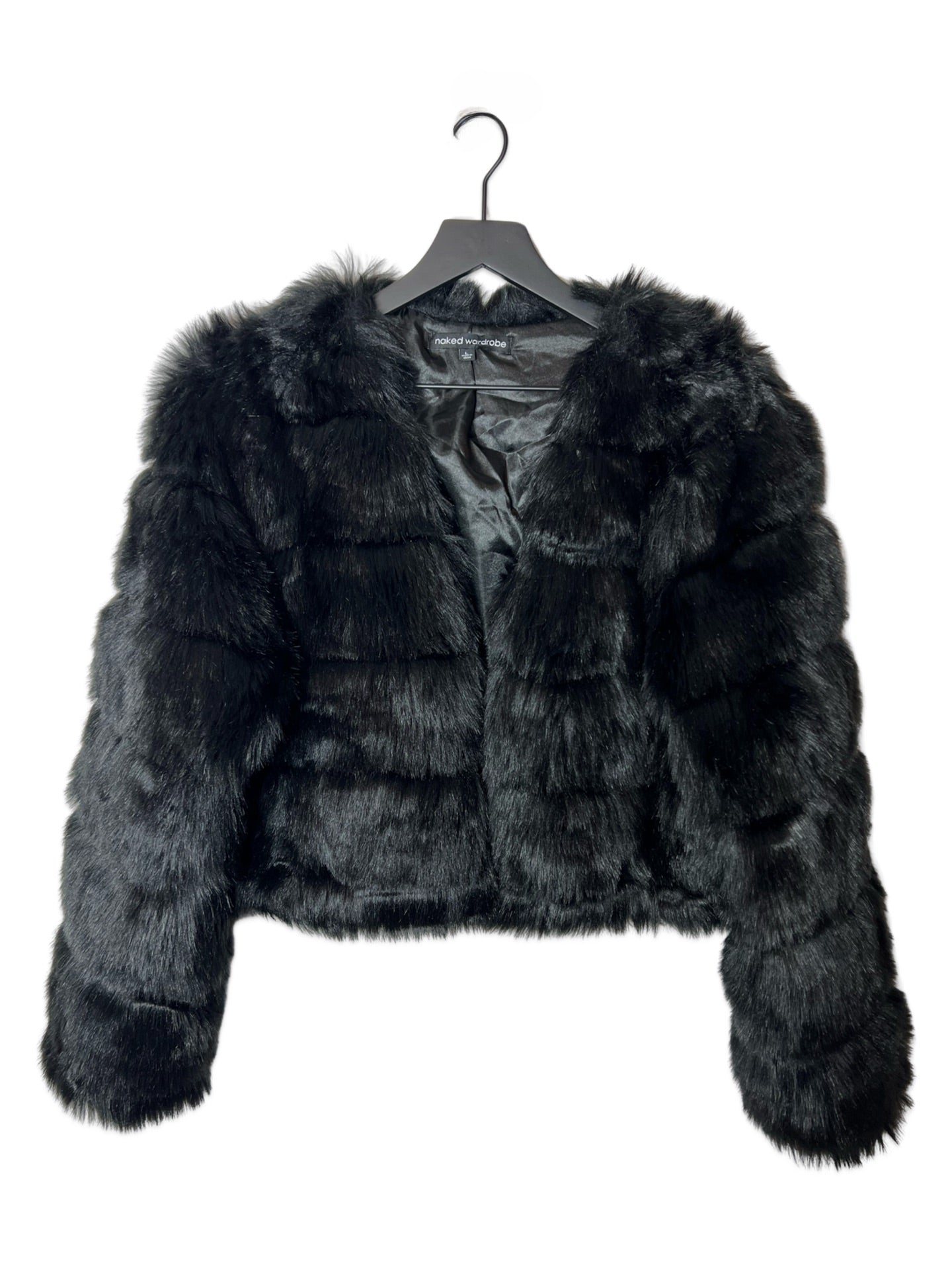 Naked Wardrobe Faux Fur Cropped Coat, Large