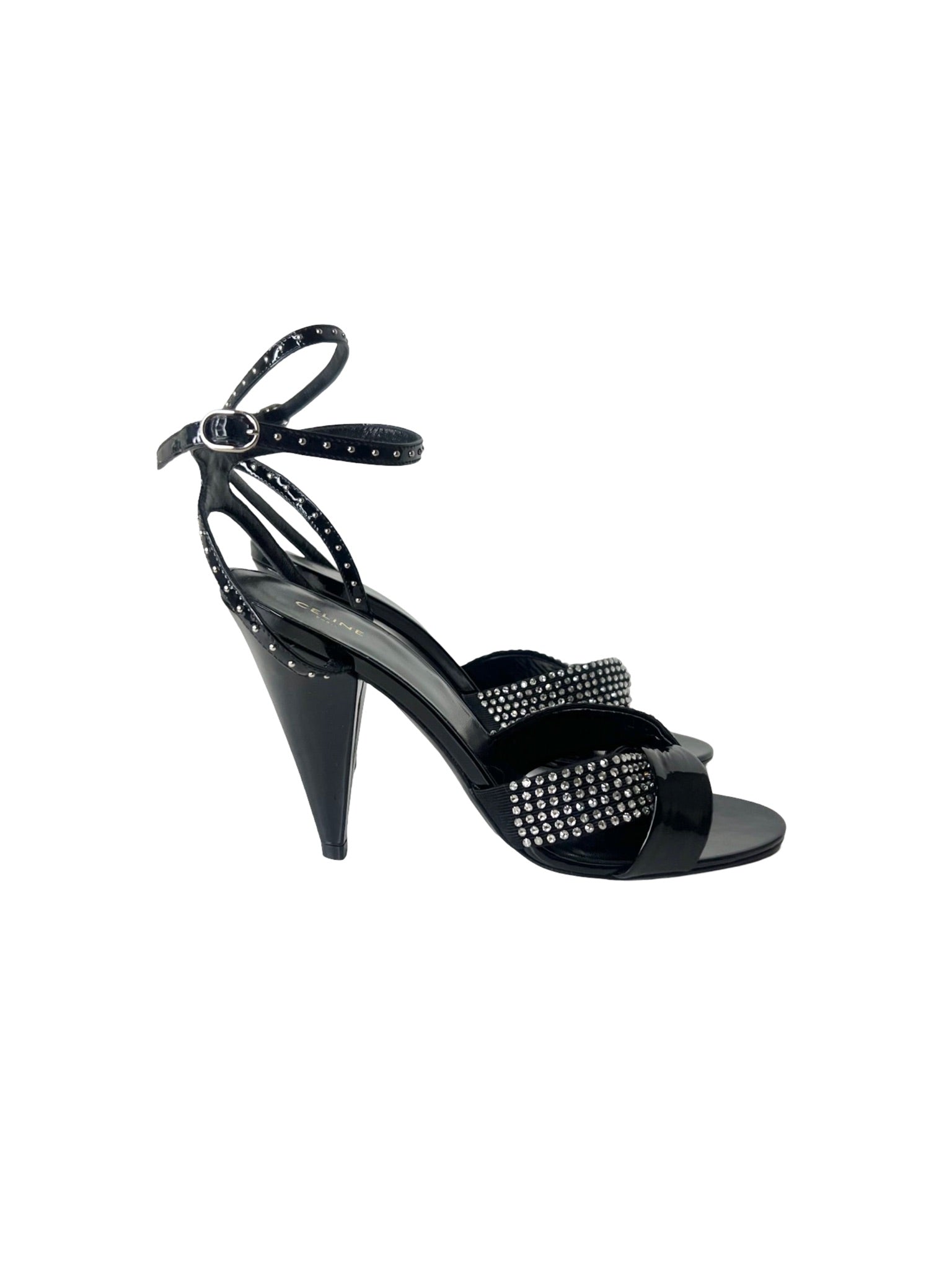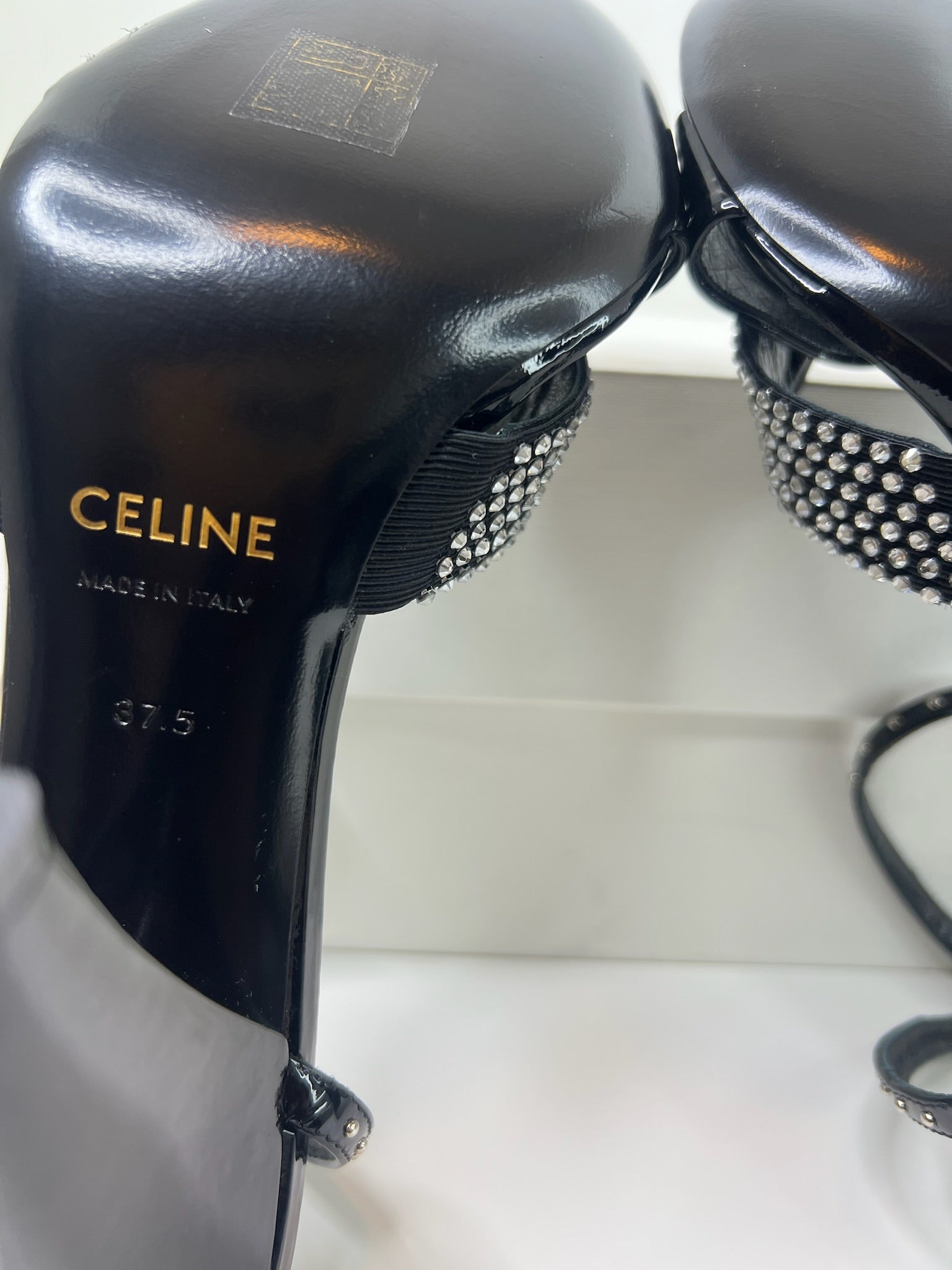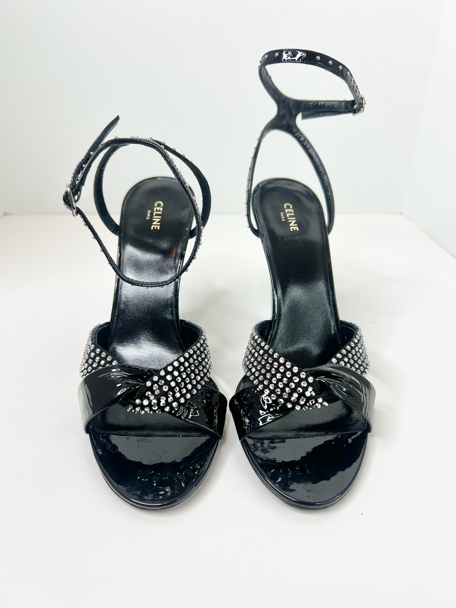 NWT! Celine Edwige Patent Leather Crystal Embellished Sandals, Size 37.5