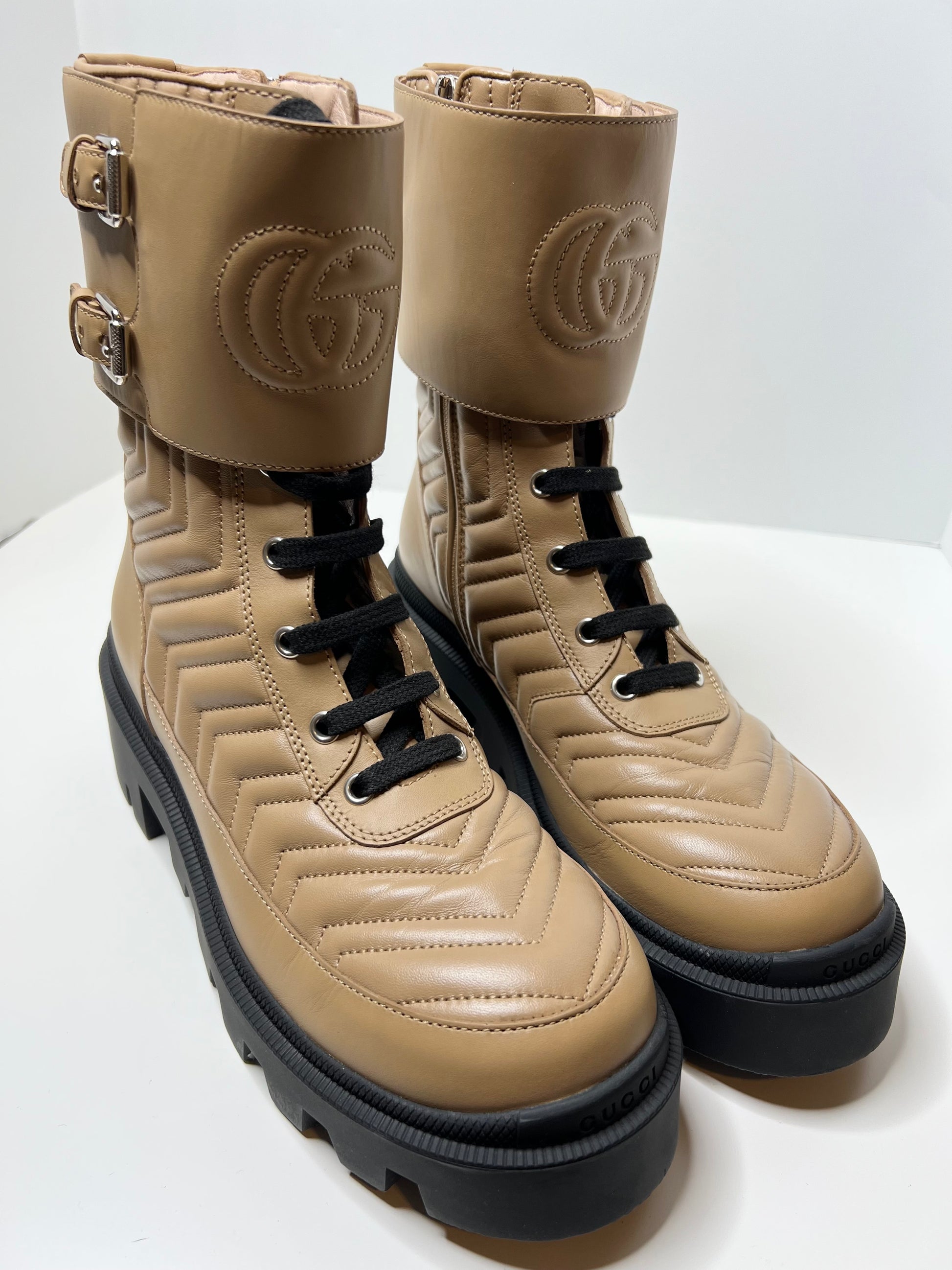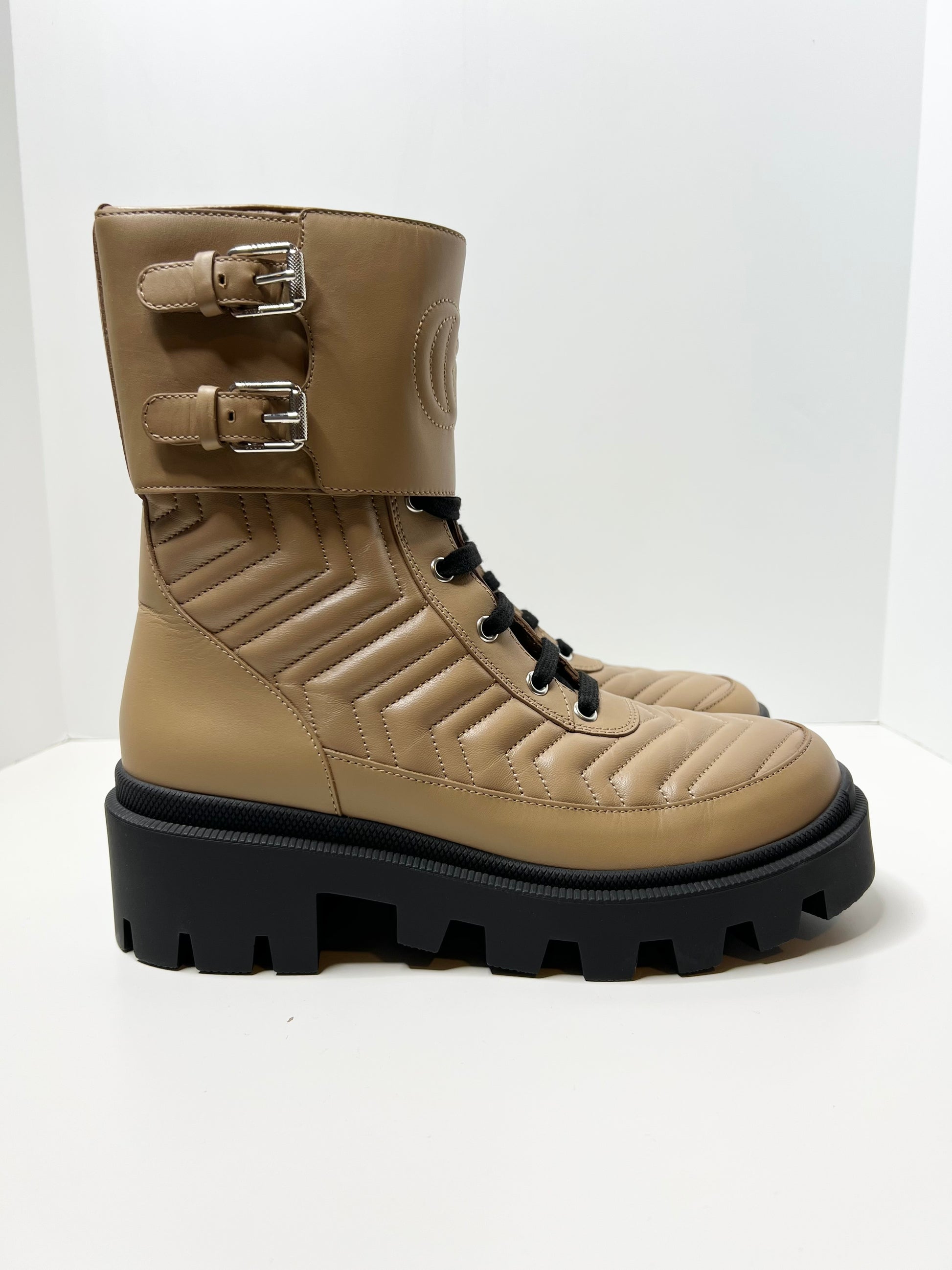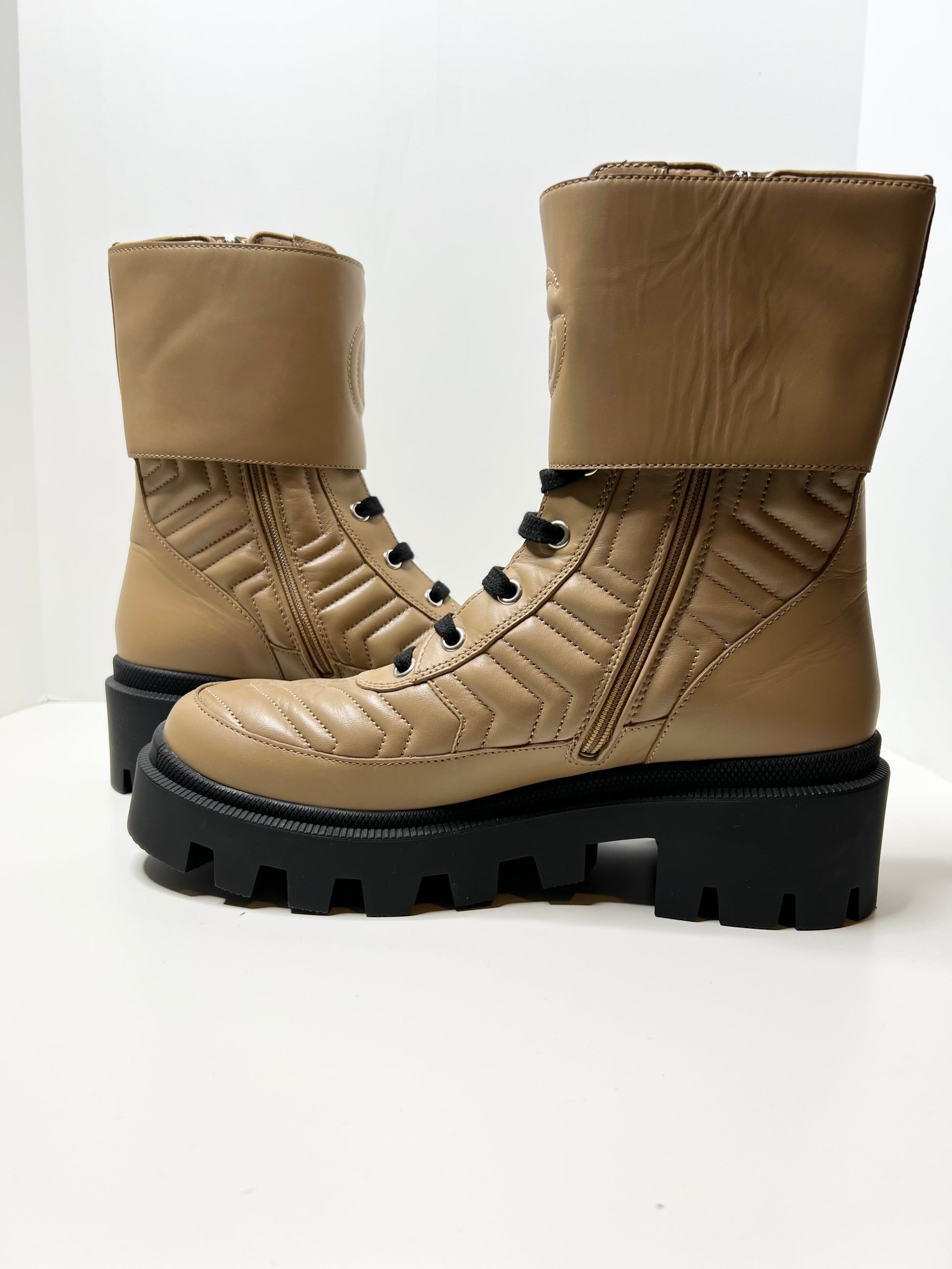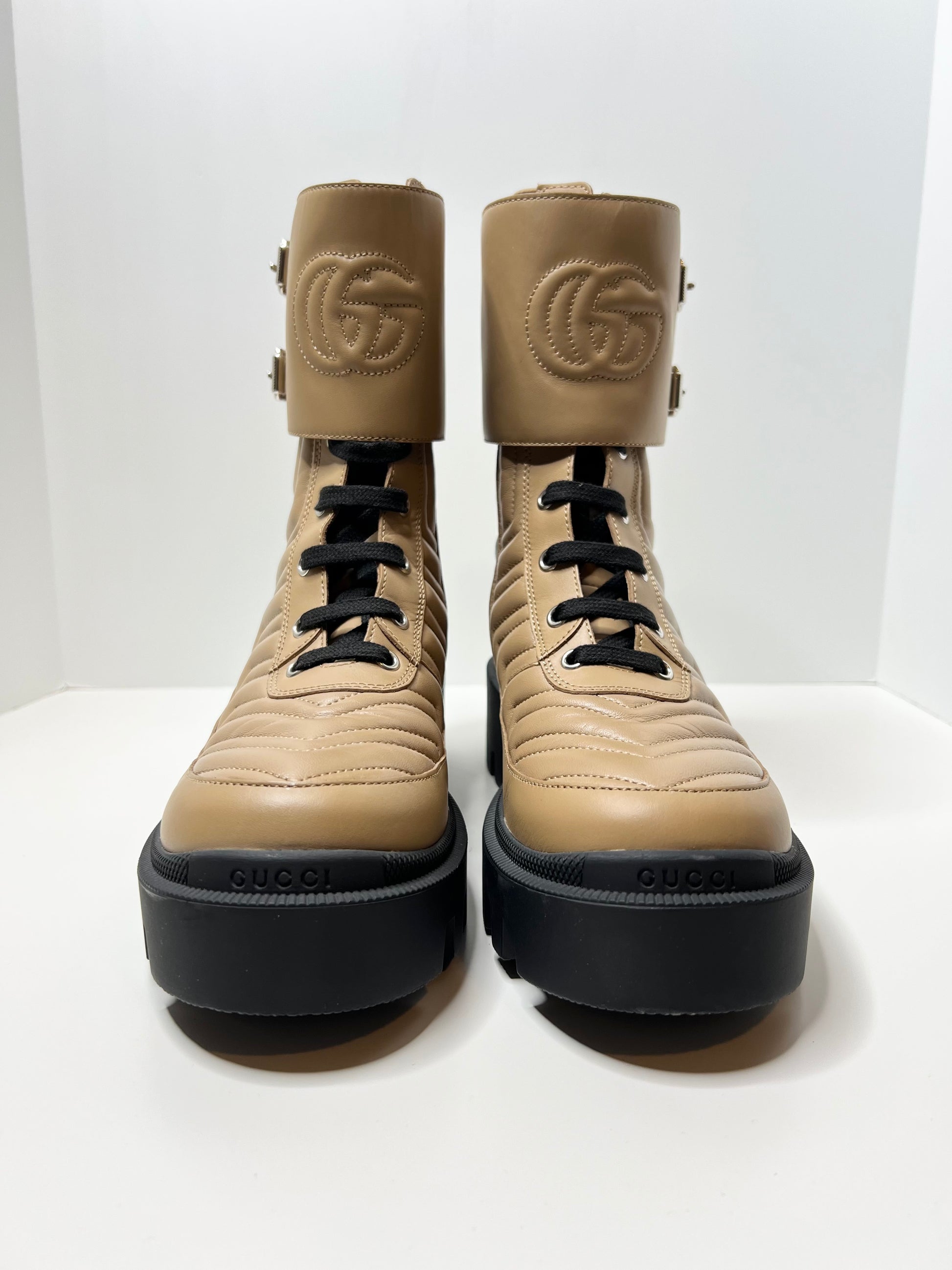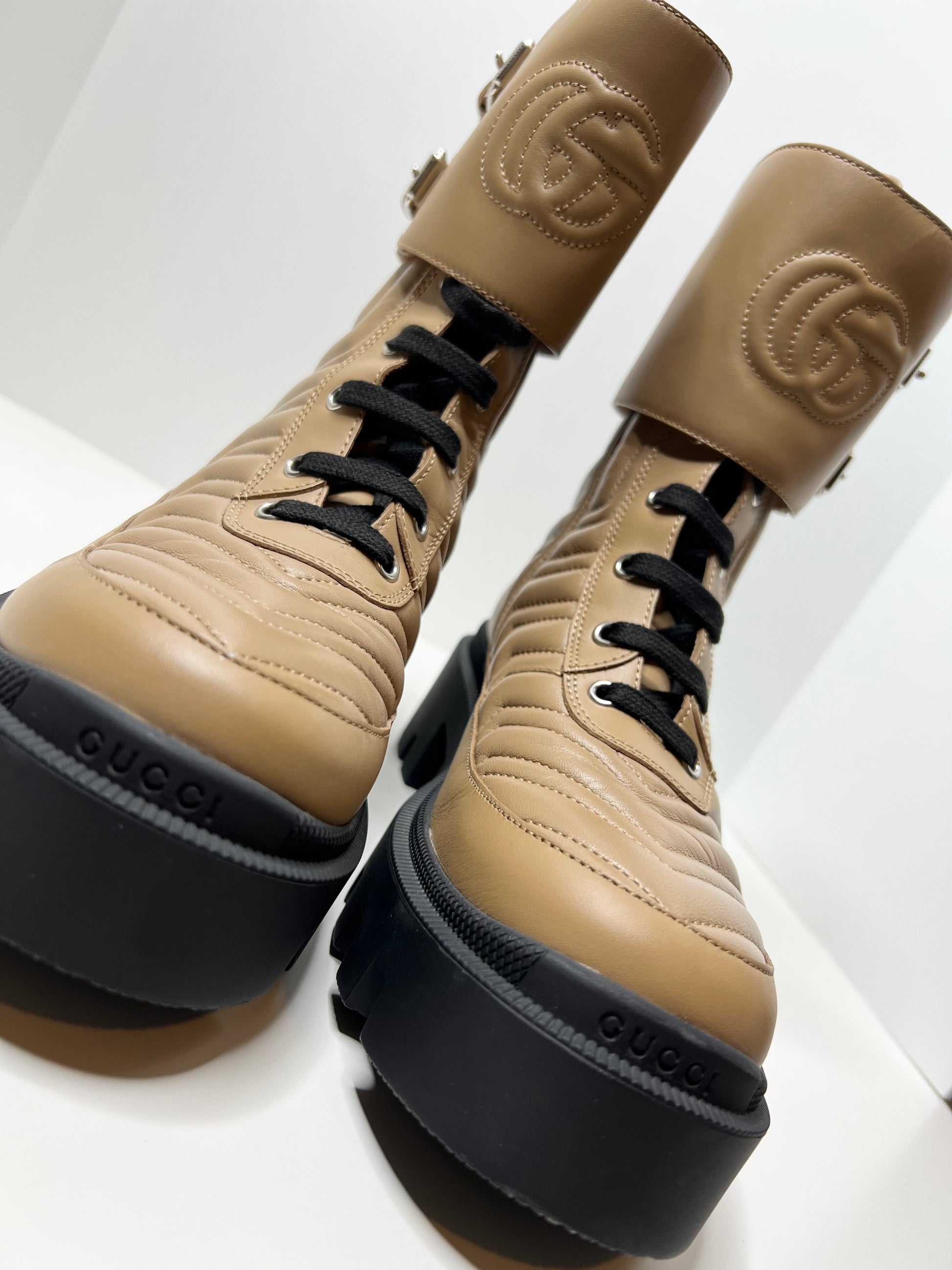 NWT! Gucci Interlocking G Leather Boots, Tan 38