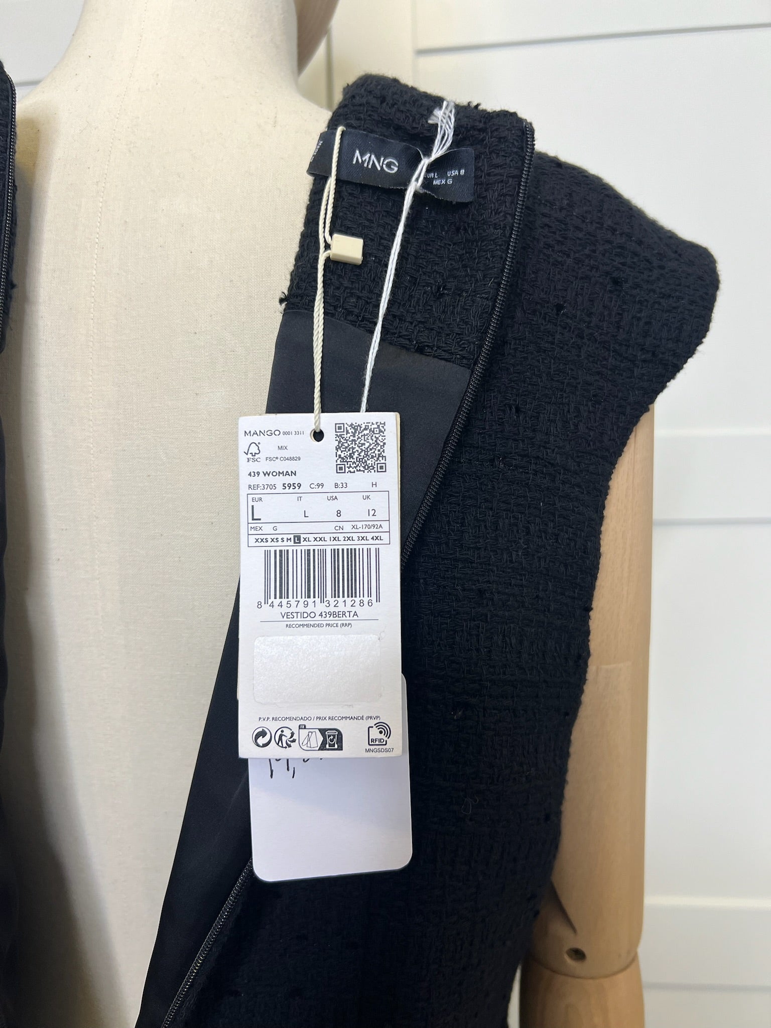 NWT! Mango Recycled Cotton Blend Black Dress, Size 8