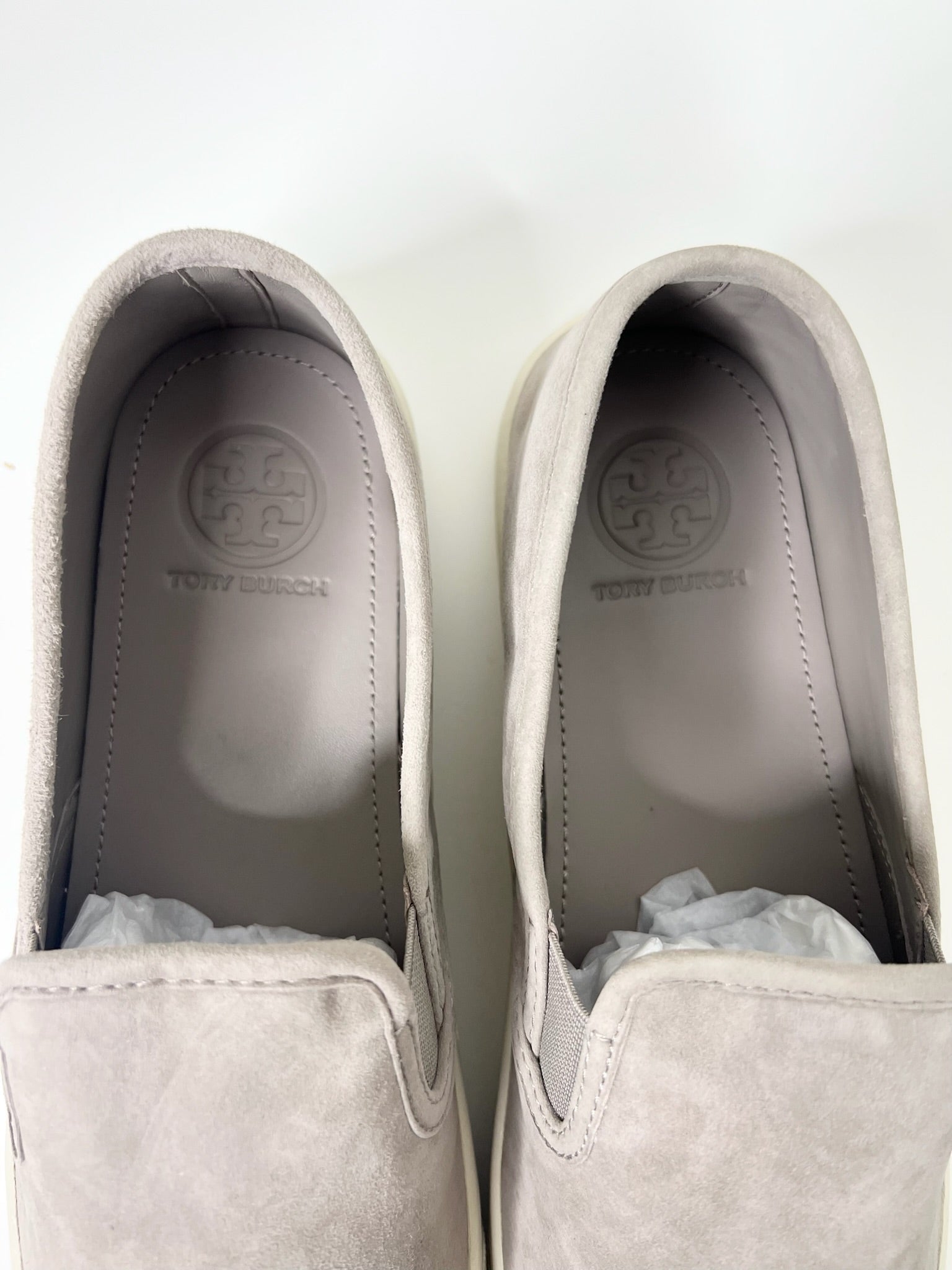 NWT! Tory Burch Max Slip-On Suede Gray Sneakers, Size 10