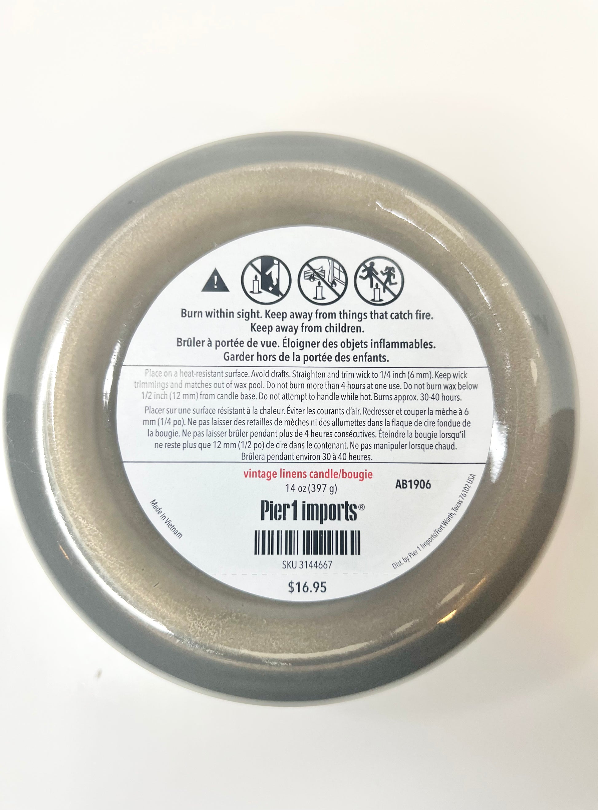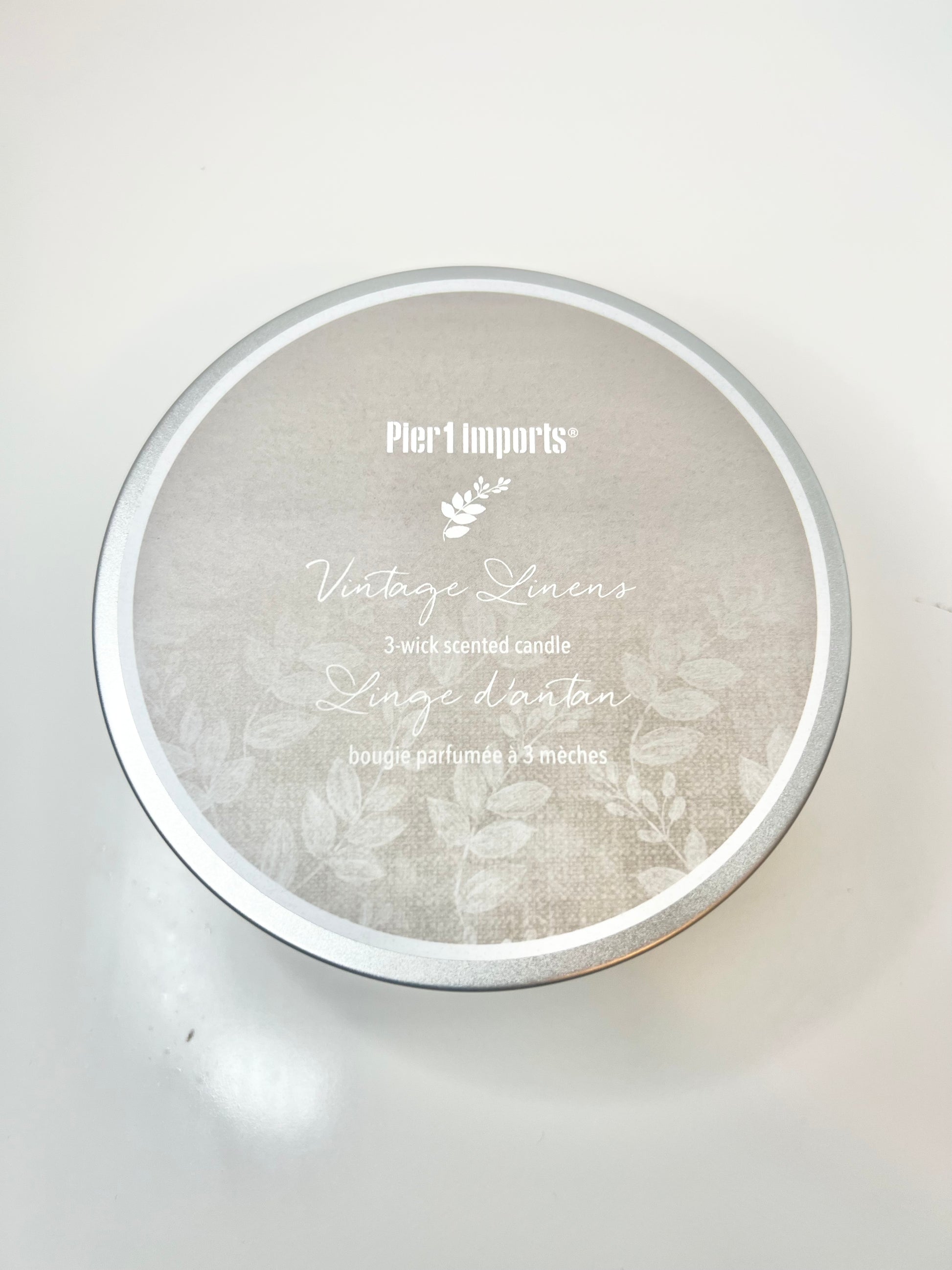 Pier 1 Imports 3 Wick Candle - Vintage Linen