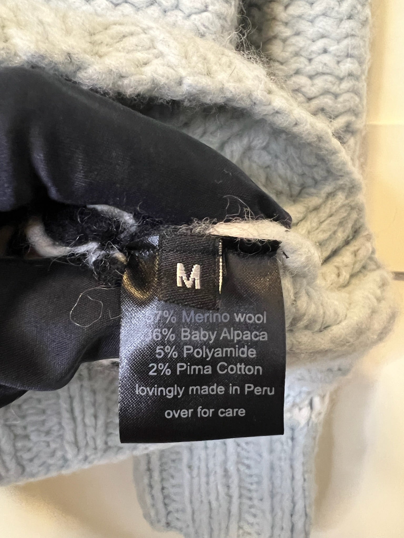 - Knit entirely by hand from Peruvian Highland Merino Wool and Alpaca blend