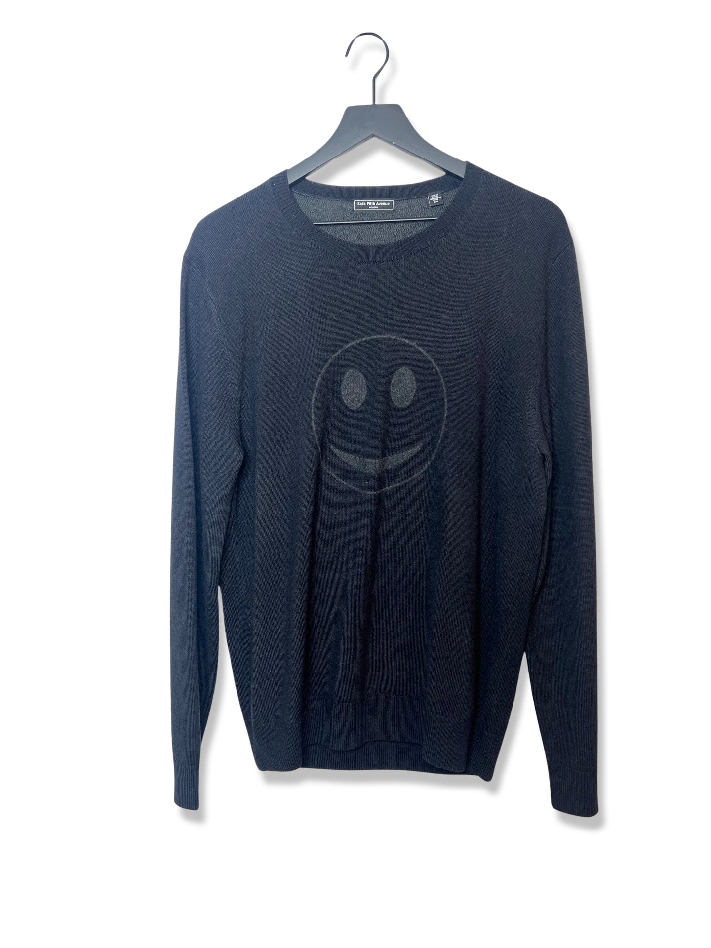 Saks Fifth Ave Navy Smiley Face Sweater, Size Large
