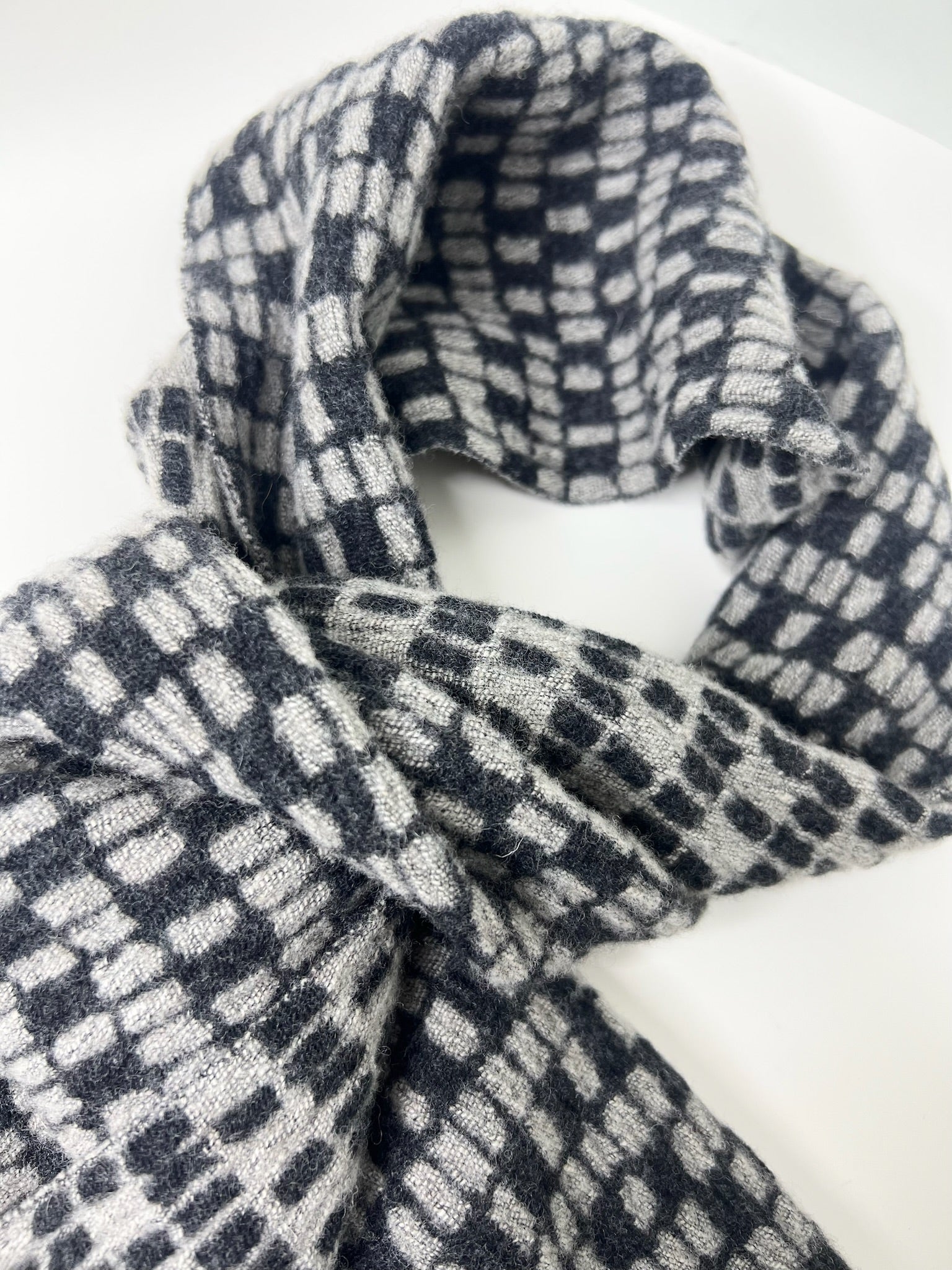 Saks Fifth Ave Patterned Navy and Gray Wool Scarf