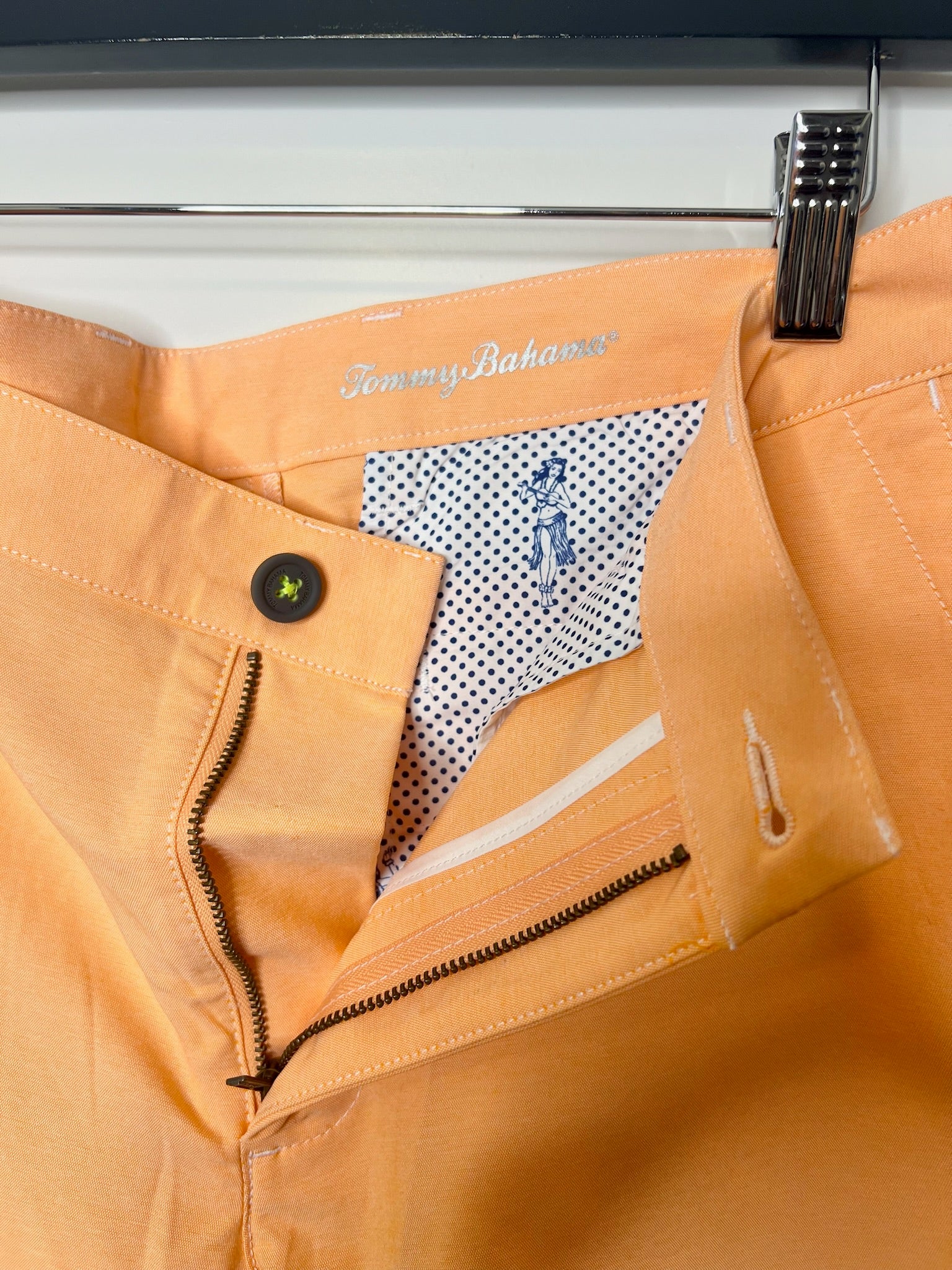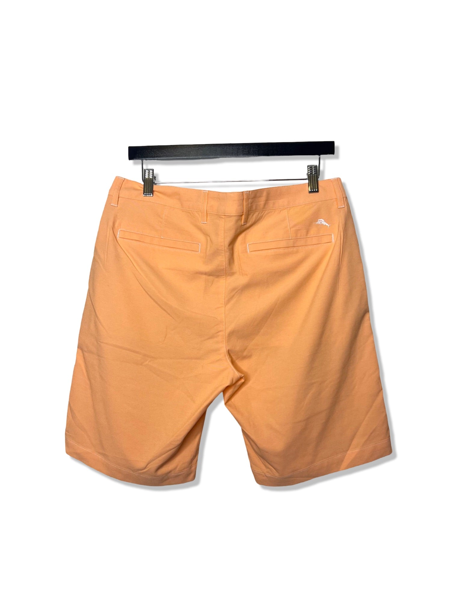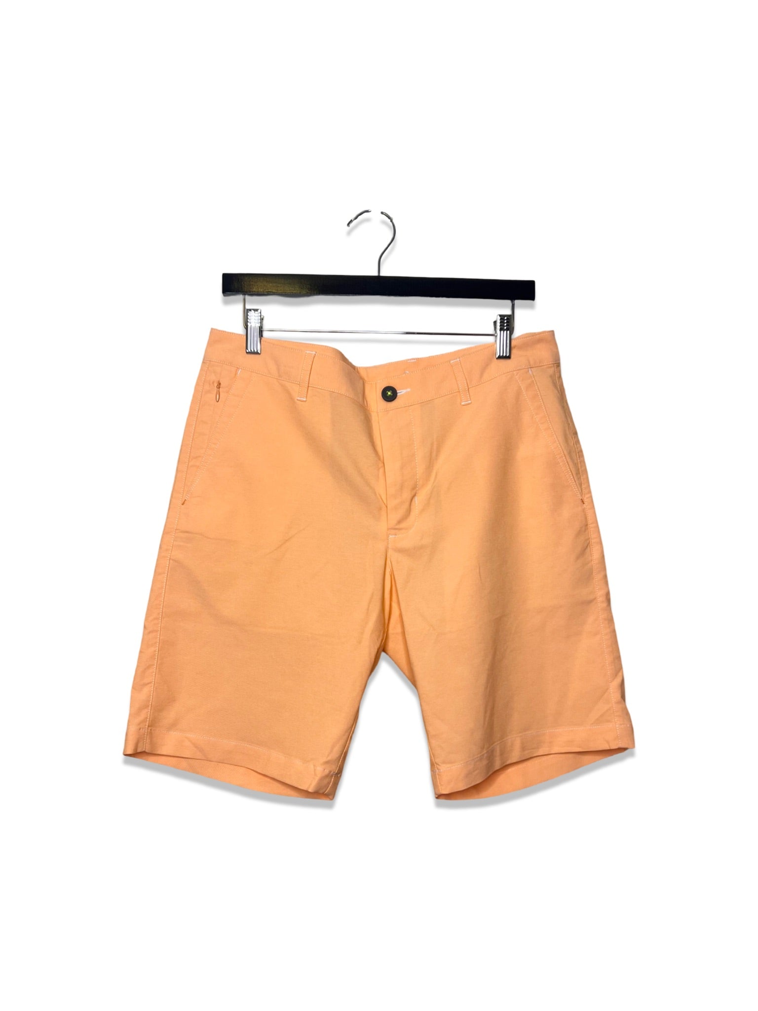 - Flat front shorts, double-welt back pockets and side pocket with zipper