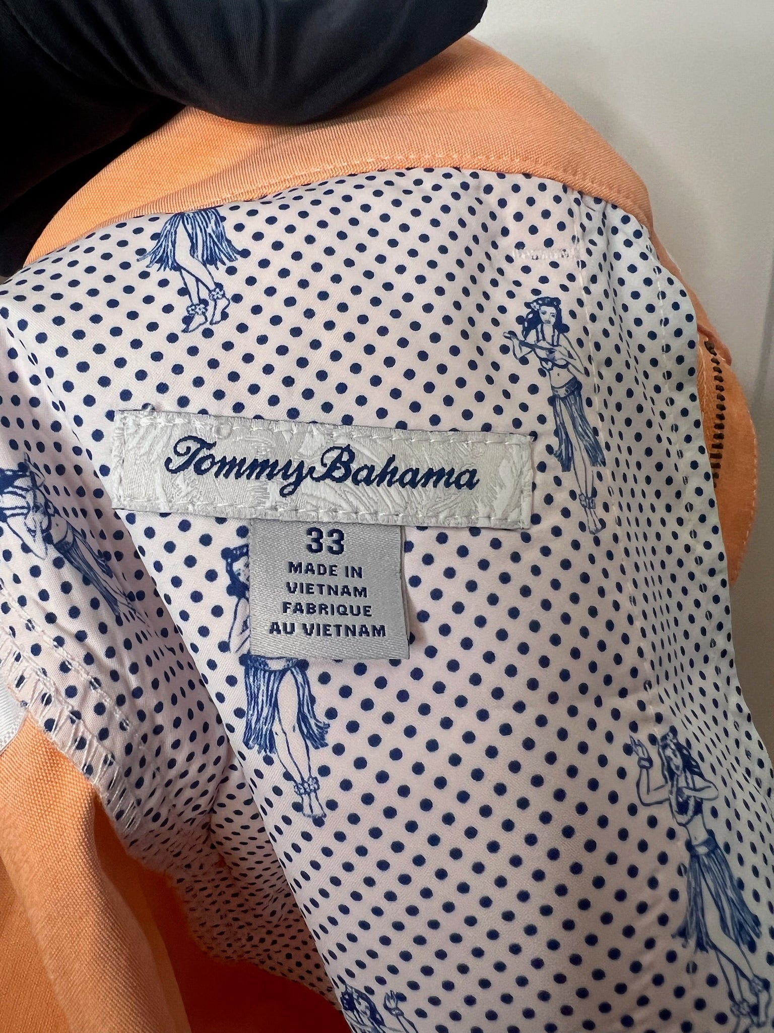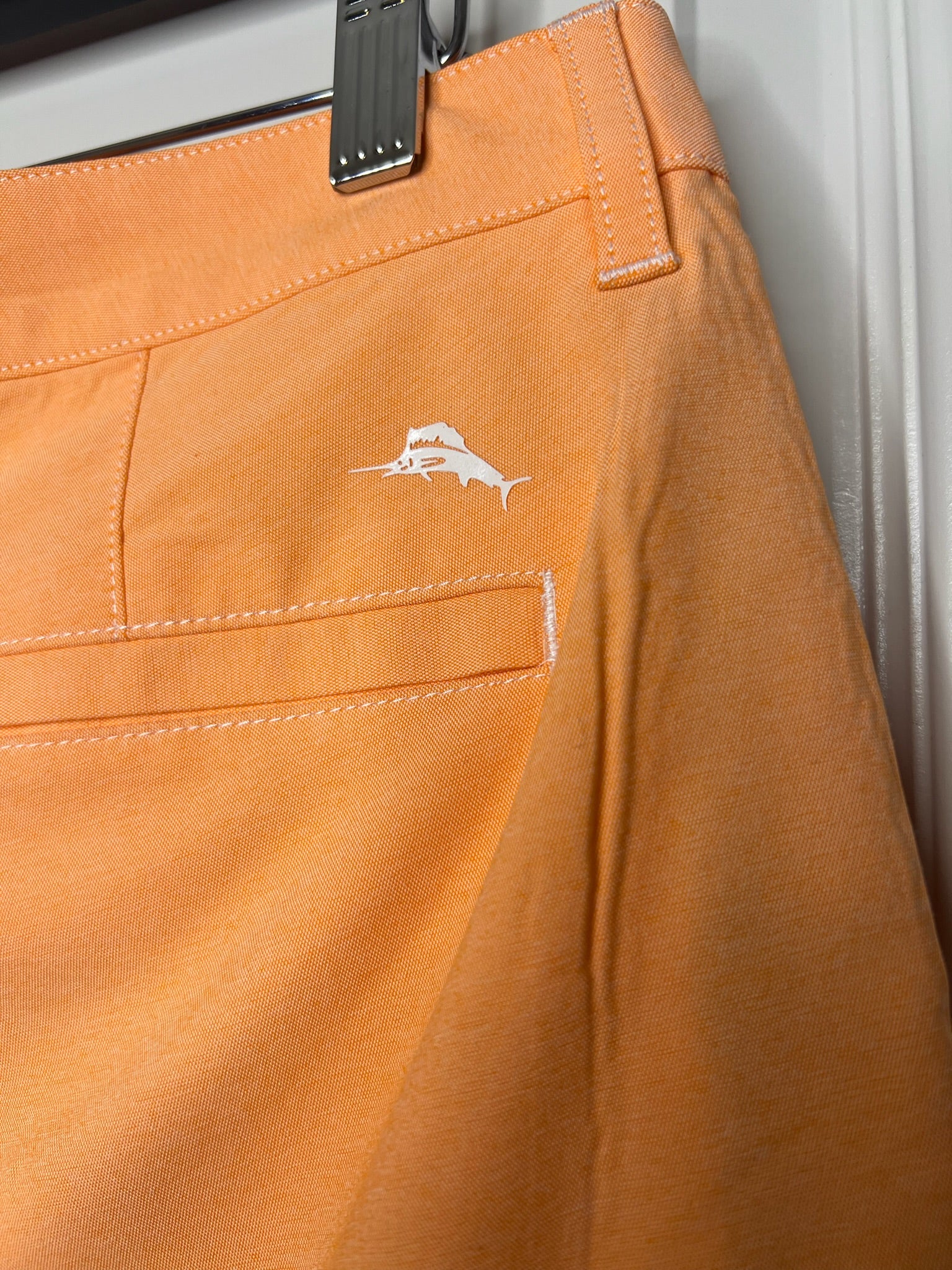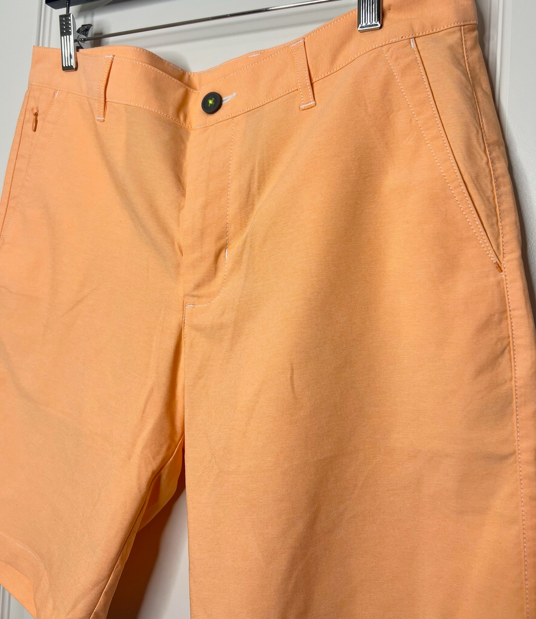 - Flat front shorts, double-welt back pockets and side pocket with zipper