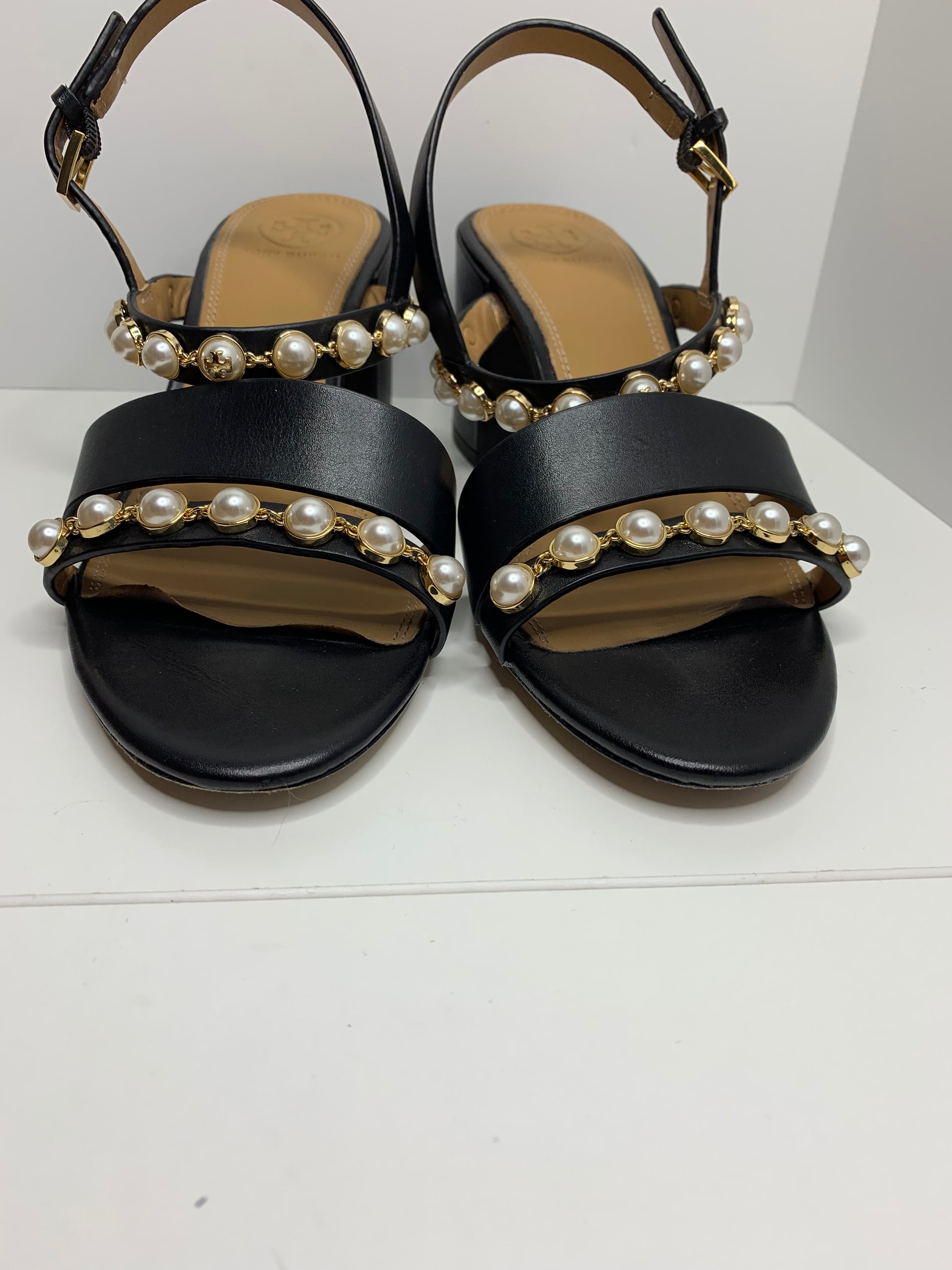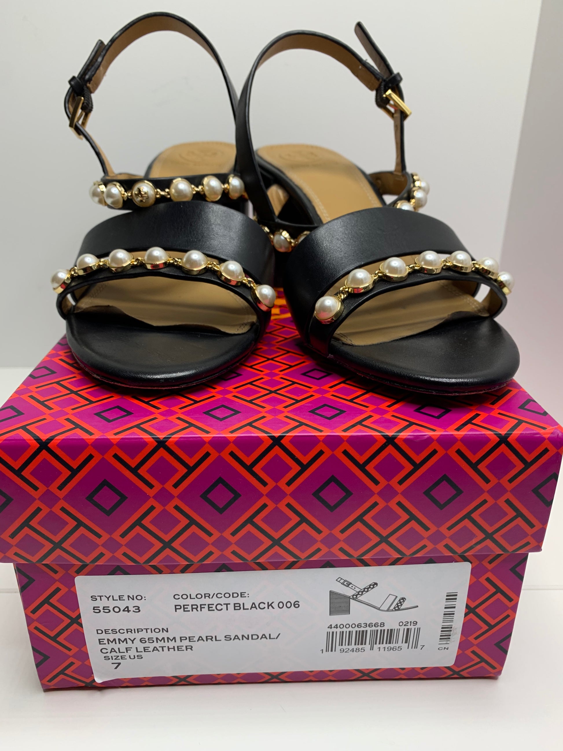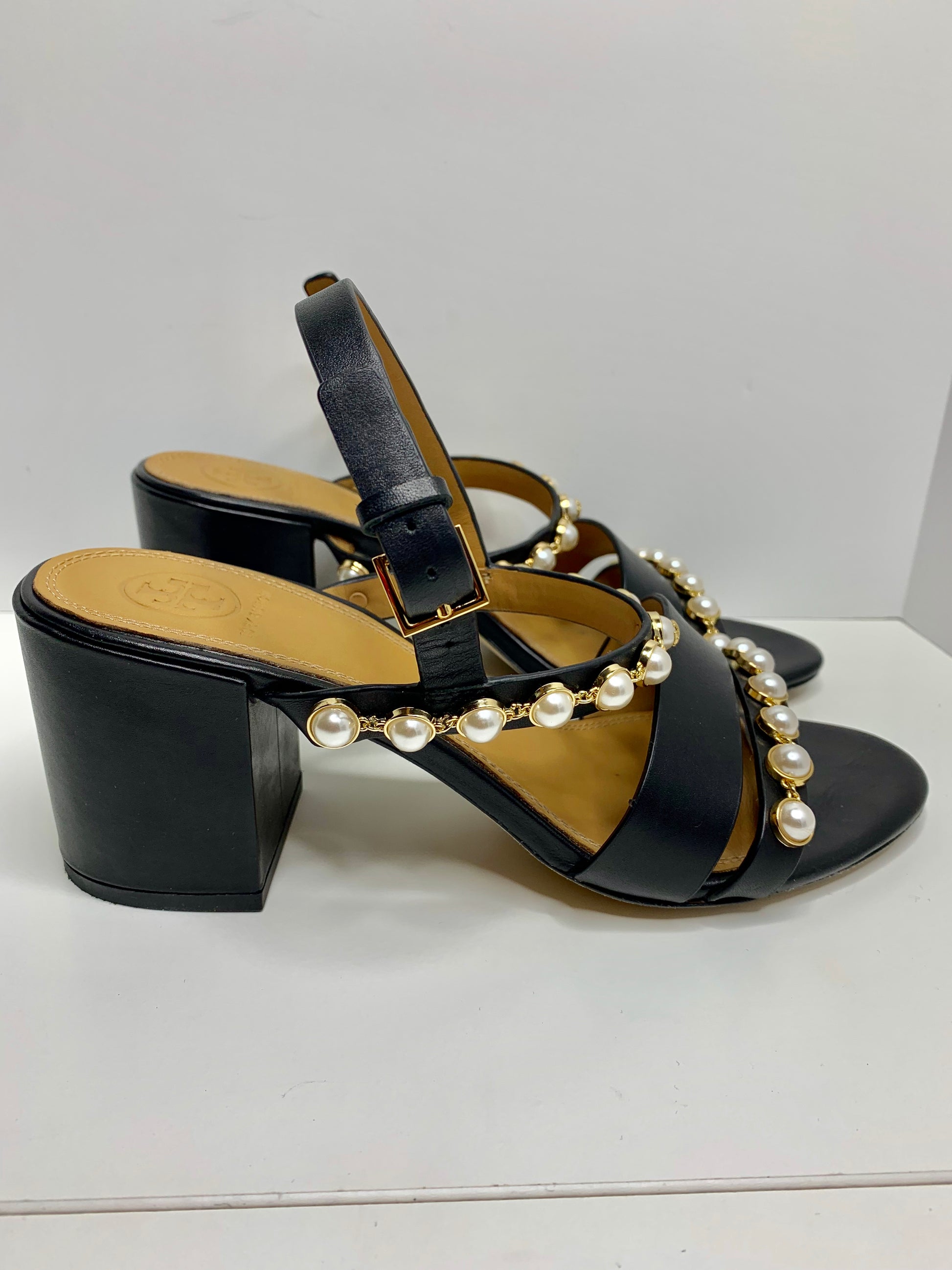 Dressed up with jewels. The Emmy Mid-Heel Sandal is easy for every day and glamorous enough for events, in leather dotted with pearl studs.