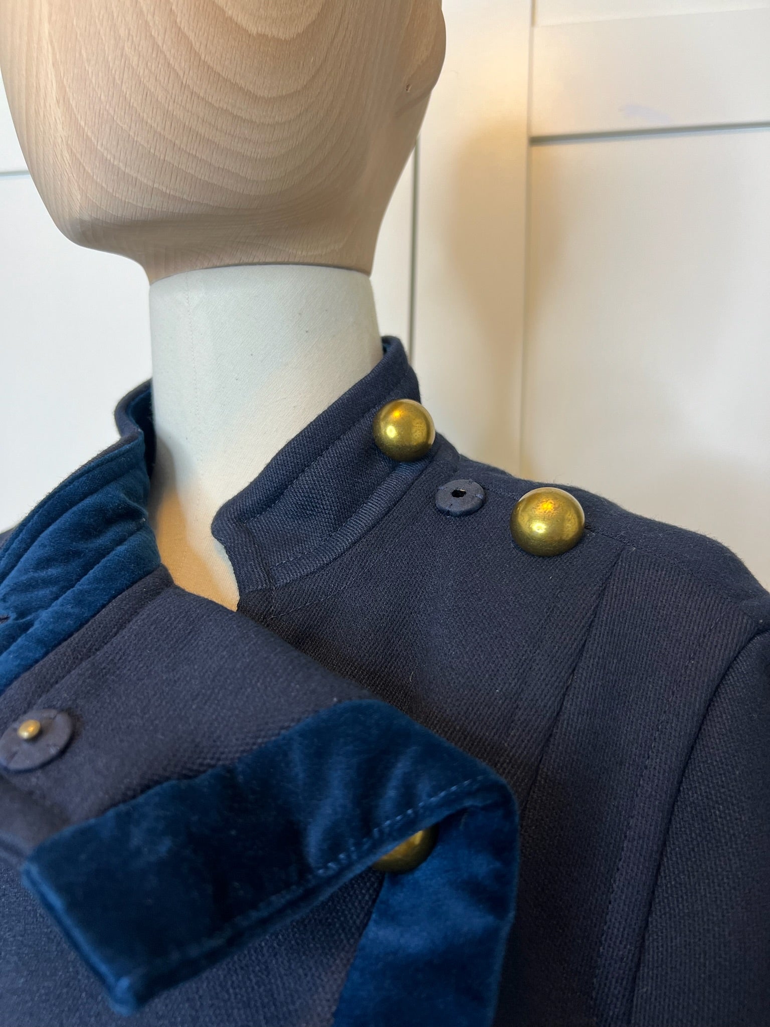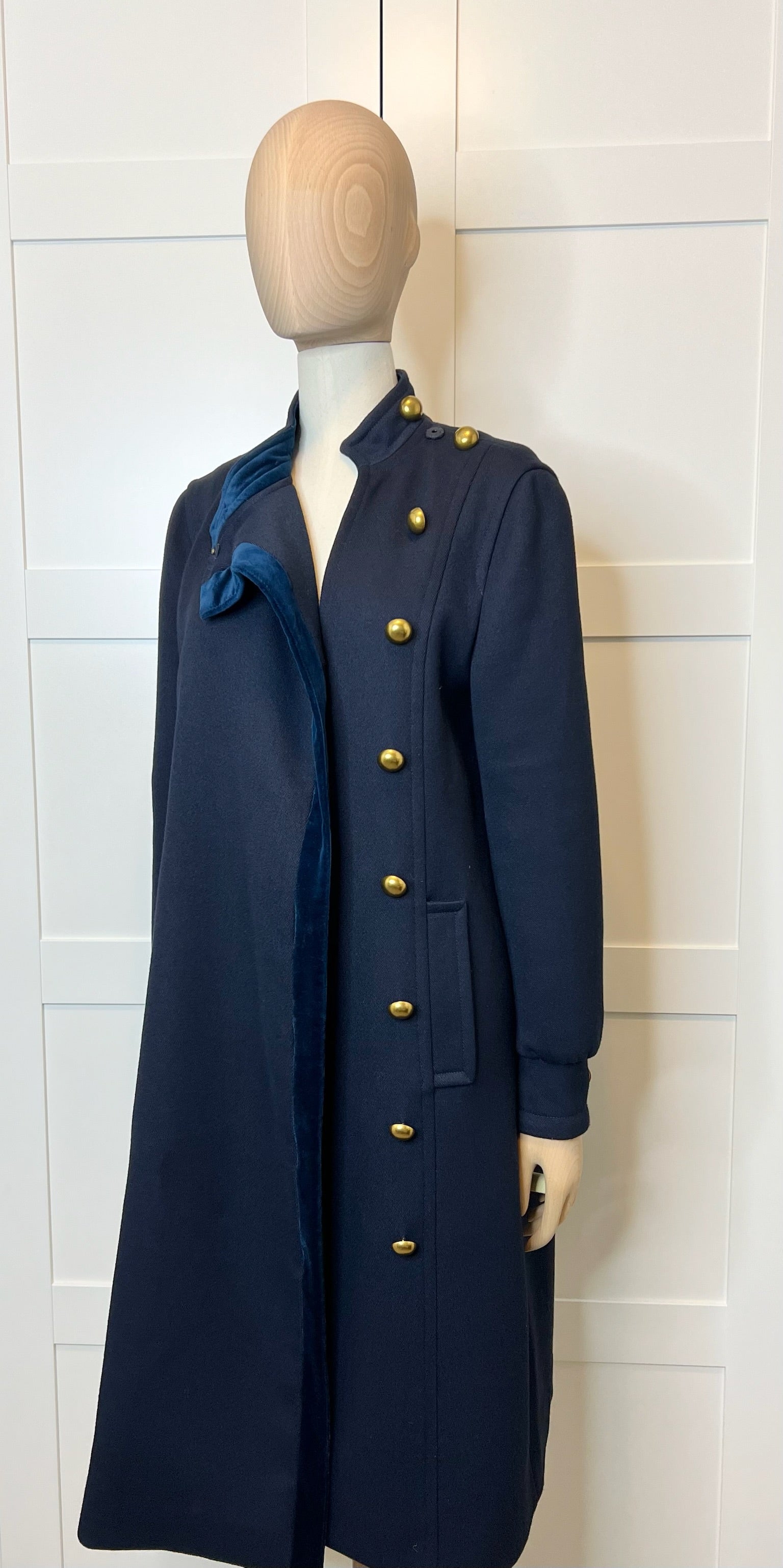 - Long coat with stand collar