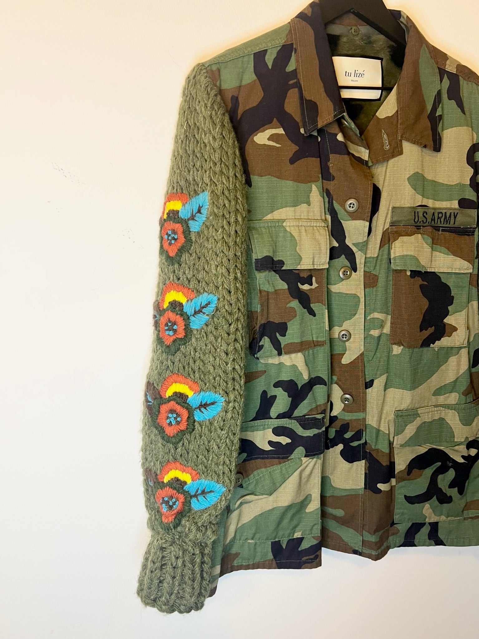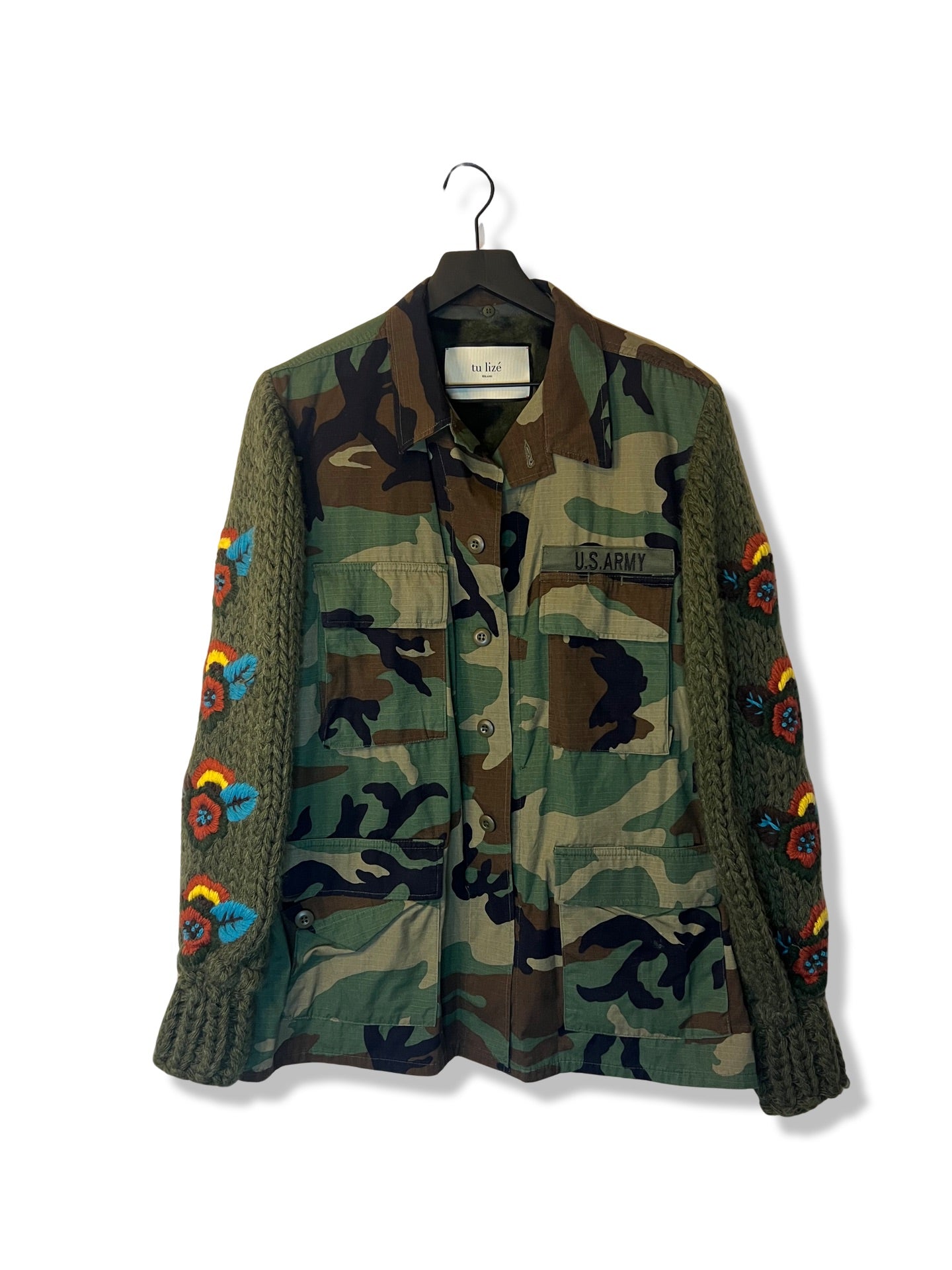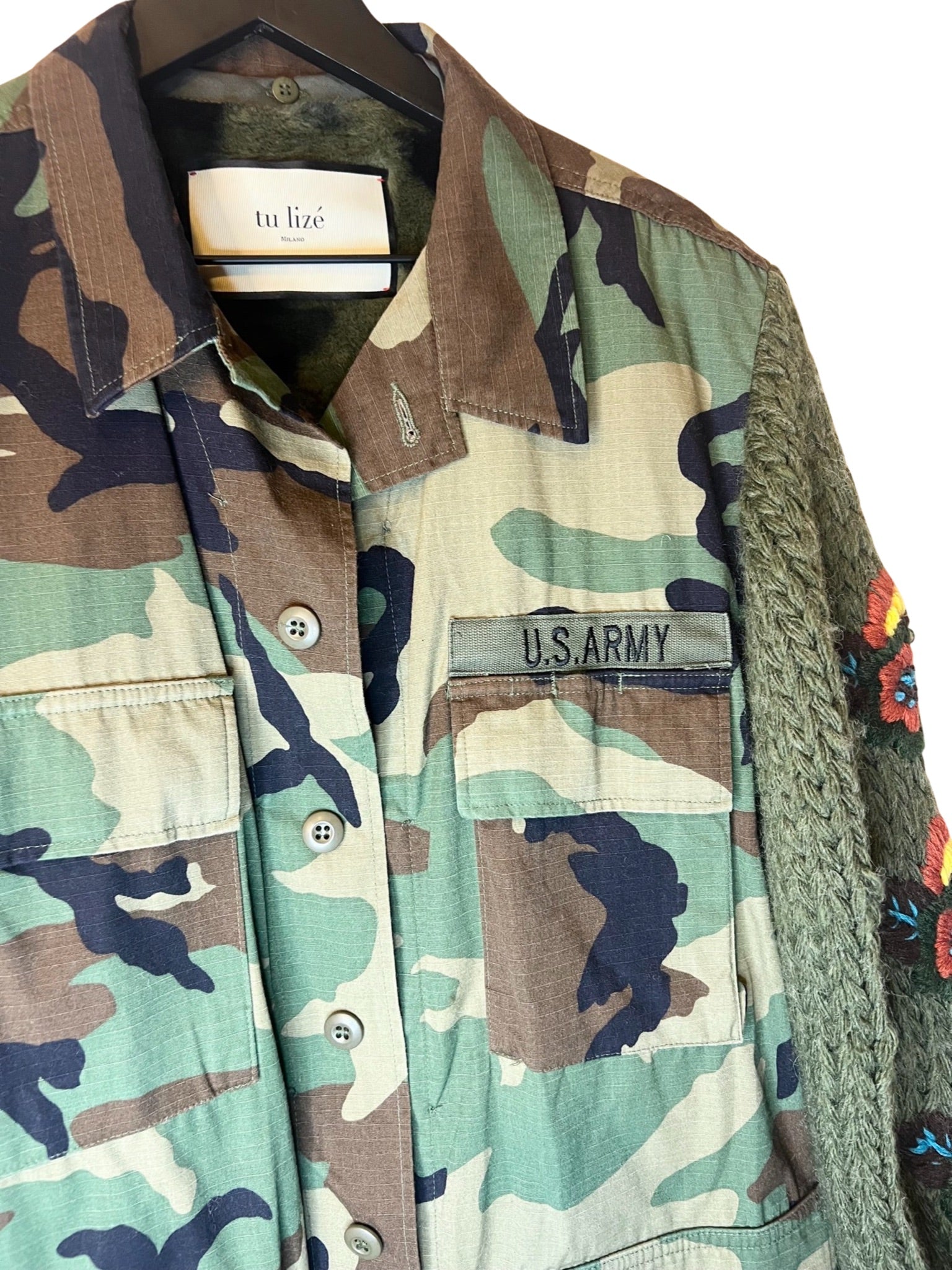 Tu Lize' Uncycled Embroidered Military Jacket, Size M/L